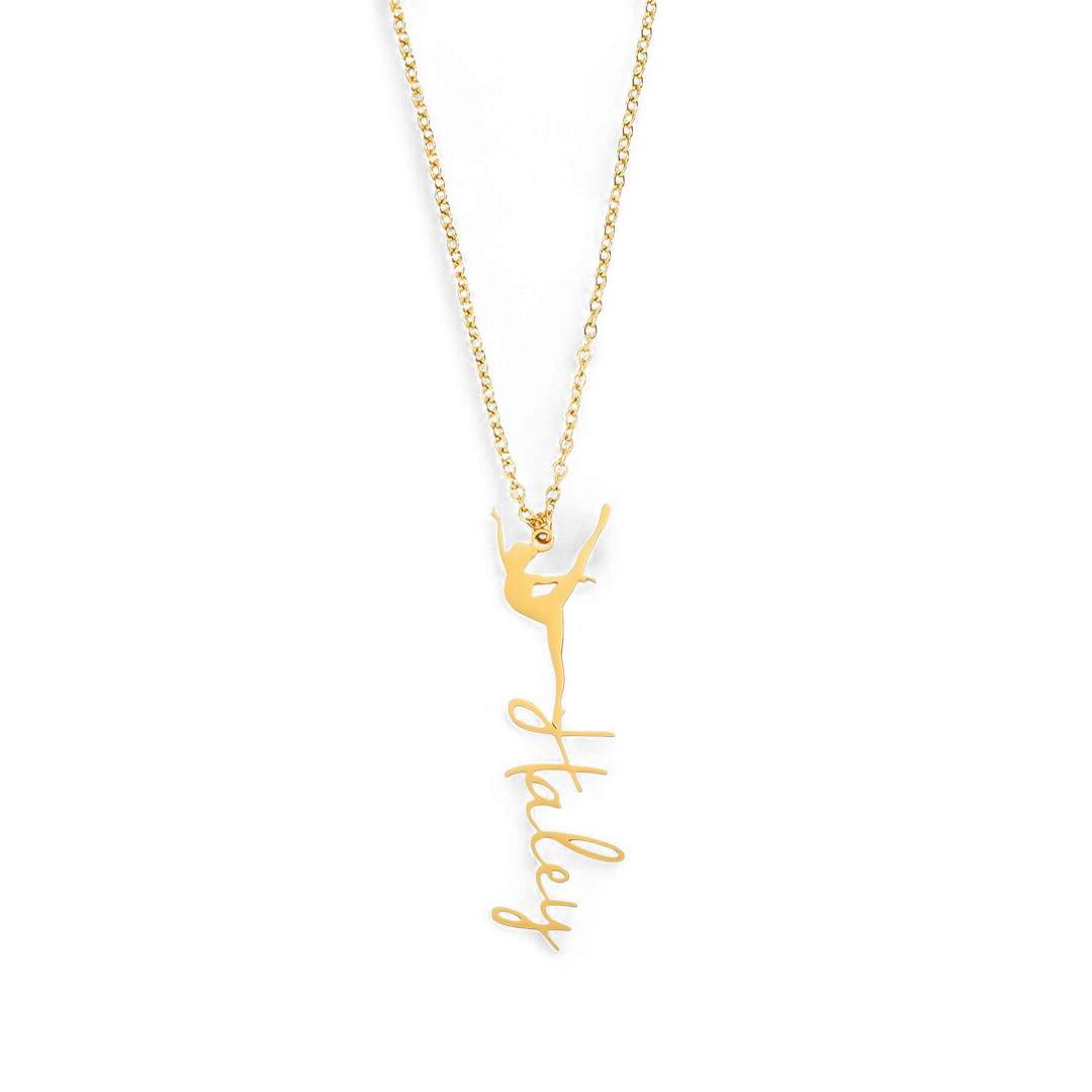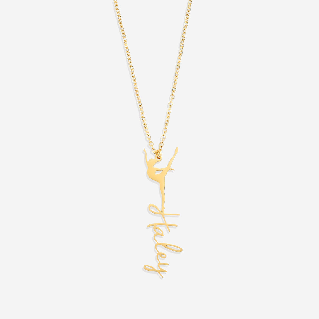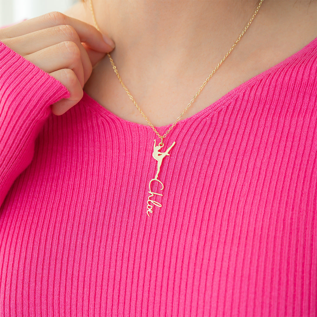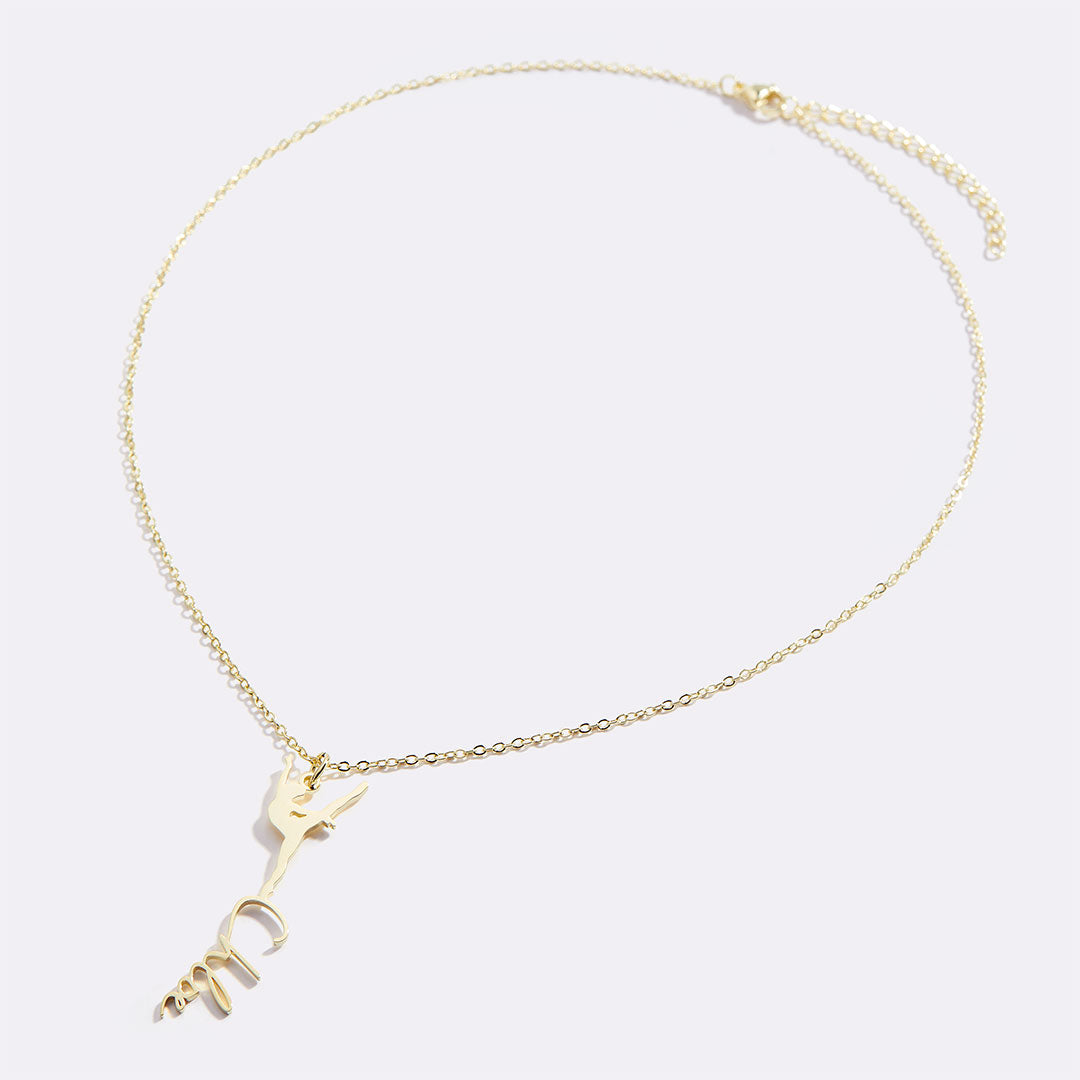 Inspired by the beauty of motion, this dance-inspired name pendant is perfect for those who express themselves through movement. With its flowing script and lightweight design, this necklace is a stunning tribute to the artistry and grace of dance.