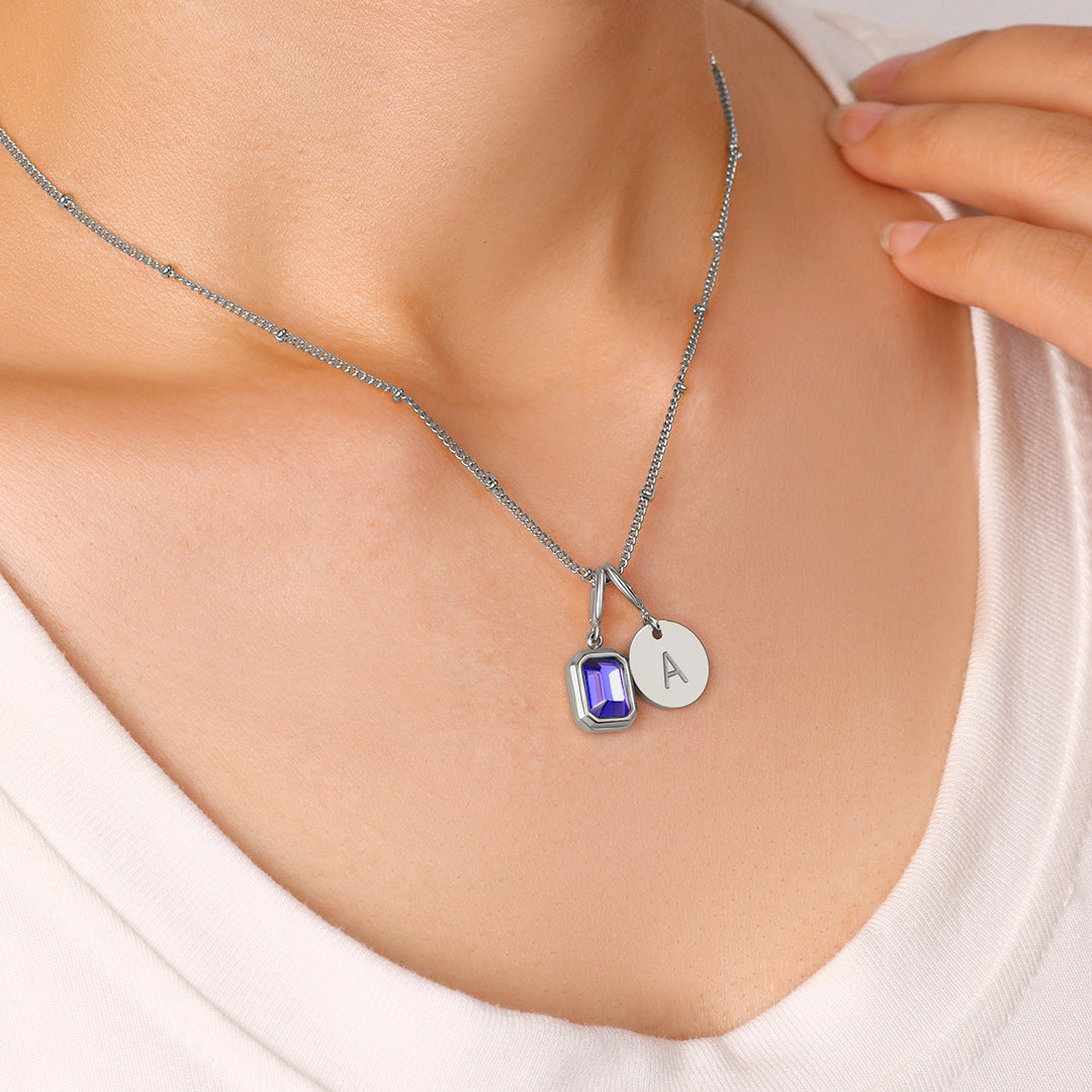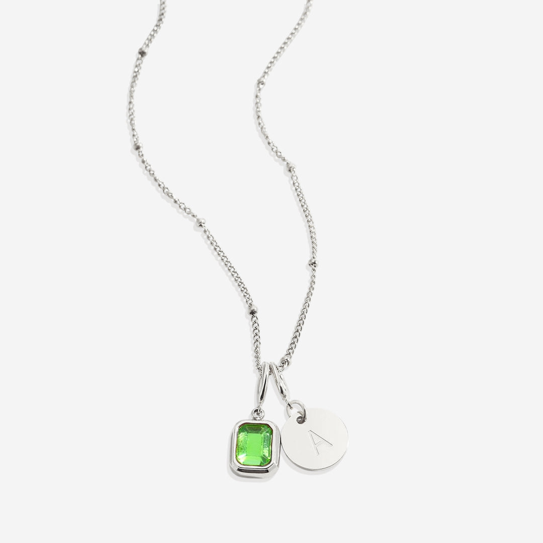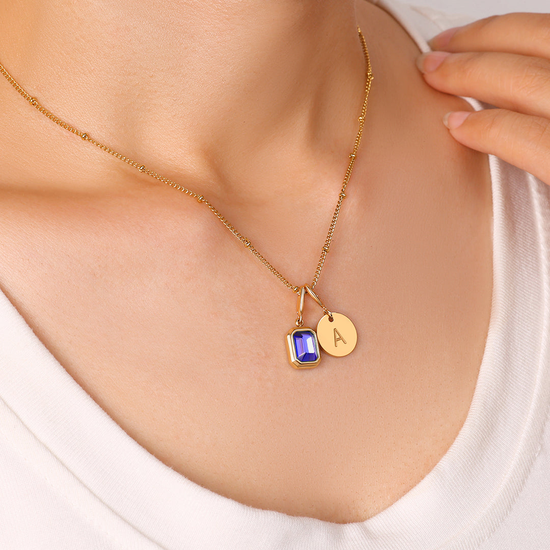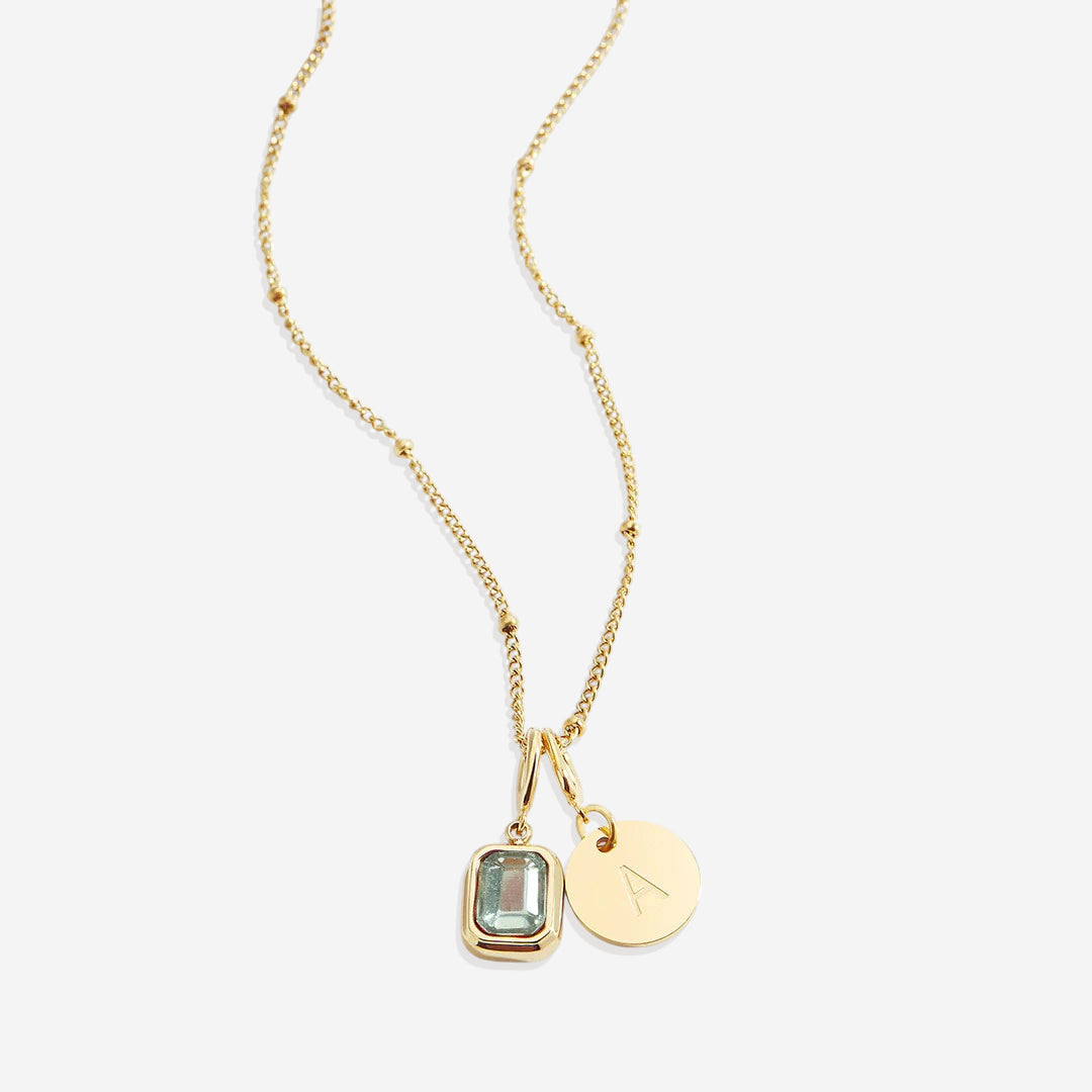 Mint & Lily's Baguette Birthstone & Initial Necklace combines elegance with personalization. The necklace features a sleek baguette-cut birthstone, adding a touch of sparkle and significance, alongside a custom initial pendant.