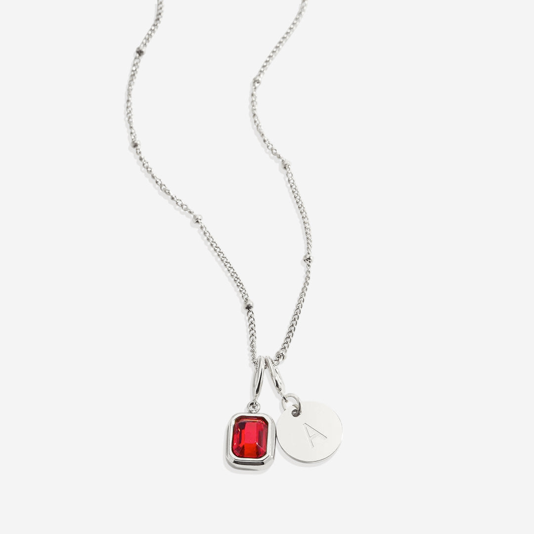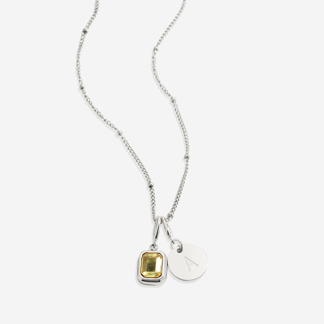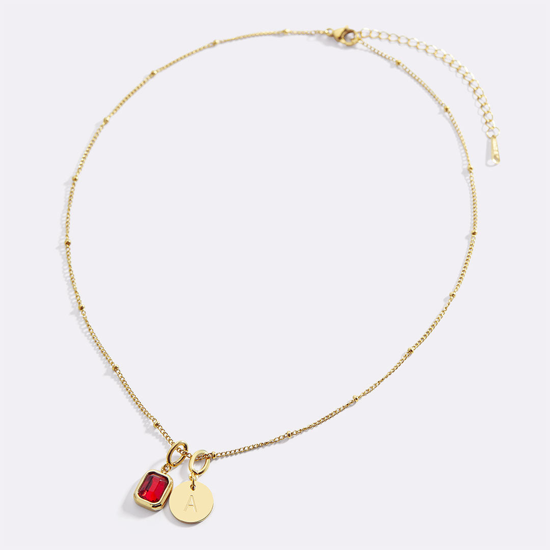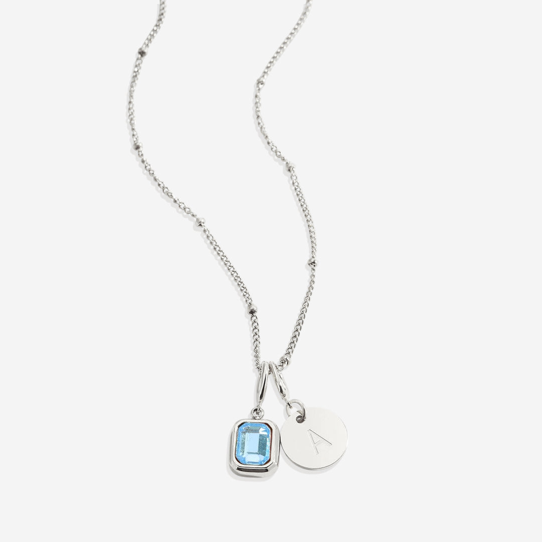 Mint & Lily's Baguette Birthstone & Initial Necklace combines elegance with personalization. The necklace features a sleek baguette-cut birthstone, adding a touch of sparkle and significance, alongside a custom initial pendant.