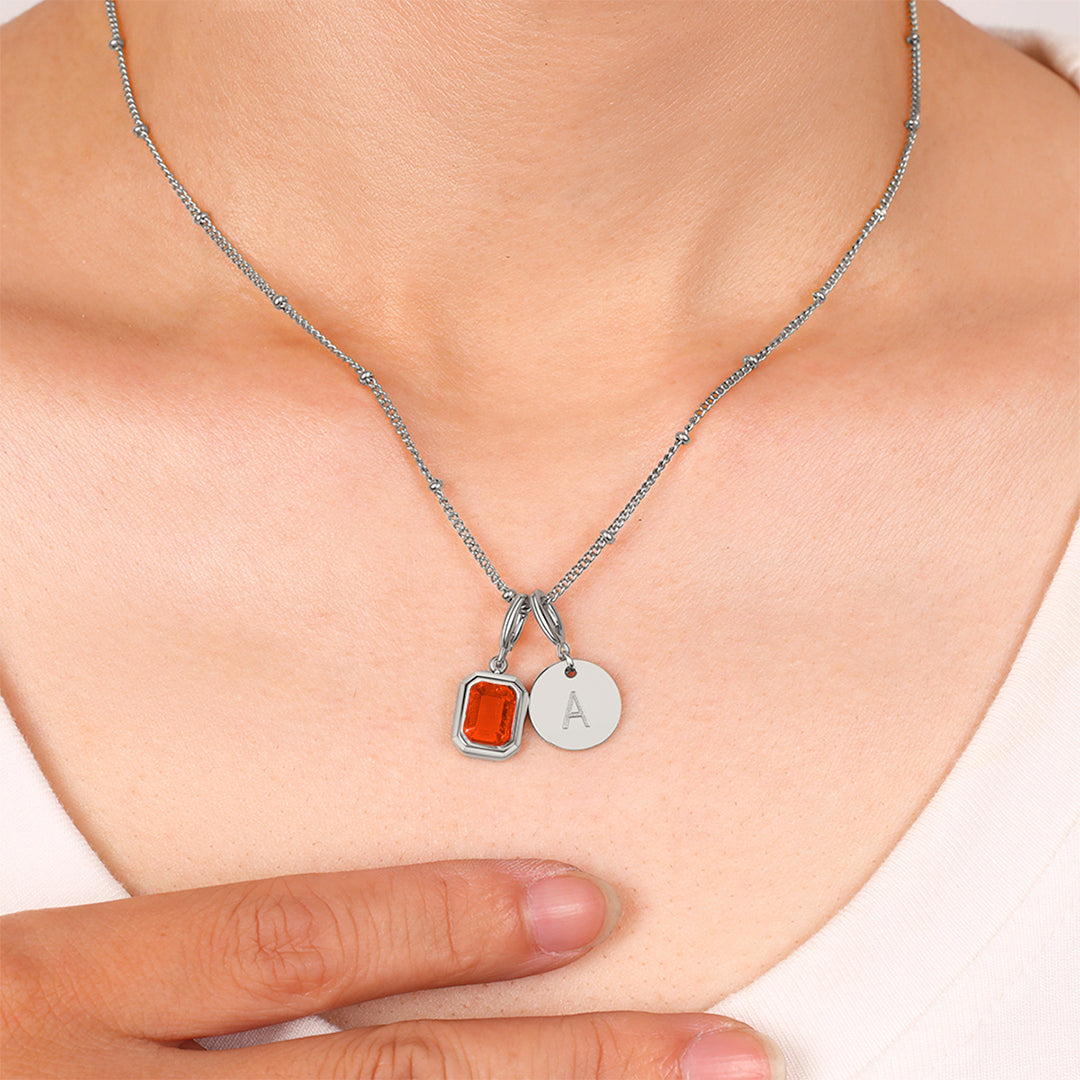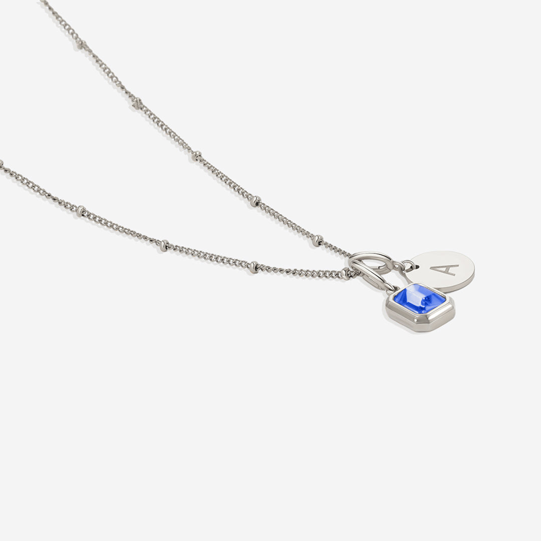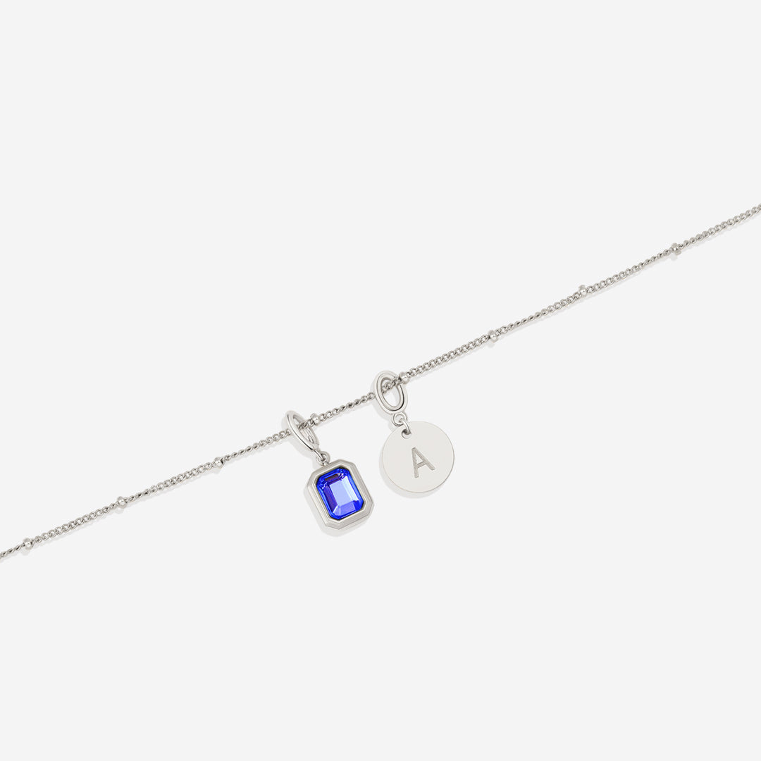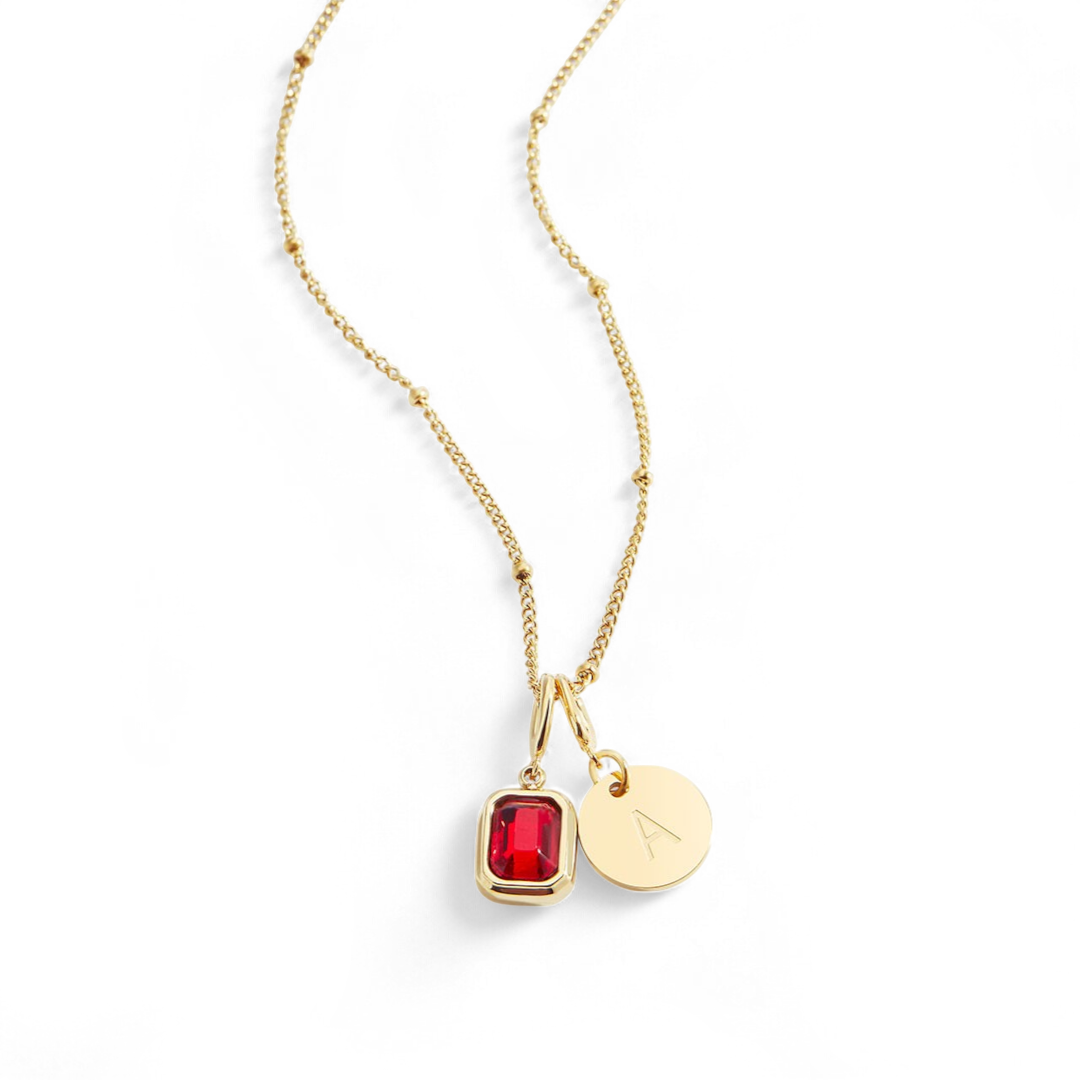 Mint & Lily's Baguette Birthstone & Initial Necklace combines elegance with personalization. The necklace features a sleek baguette-cut birthstone, adding a touch of sparkle and significance, alongside a custom initial pendant.