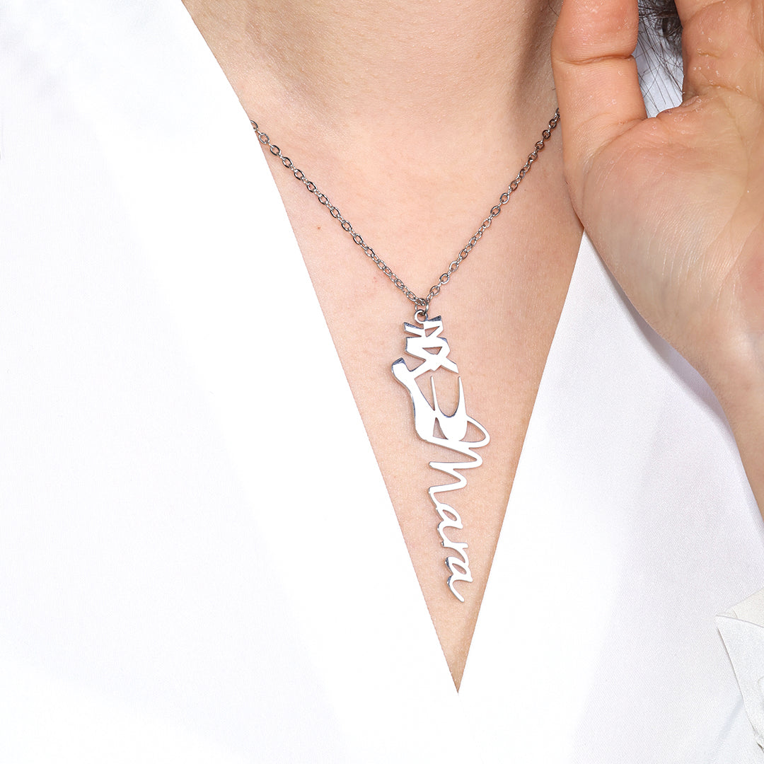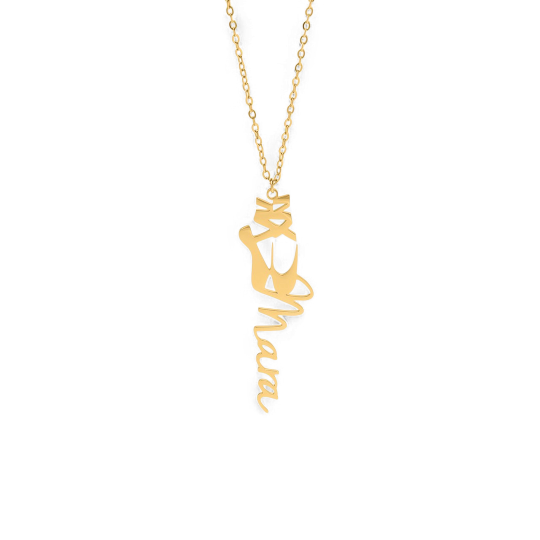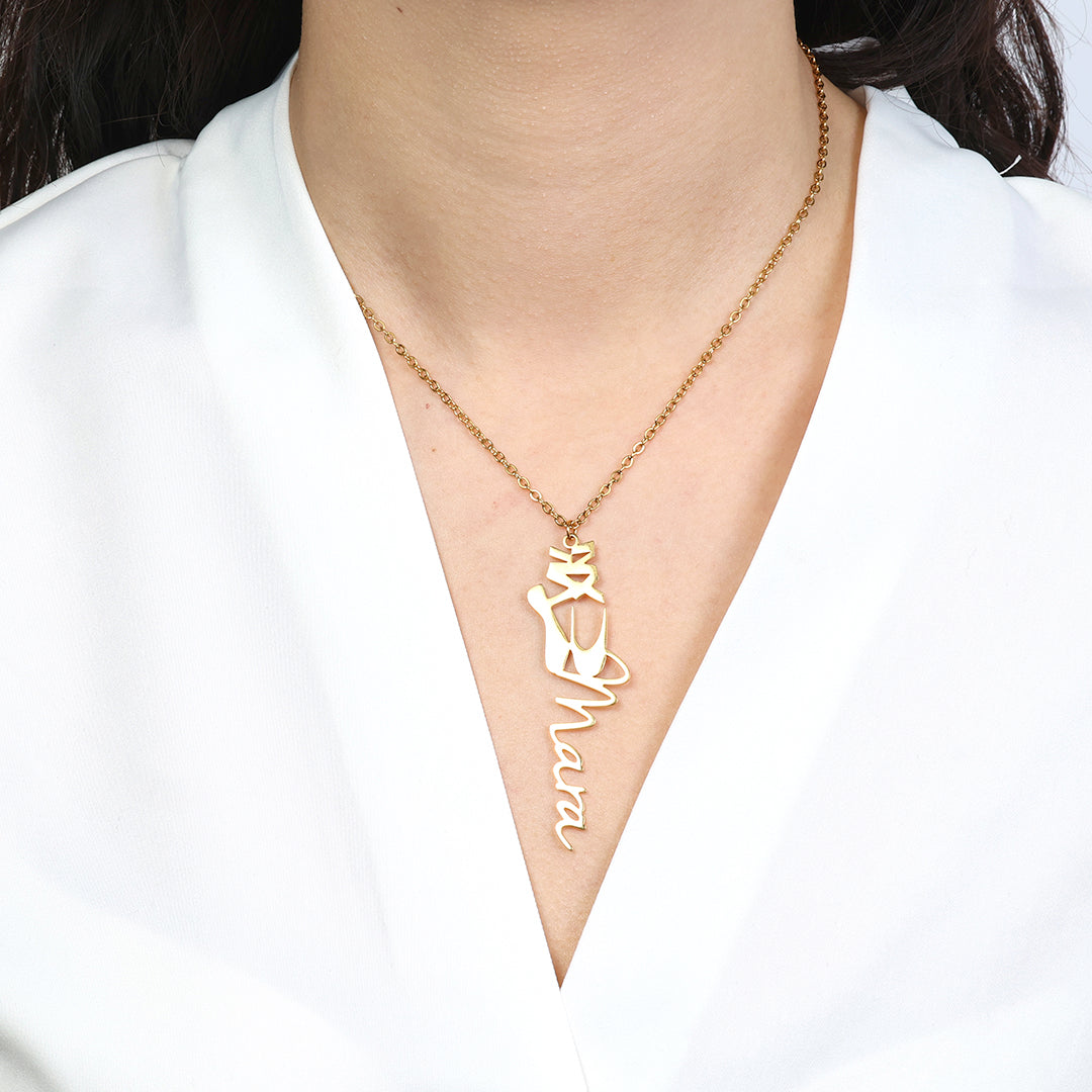 A dainty ballet shoes necklace, perfect for dancers and ballet lovers. Personalize it with a name for a meaningful keepsake. A thoughtful gift for recitals, birthdays, or just because. Crafted with love for those who dance through life.