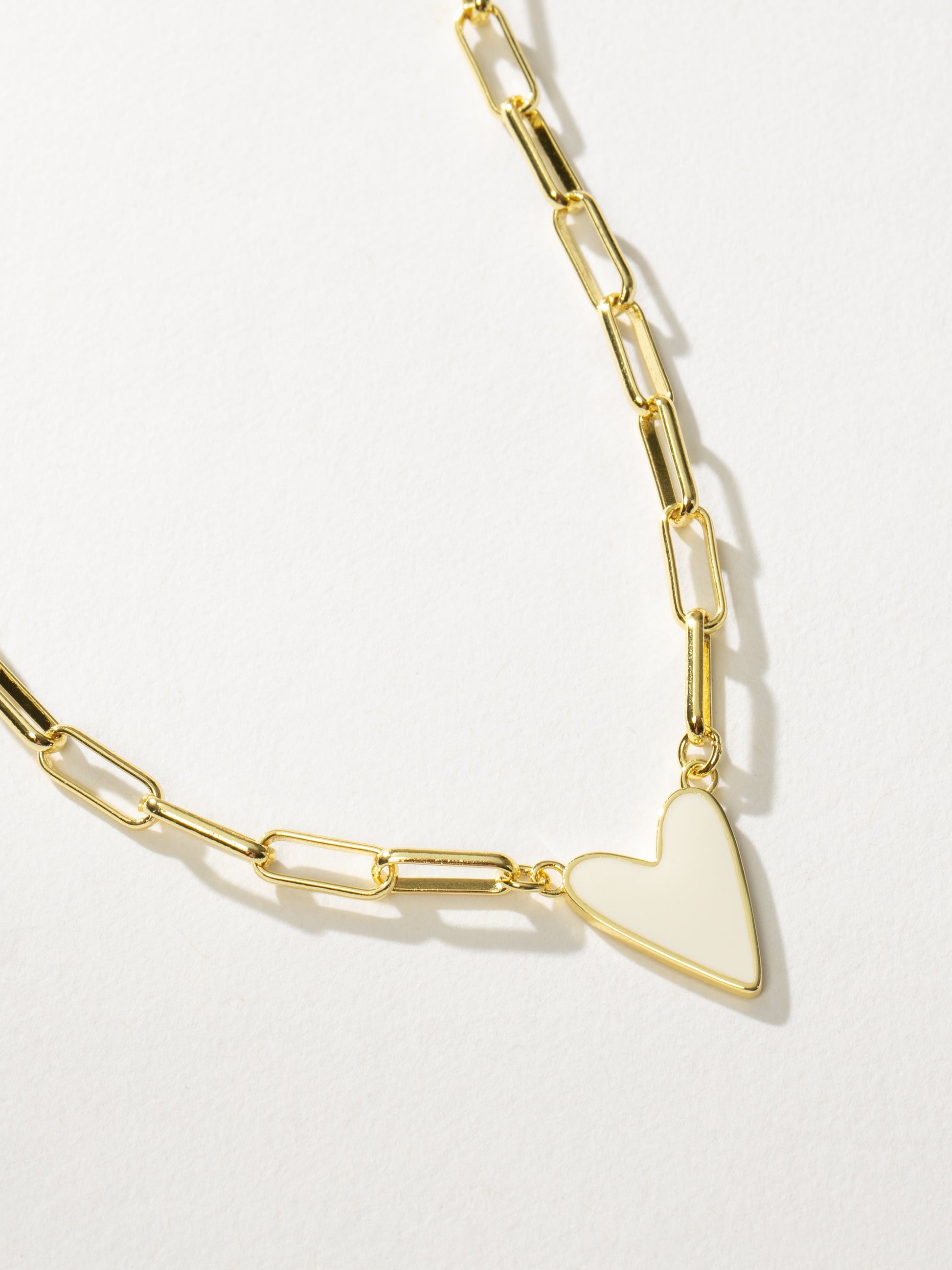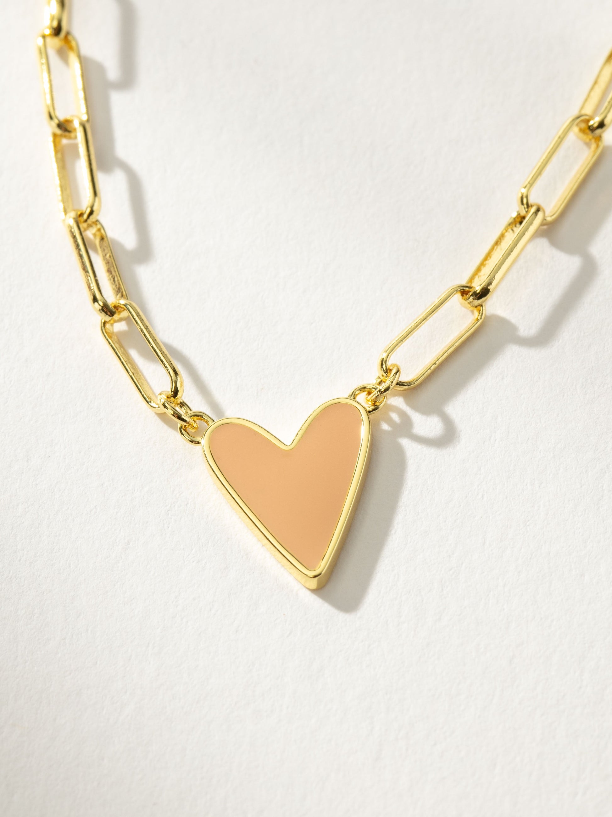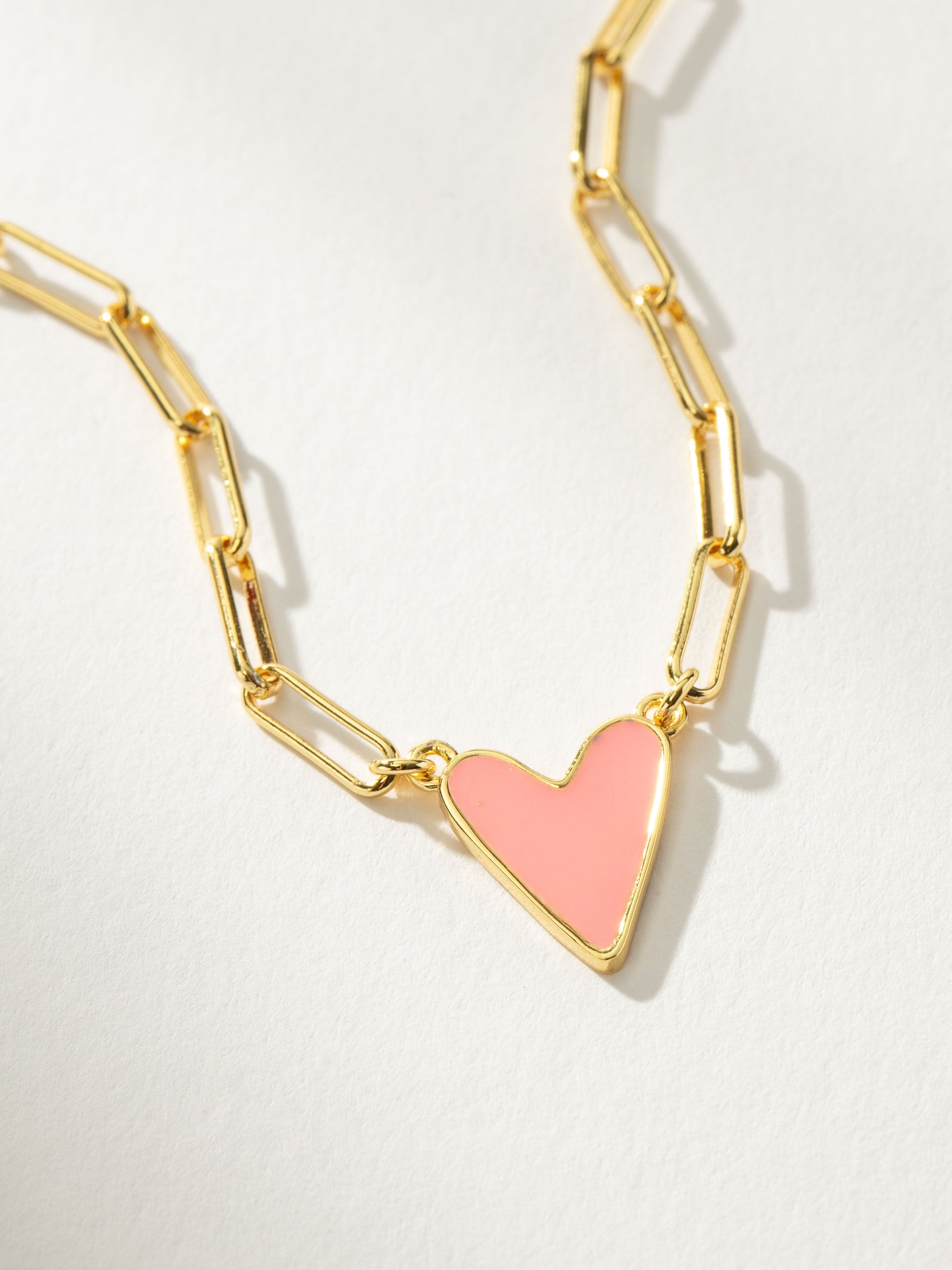 Our best-selling heart necklace, featuring a paperclip chain, now comes in even more colors! This chain and pendant necklace is a sweet addition to your daily necklace set. For a full look, layer the Enamel Heart Necklace in the color of your choice with your favorite gold chain necklaces.
