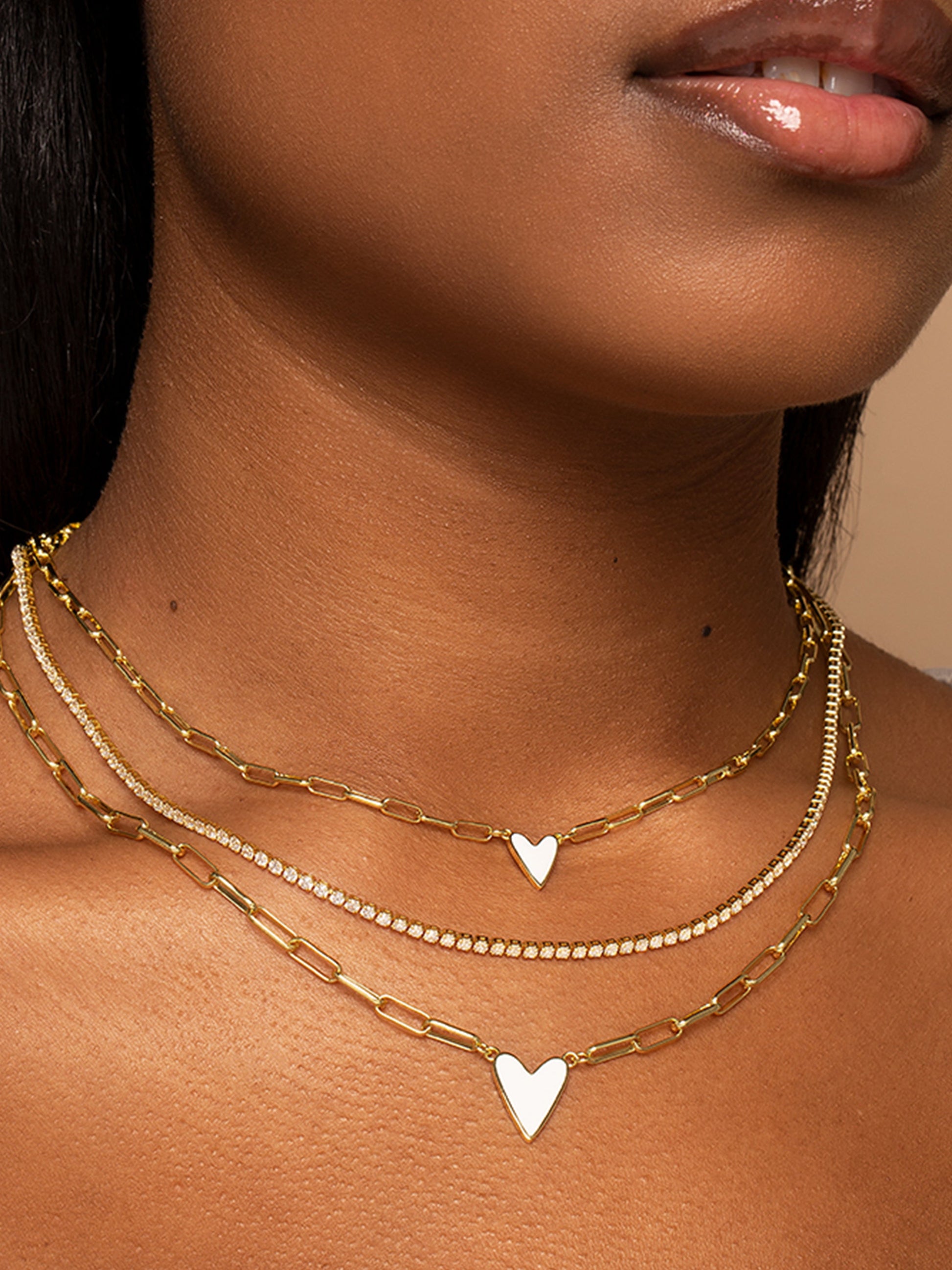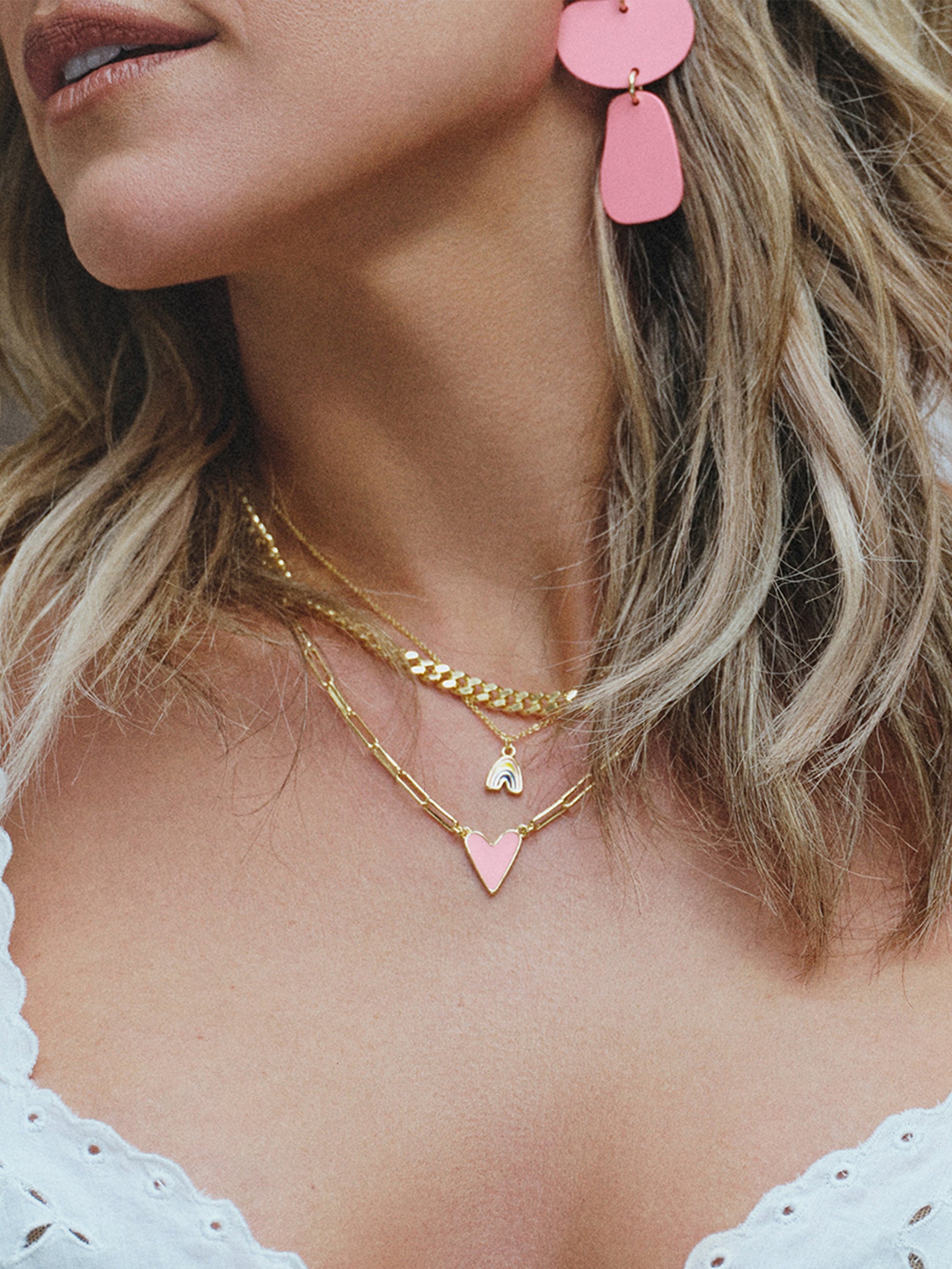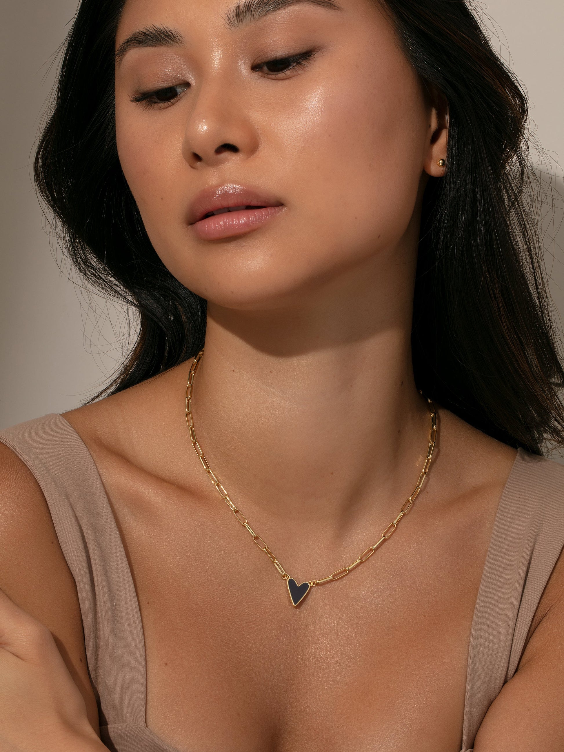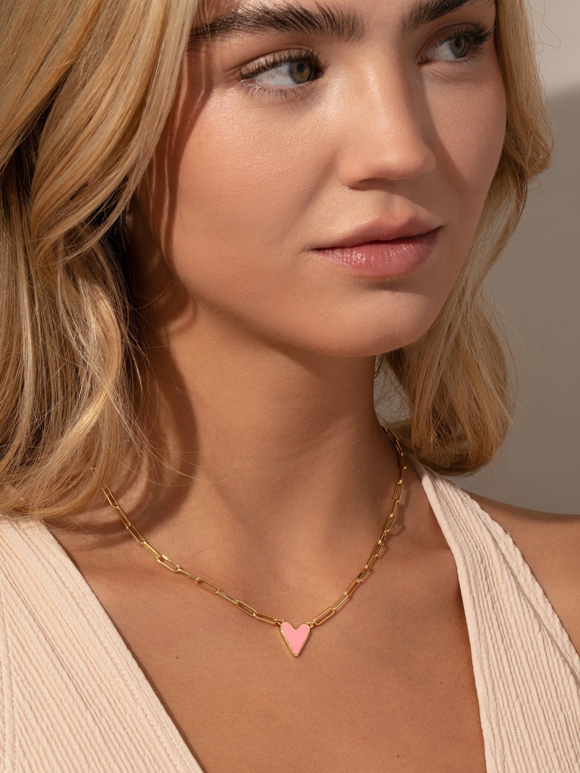 Our best-selling heart necklace, featuring a paperclip chain, now comes in even more colors! This chain and pendant necklace is a sweet addition to your daily necklace set. For a full look, layer the Enamel Heart Necklace in the color of your choice with your favorite gold chain necklaces.