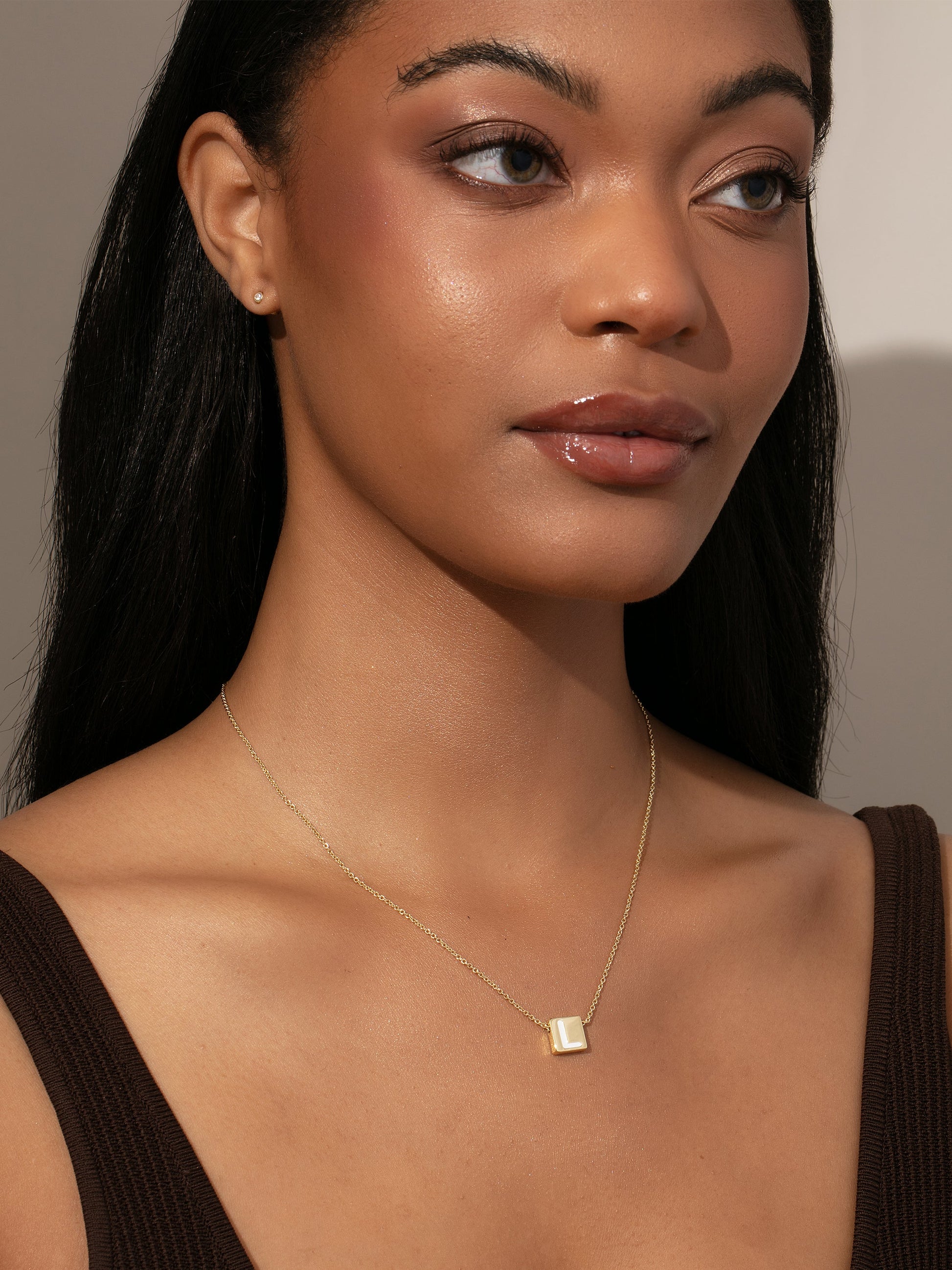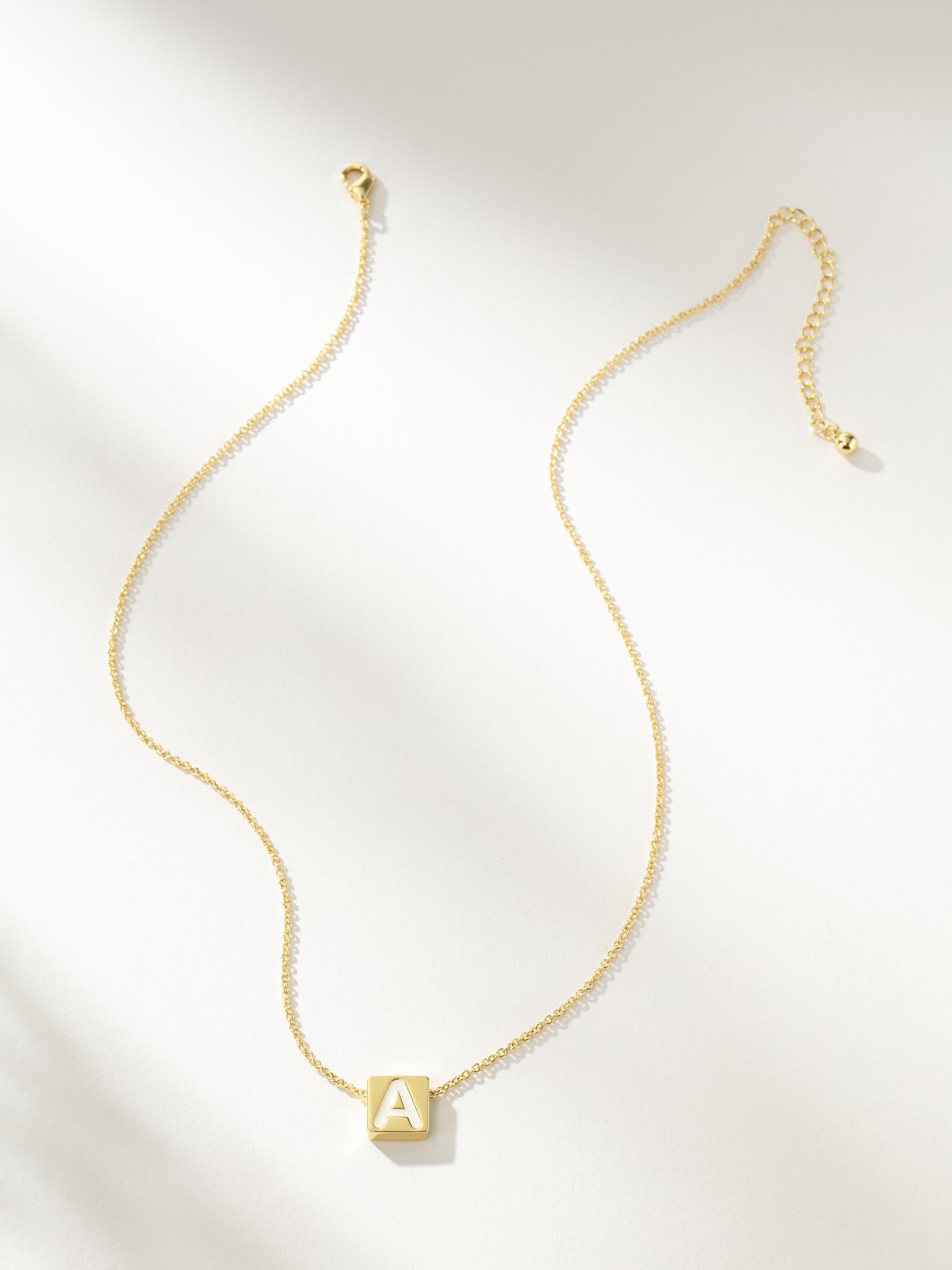 If there’s always an initial necklace in your stack, you need our Bold Letter Necklace. This block letter necklace brings a pop to your stack with its white lettering detail. Layer with our Textured Stud Necklace for a simple, everyday look.