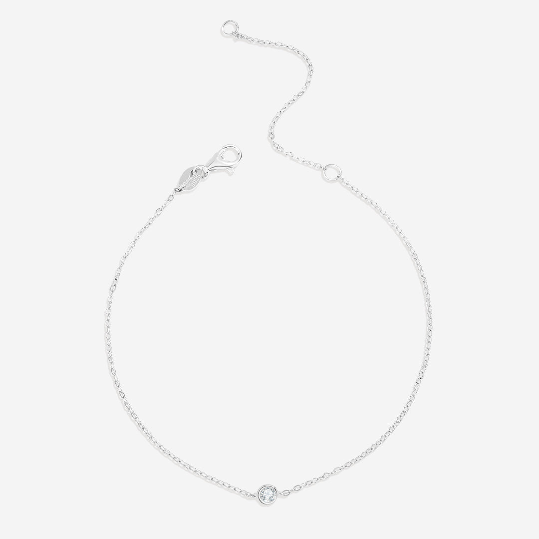 Mint & Lily's Bubble Solitaire Bracelet features a delicate cable chain that beautifully complements a stunning bezel-set moissanite diamond accent. This elegant piece showcases the brilliance of the moissanite, reflecting light with every movement while the bubble design adds a modern twist.