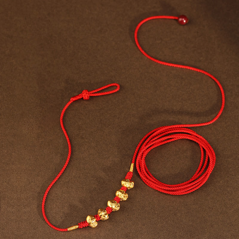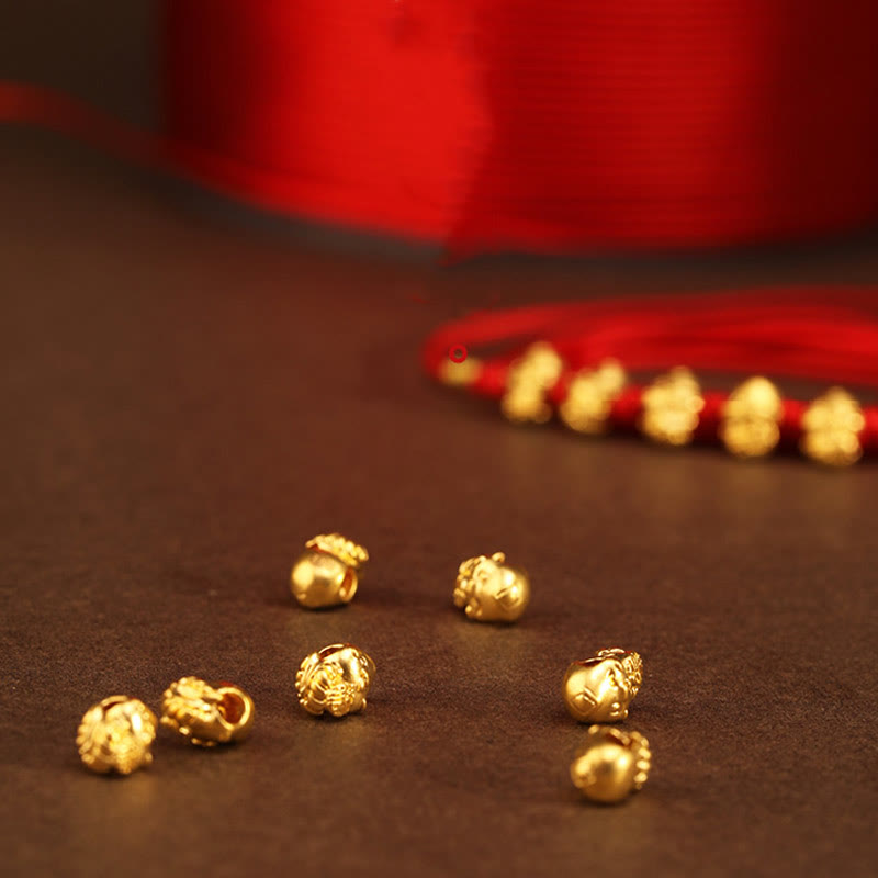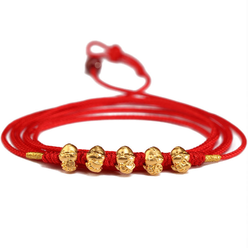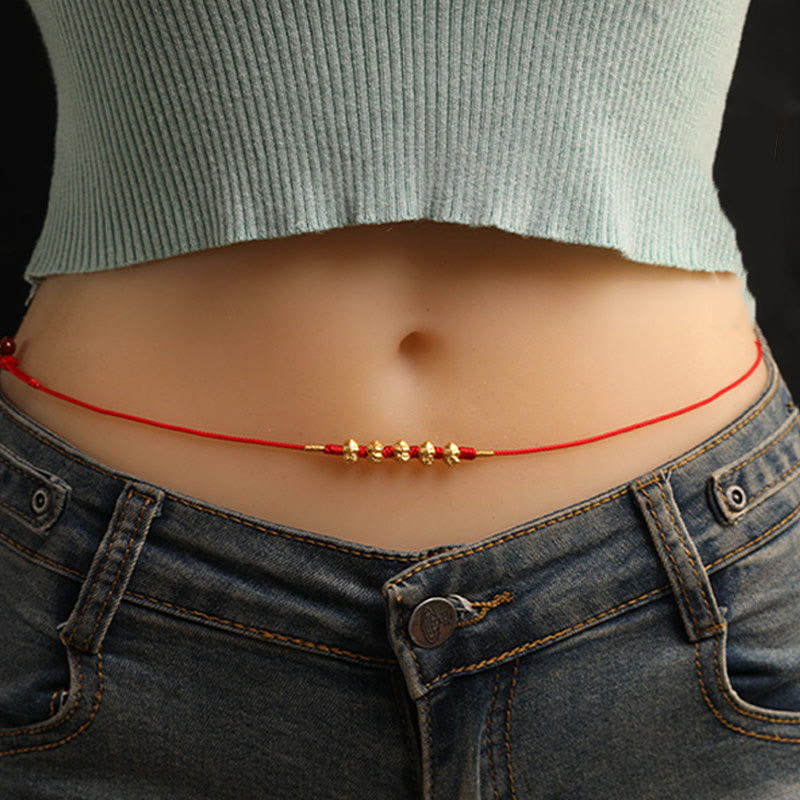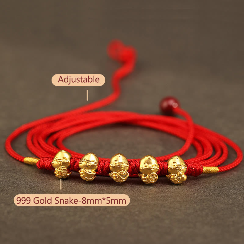 Buddha Stones 999 Gold Ingot Coin Ruyi Gourd Fu Character Year of the Snake Red String Belly Chain