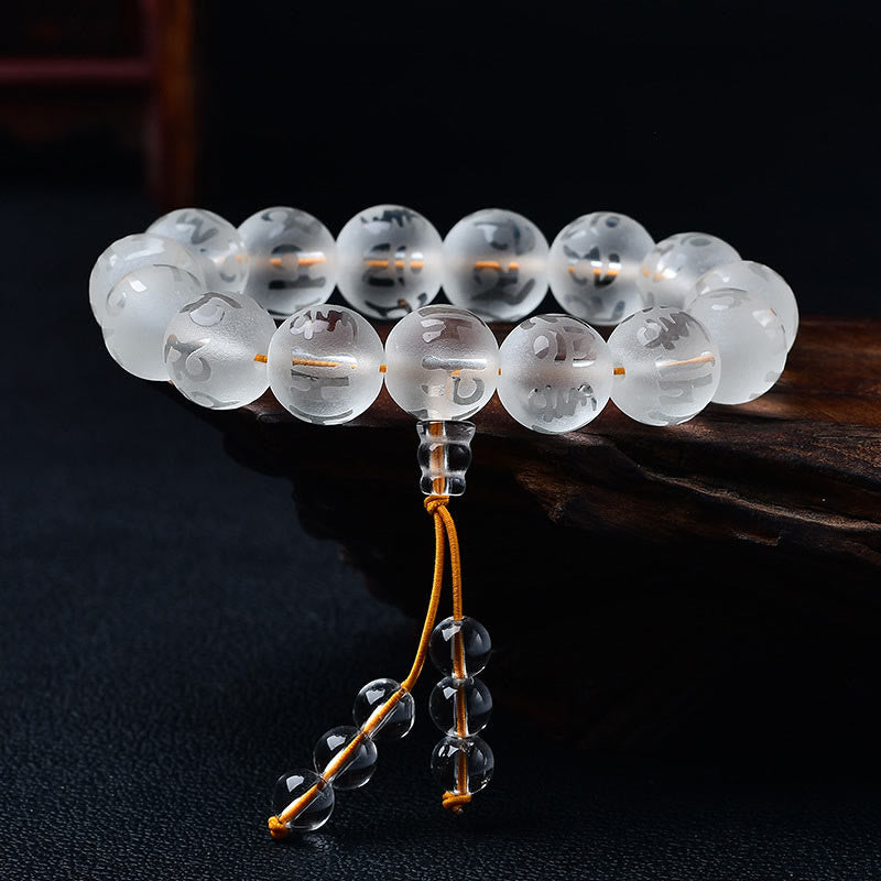 Buddha Stones Tibet White Crystal Black Onyx Om Mani Padme Hum Meditation Bracelet