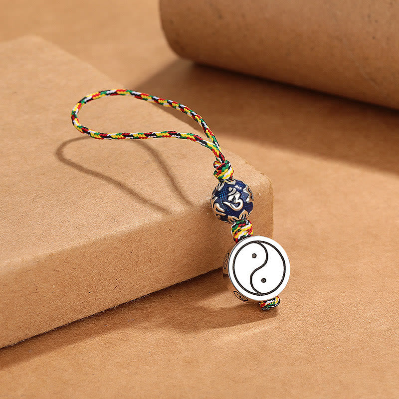 Buddha Stones Yin Yang Symbol Om Mani Padme Hum Bagua Copper Harmony Key Chain