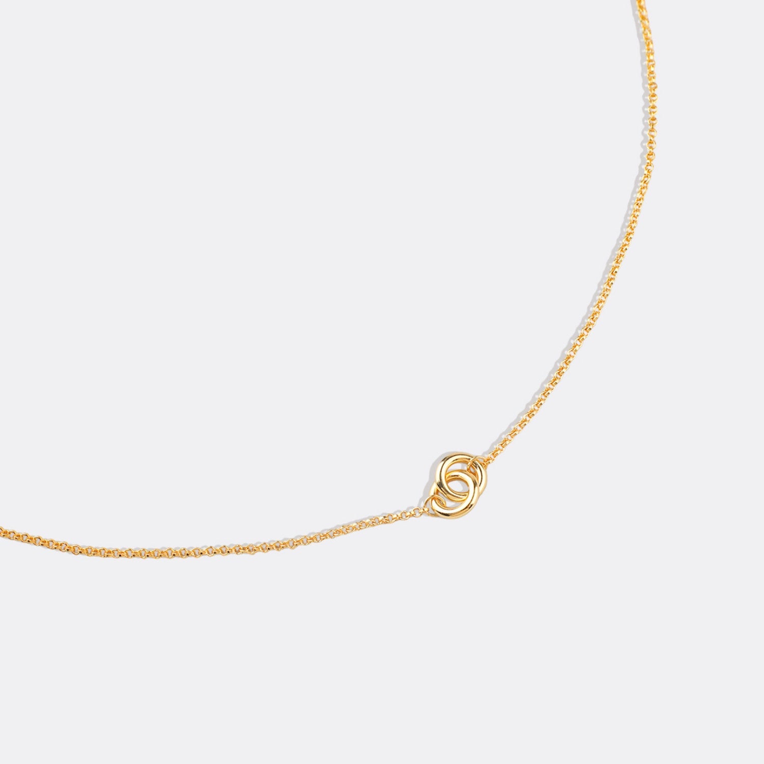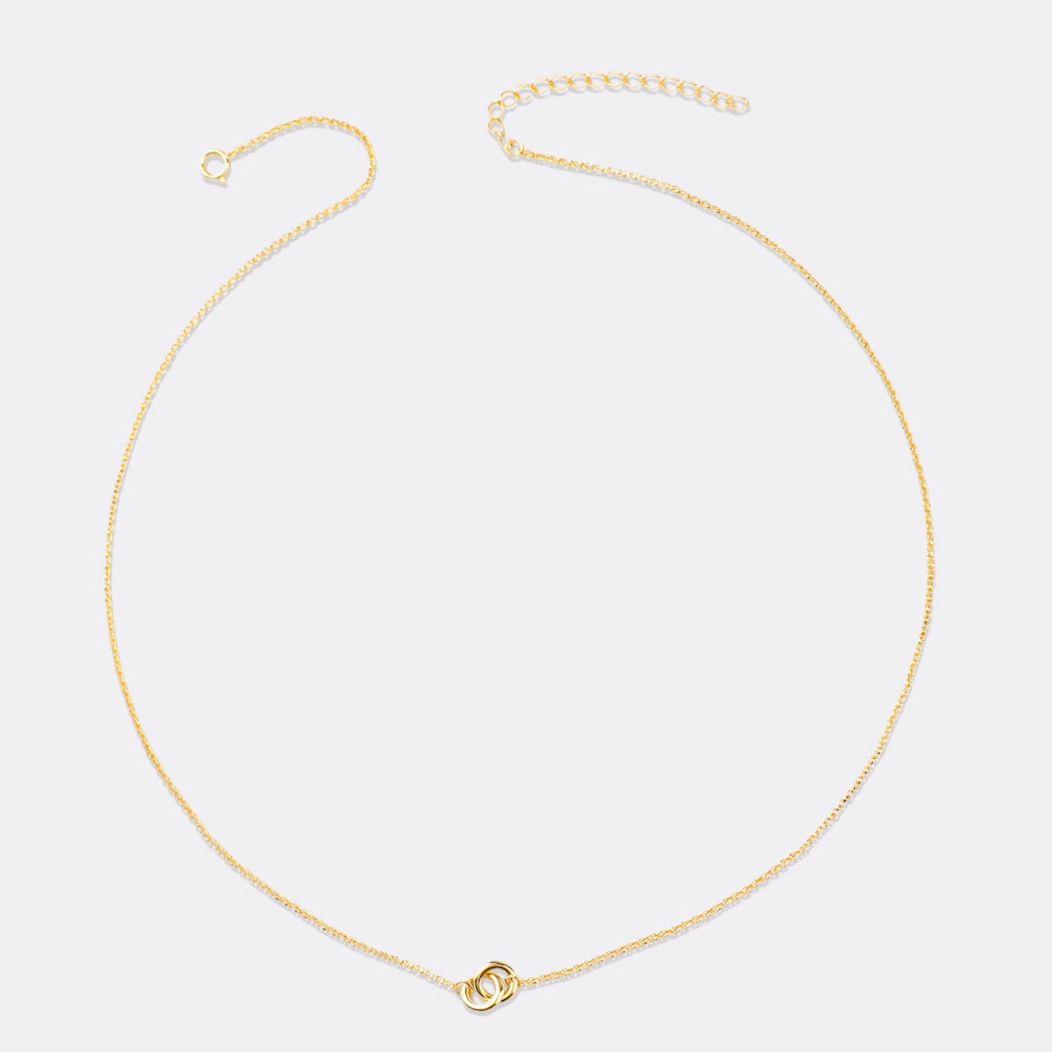 This elegant piece features two linked rings, symbolizing unity and togetherness, suspended on a delicate rolo chain. Perfect for representing special bonds, whether between friends, family, or partners, this necklace makes a meaningful gift or a personal keepsake to cherish.