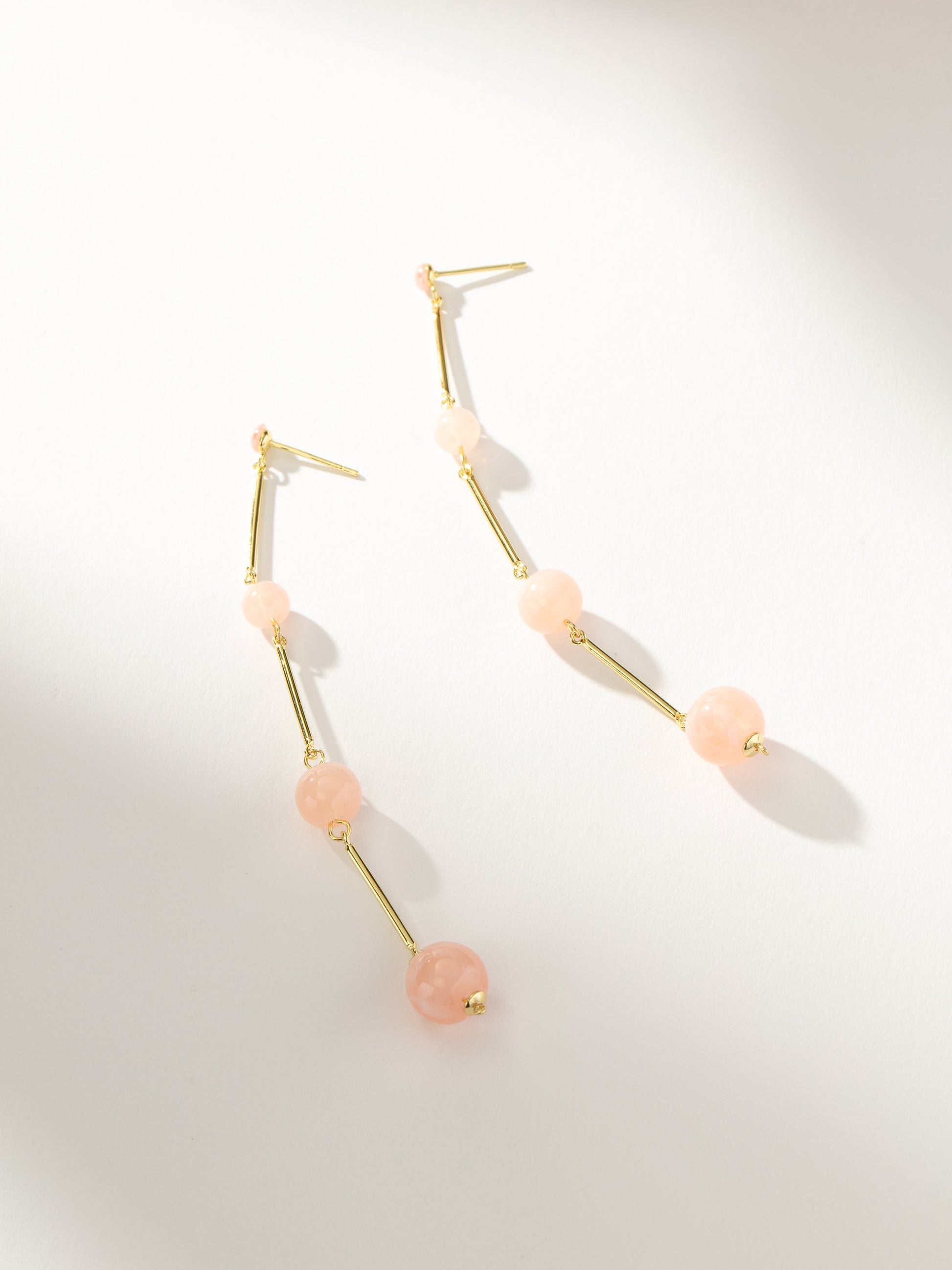 Your future shows you wearing these pink and gold earrings all the time. Crafted from a pink stud, pink beads, and gold bars, these earrings are here to make a statement. To make these gold dangle earrings the center of attention, pair them with simple huggie earrings or stud earrings. Love bold jewelry and want even more? Shop all of our statement pieces.