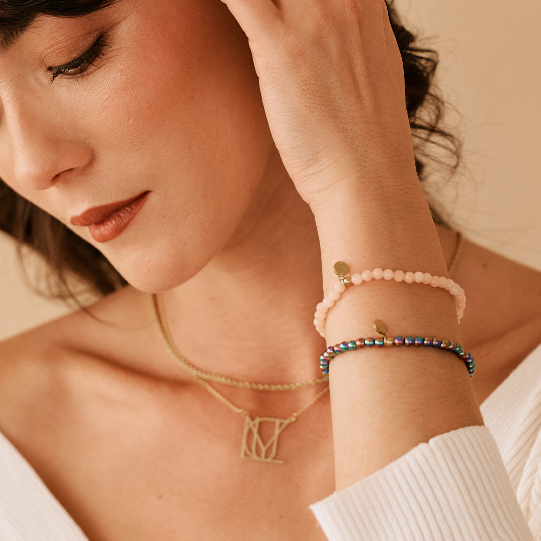 Mint & Lily's Crystal Energy Bracelet is a stunning accessory designed to enhance your well-being and style. This beautiful bracelet features an array of sparkling natural crystals, each chosen for their unique properties and energies.