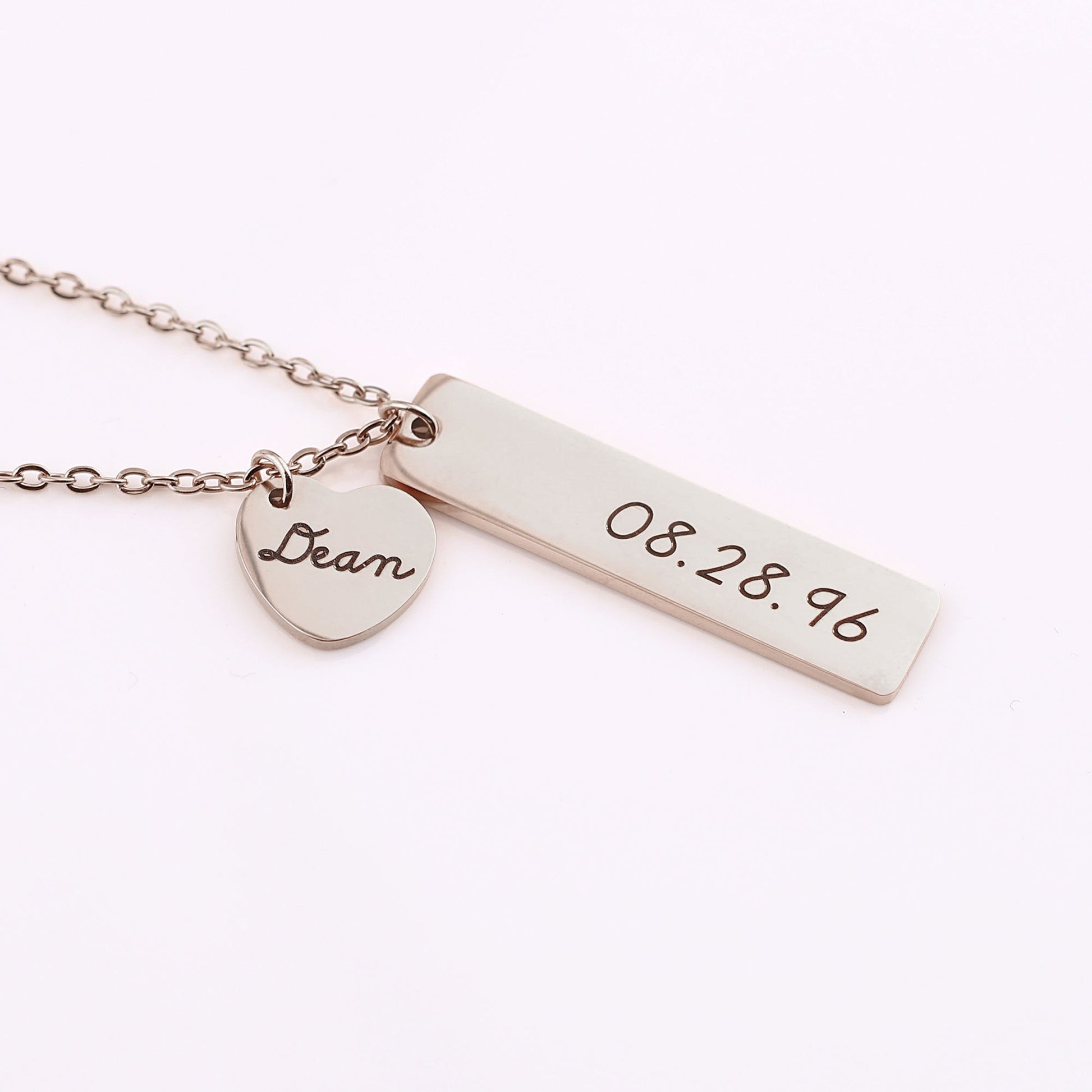 Seal your friendship and put the day you met, along with both of your names on this Custom Engraved Best Friends Necklace. Add up to six hearts or bars with your names, special dates, or meaningful phrases.