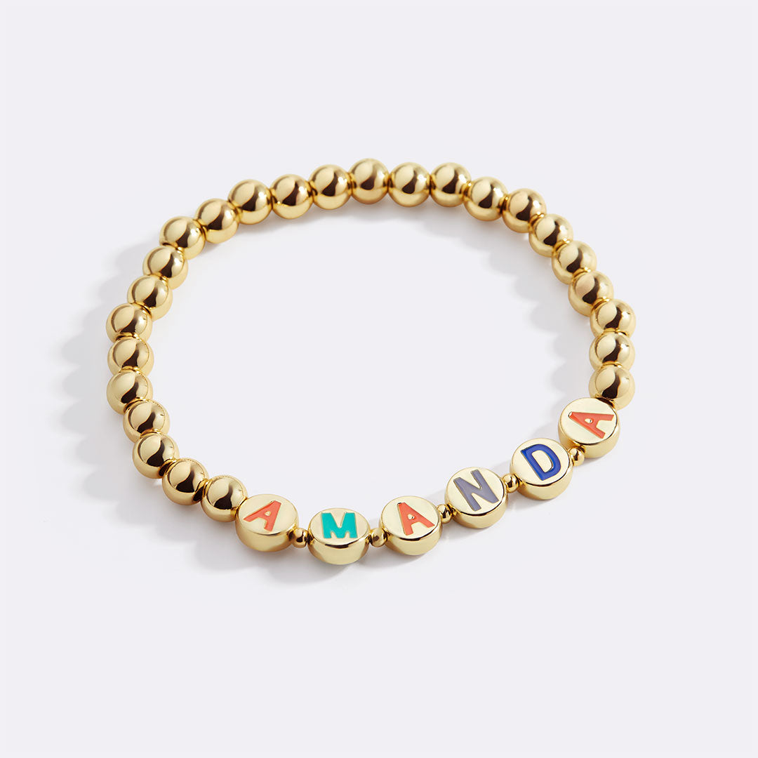 Custom Rainbow Letter Gold Disc Bead Bracelet