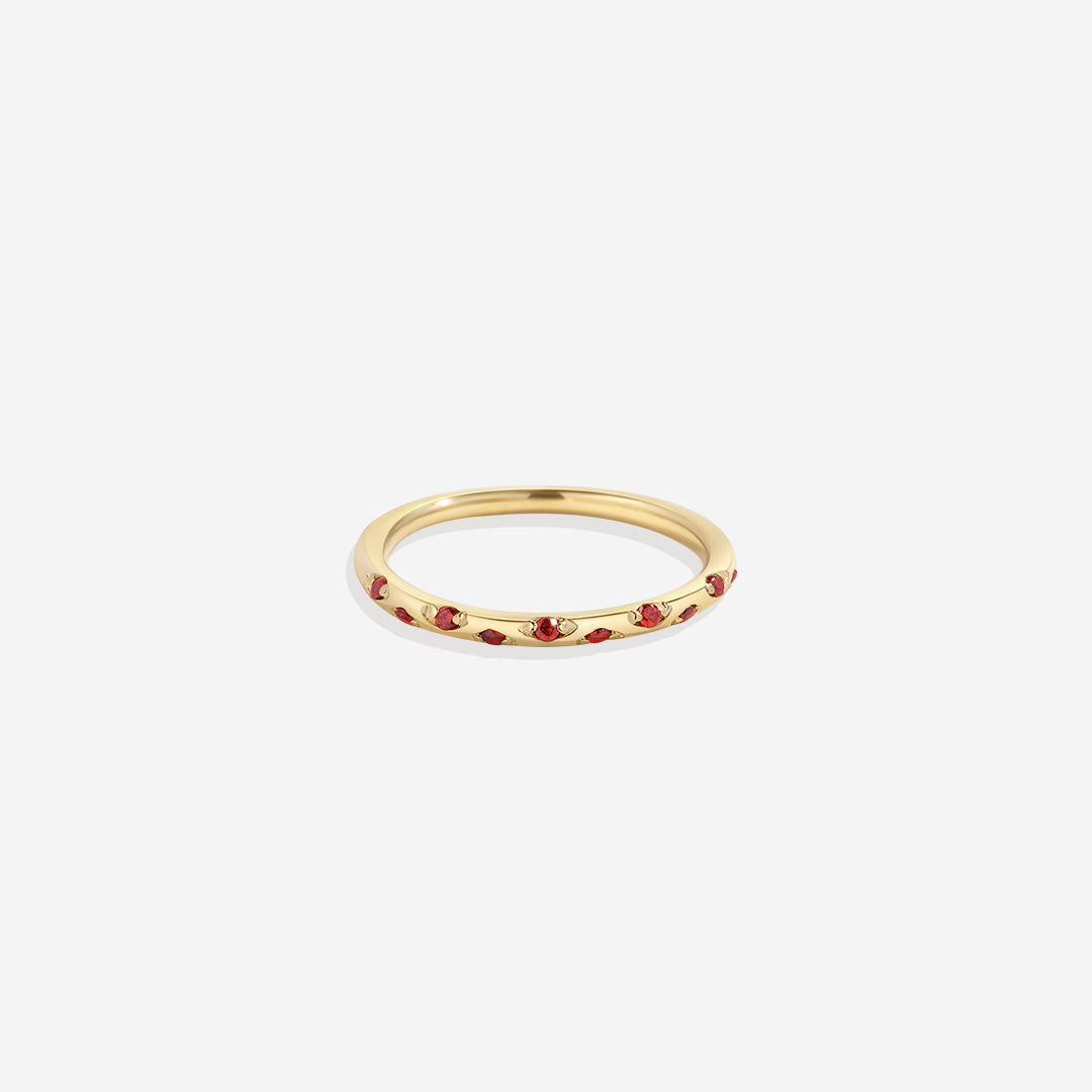A delicate fusion of personal style and celestial charm. This dainty birthstone band adds a subtle sparkle to your everyday look, while its constellation design brings a touch of the cosmos to your fingertips.