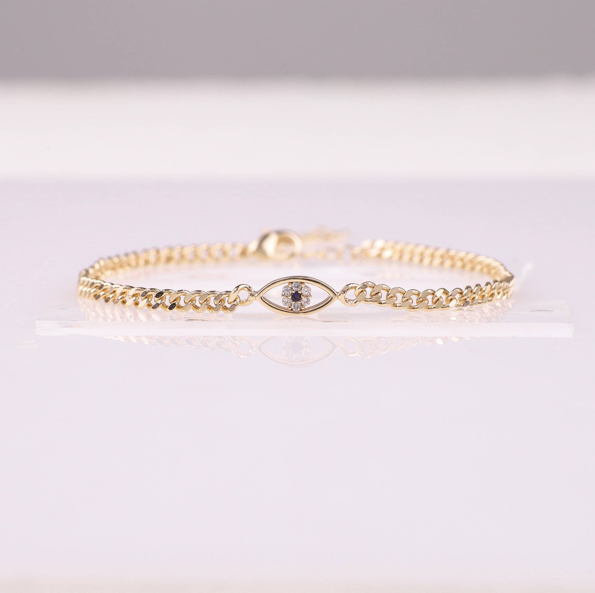 Dainty Cuban Link Chain Evil Eye Bracelet