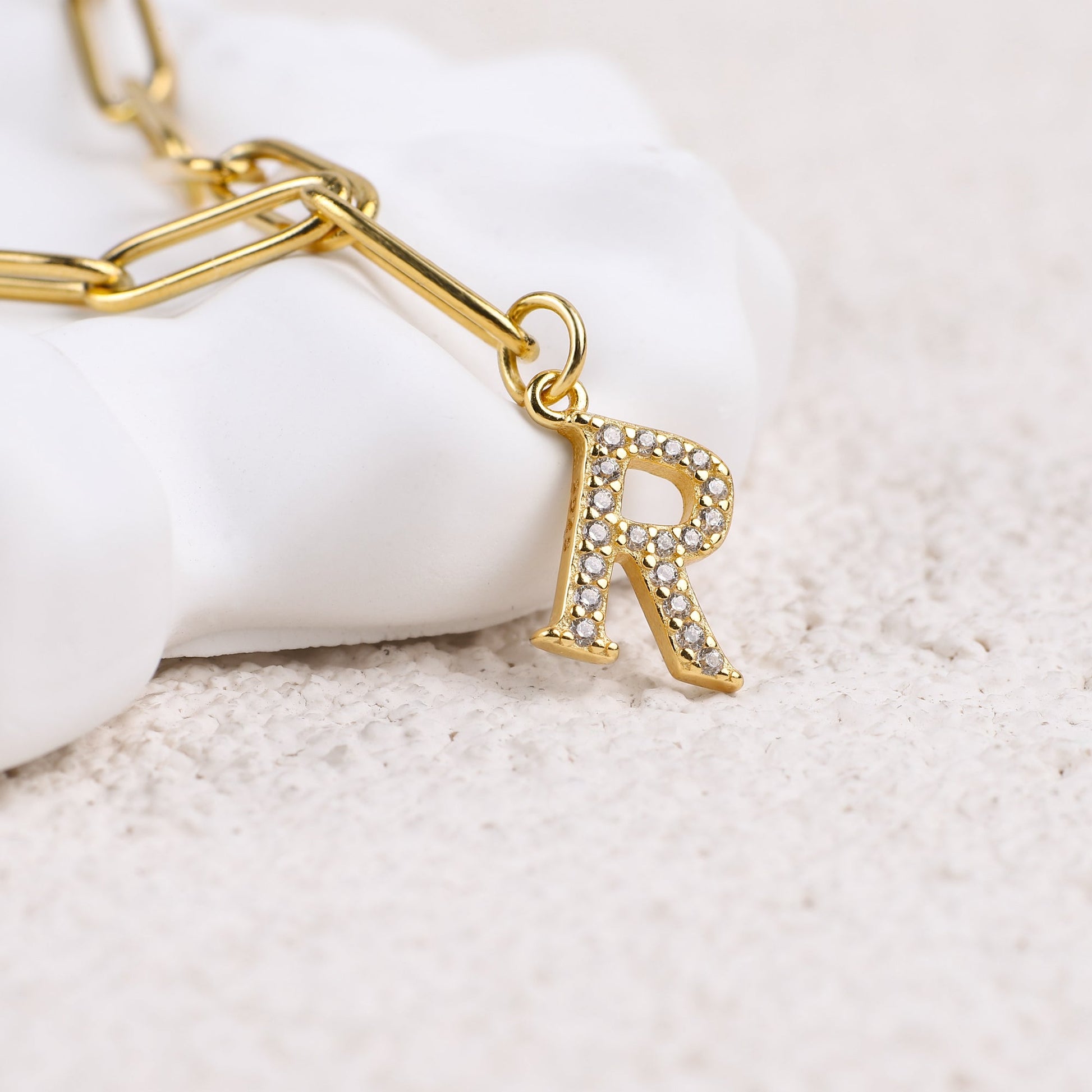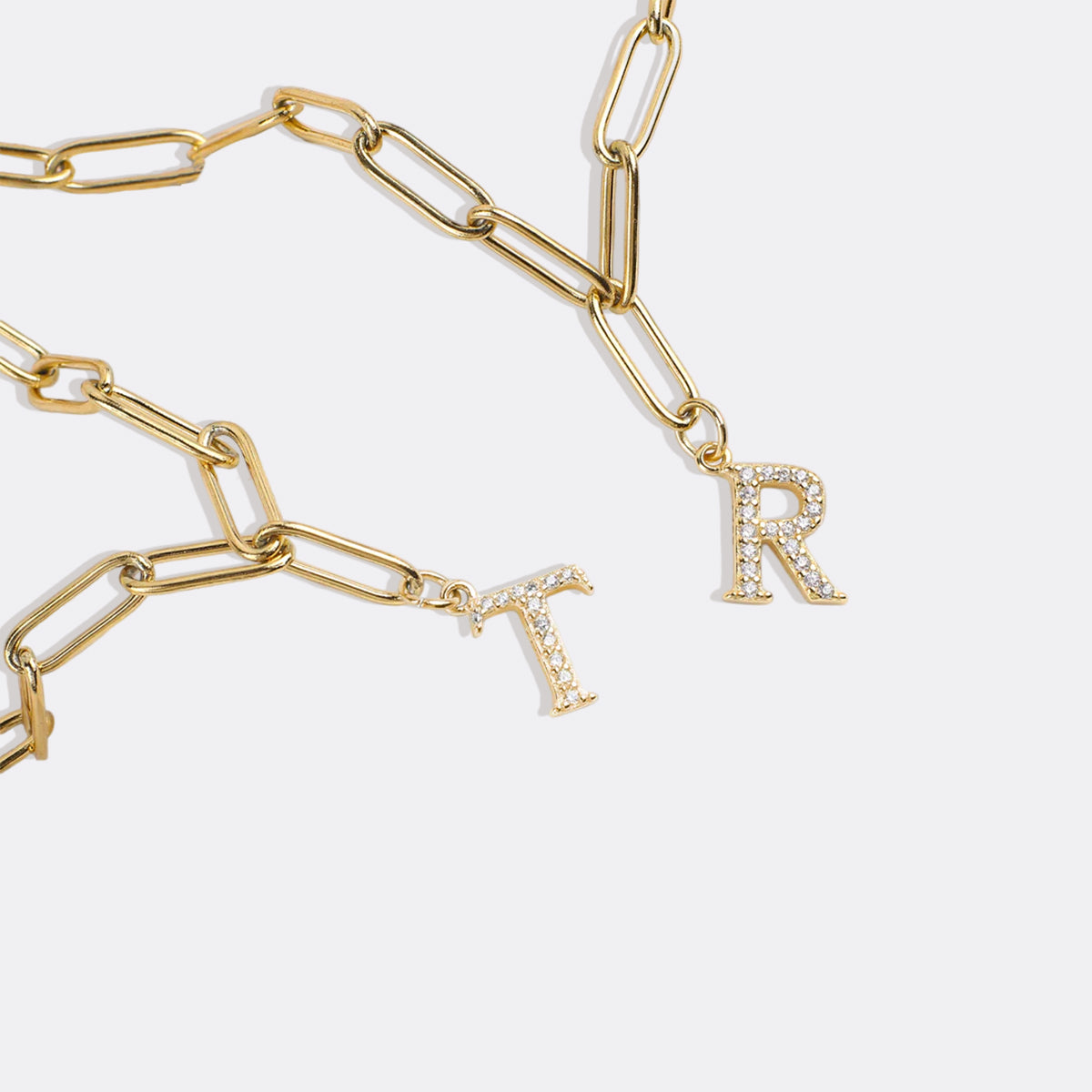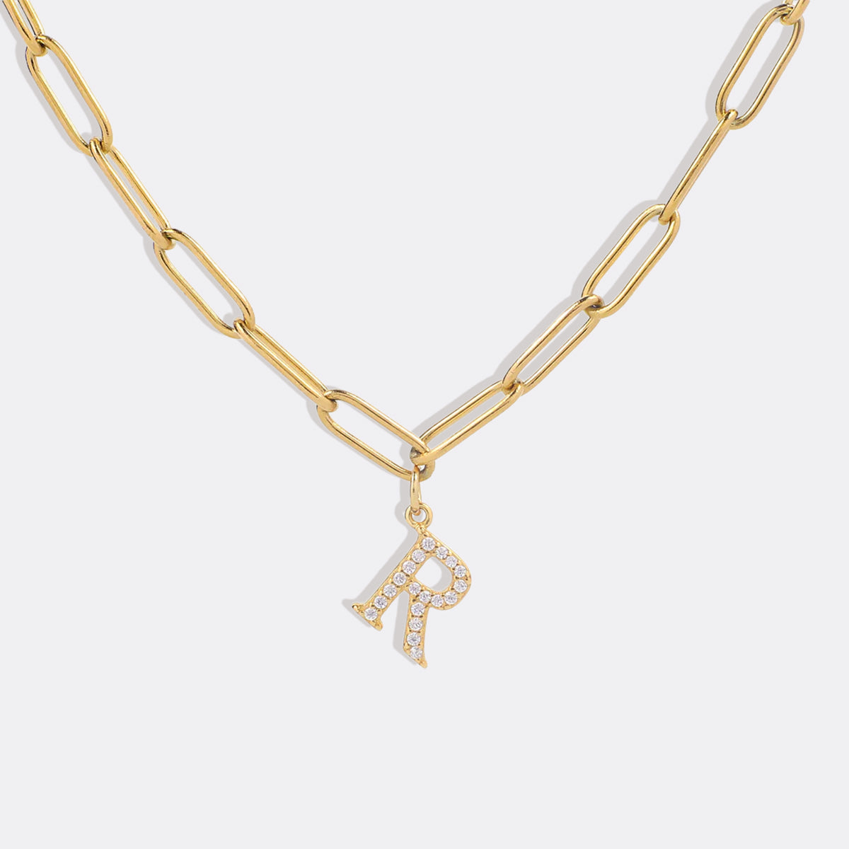 Diamond Letter Pendant Necklace with Paperclip Chain
