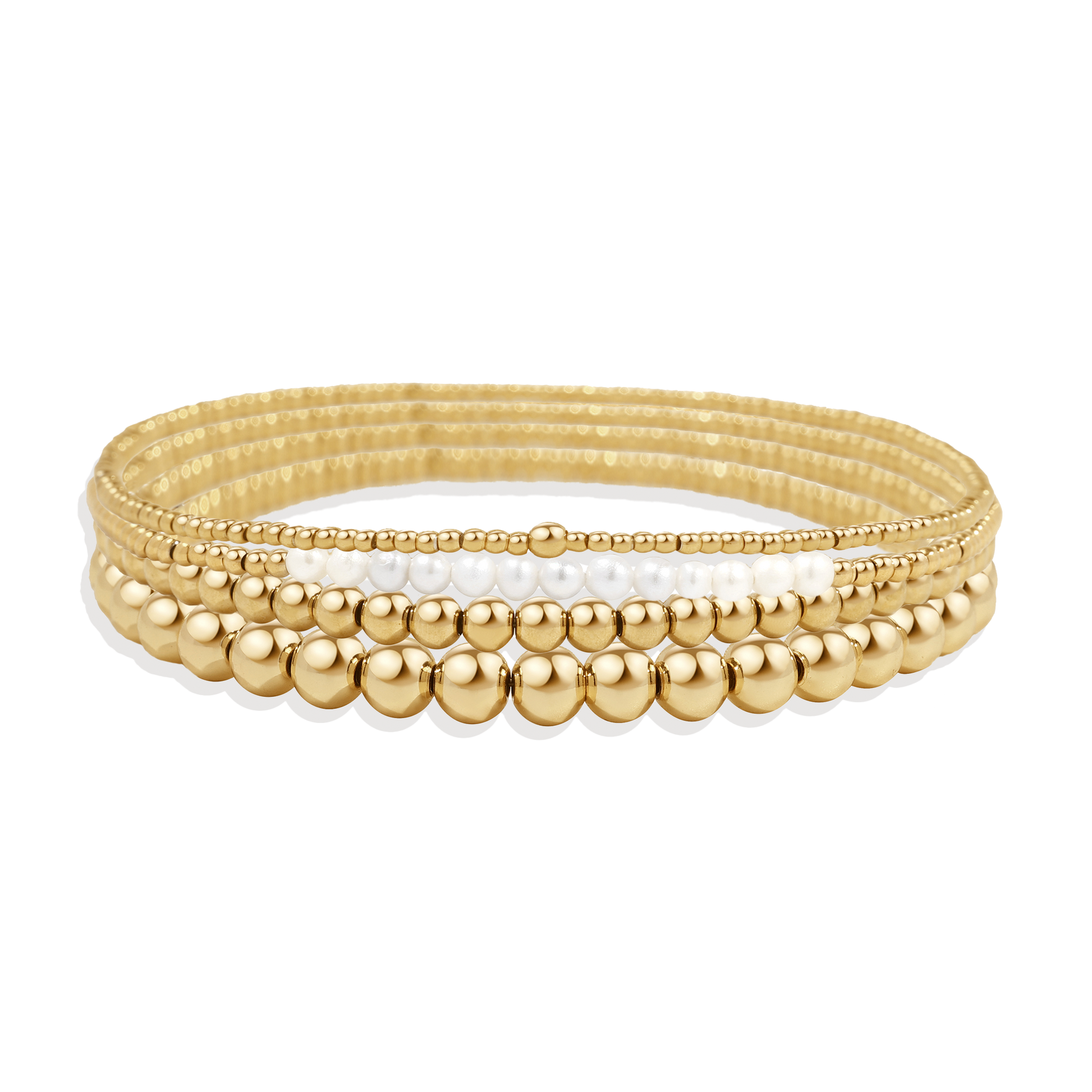 Materials: Real 18k Gold Over Waterproof Surgical Grade 316L Stainless Steel, Freshwater Pearls, Jewelry Grade Elastic (Read More)