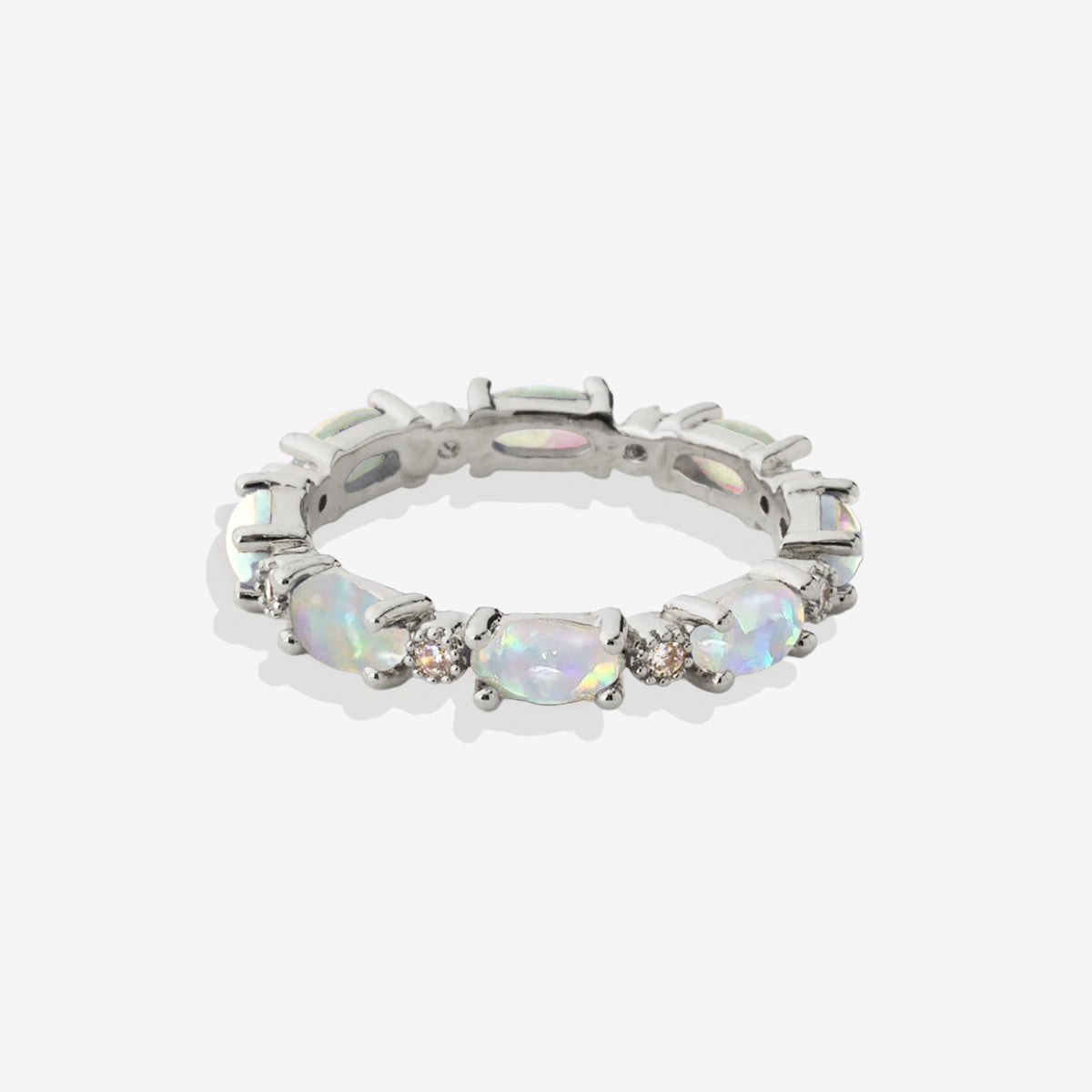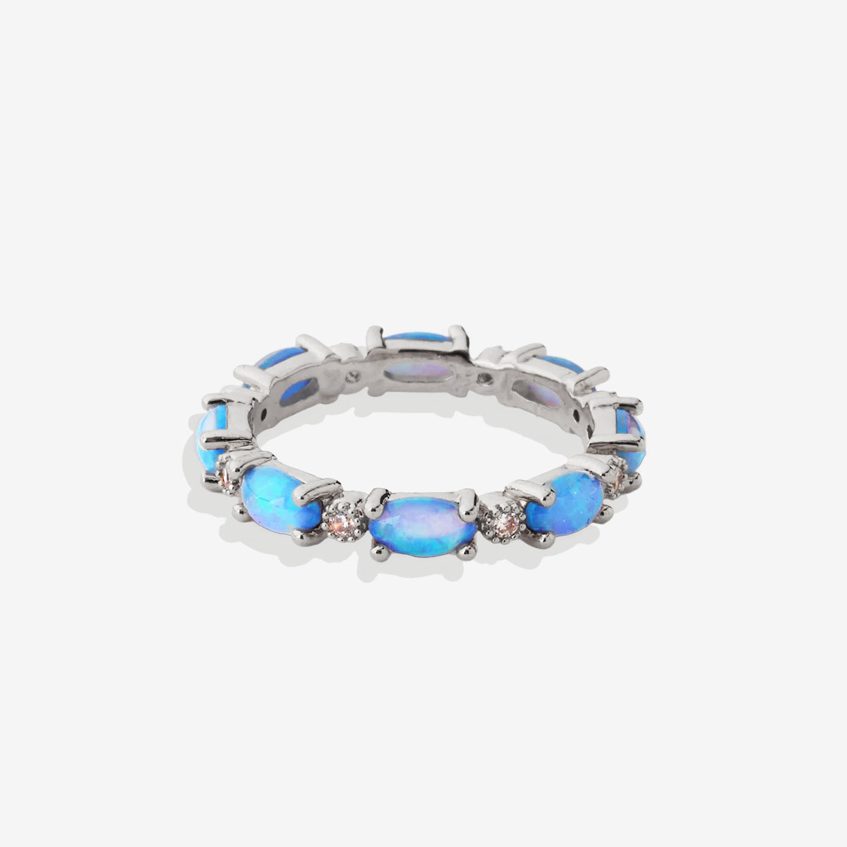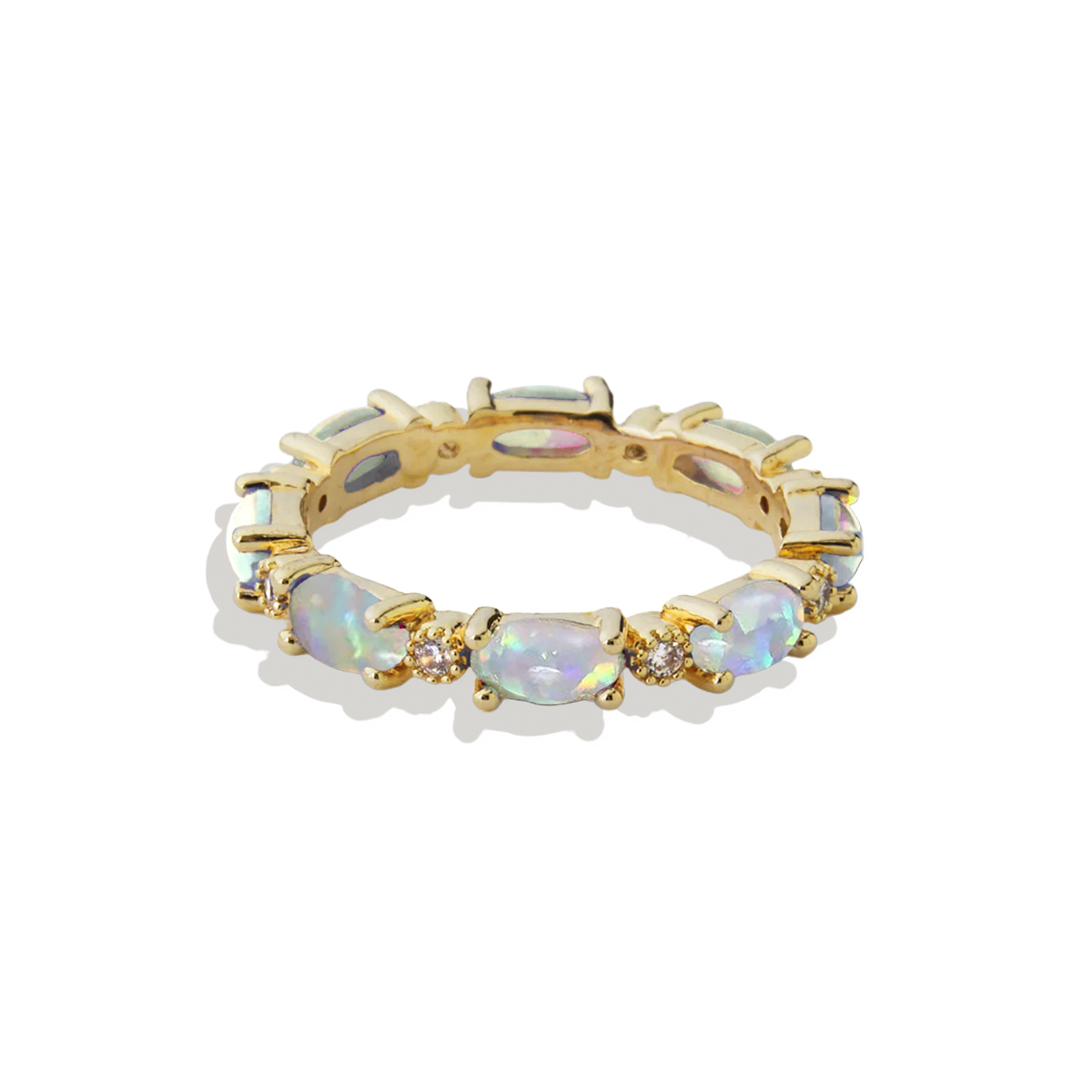 This stunning ring features a continuous circle of brilliantly colored fire opals, symbolizing everlasting love and passion. Perfect for those seeking a bold statement piece or a meaningful anniversary gift.