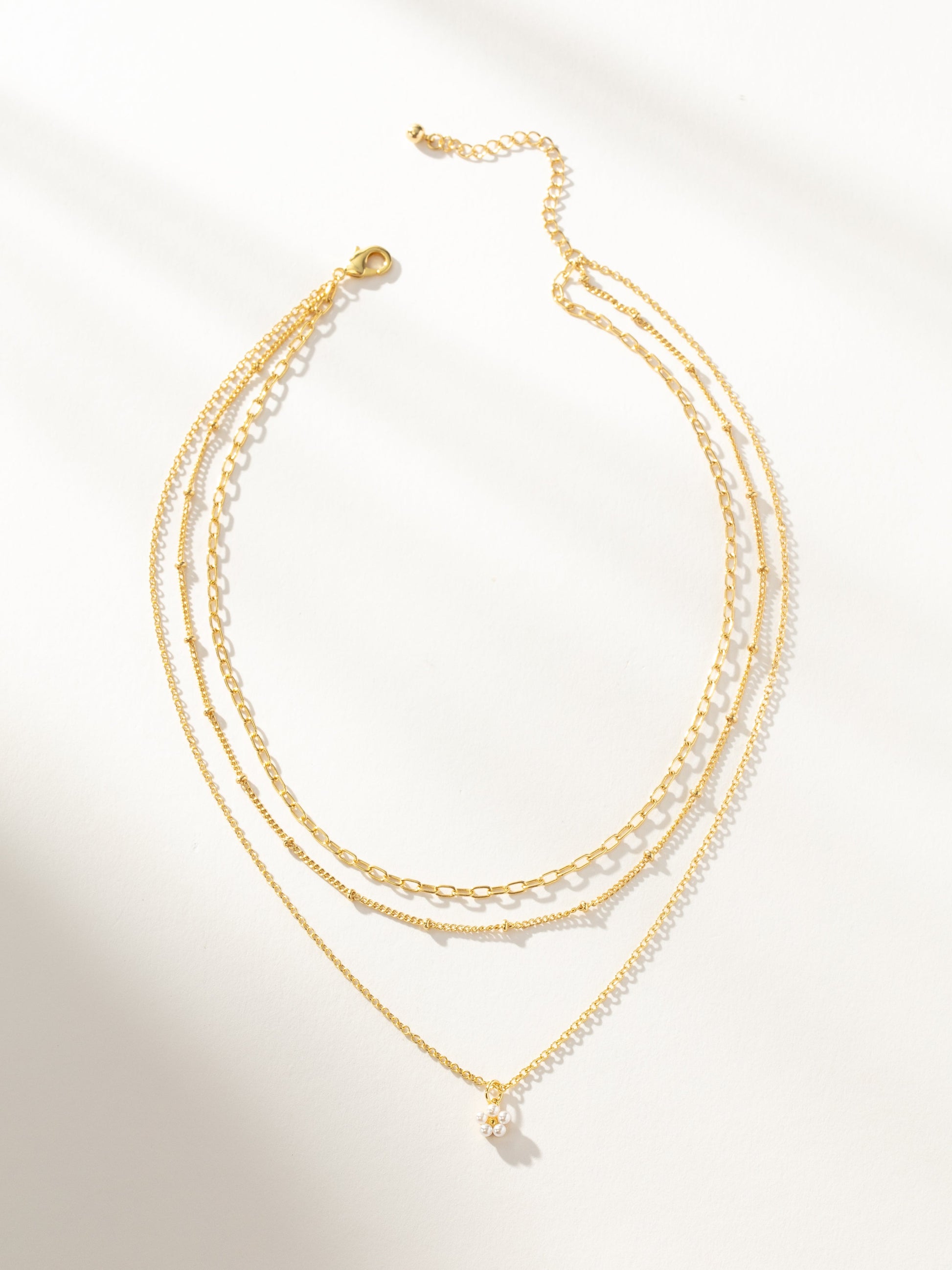 Our Flower Pendant Necklace is all you need for a full layered necklace look. This three-in-one necklace features three dainty chains and a flower pendant that’s perfect for all your spring and summer looks.