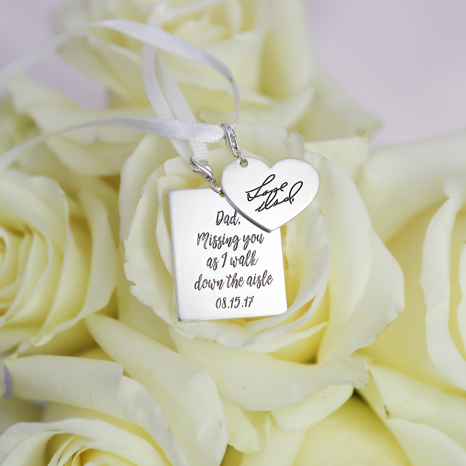A meaningful and irreplaceable gift for the bride. The Handwriting Bouquet Charm is a perfectly subtle piece to add to a bouquet on your wedding day as a reminder of the love that surrounds you on this milestone. Whether your loved one is able to be there in person or not, they’re with you.