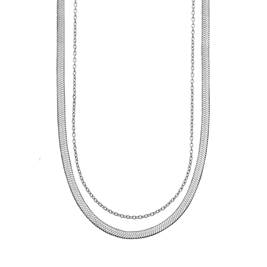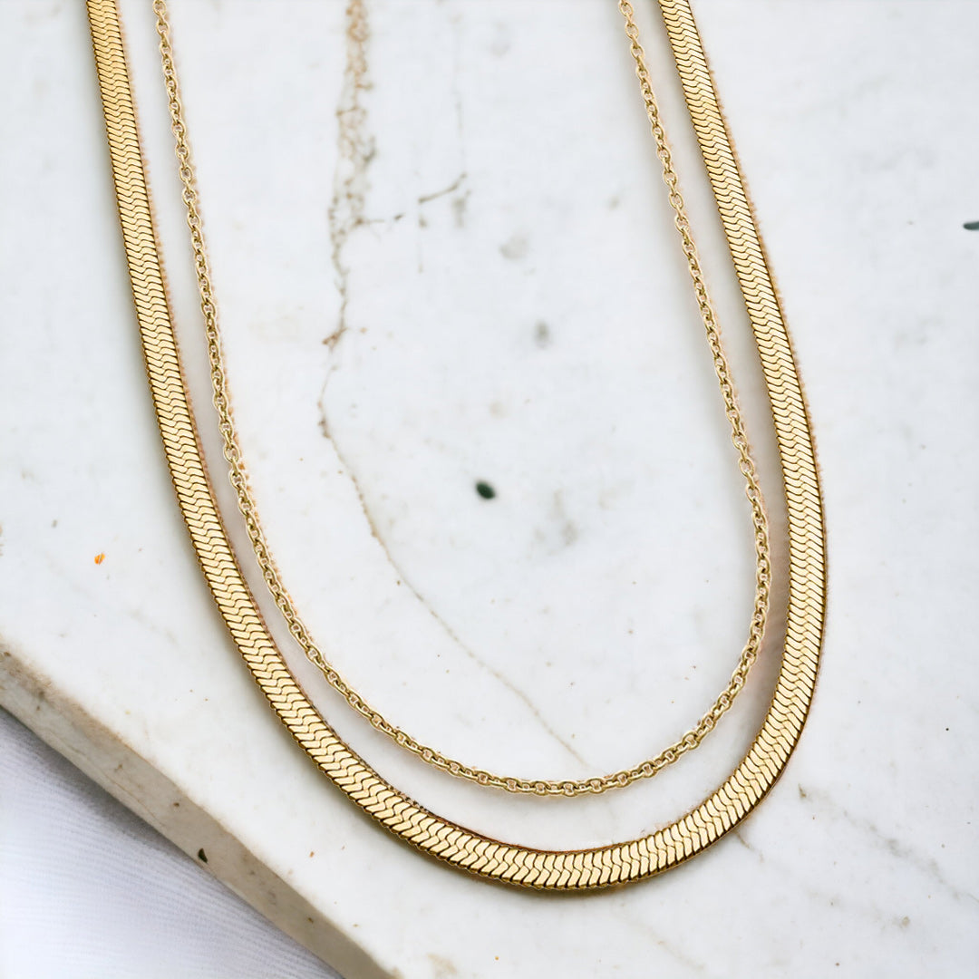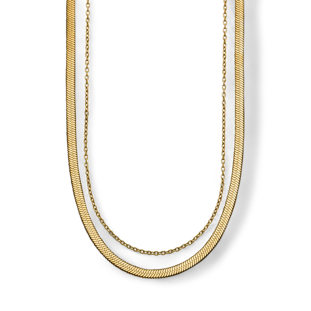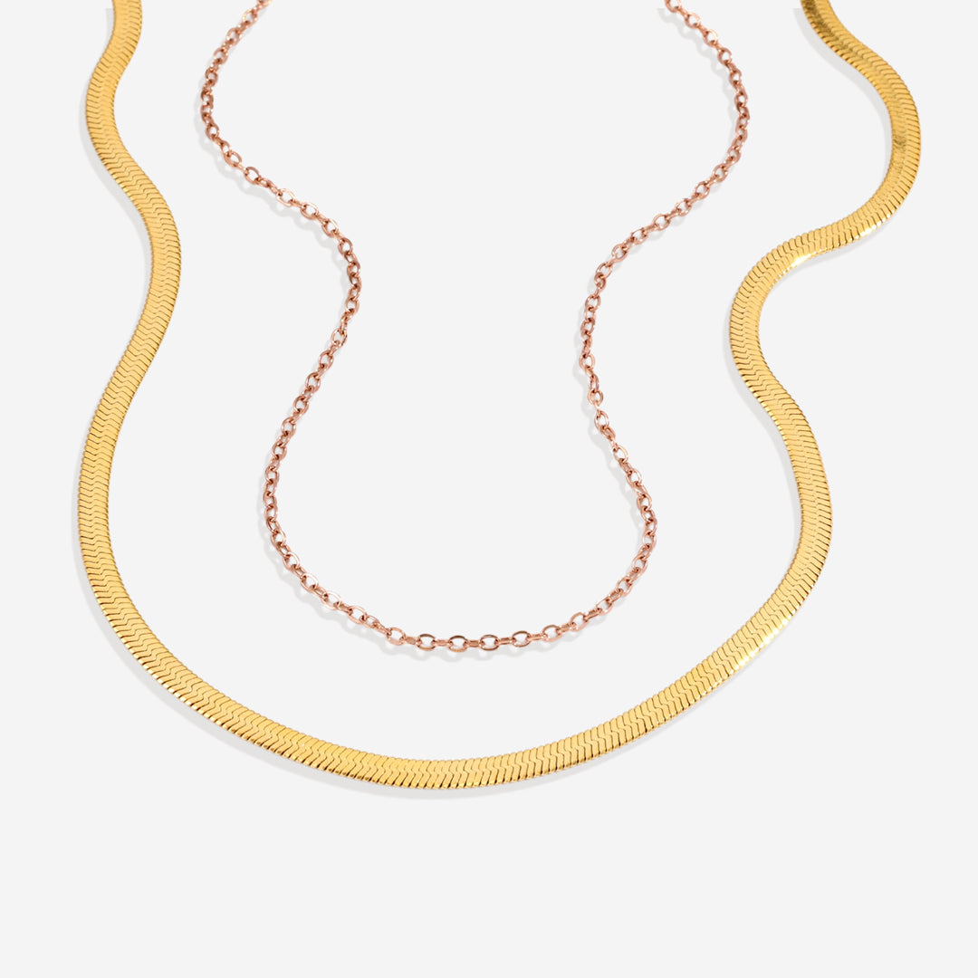 Introducing the Herringbone & Milano Chain Set, a captivating duo necklace collection designed for the modern woman.