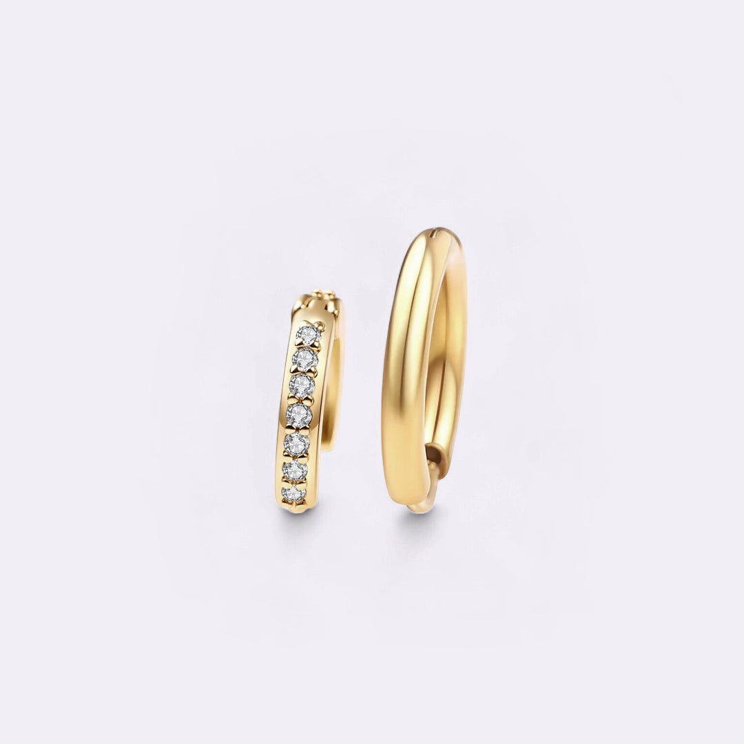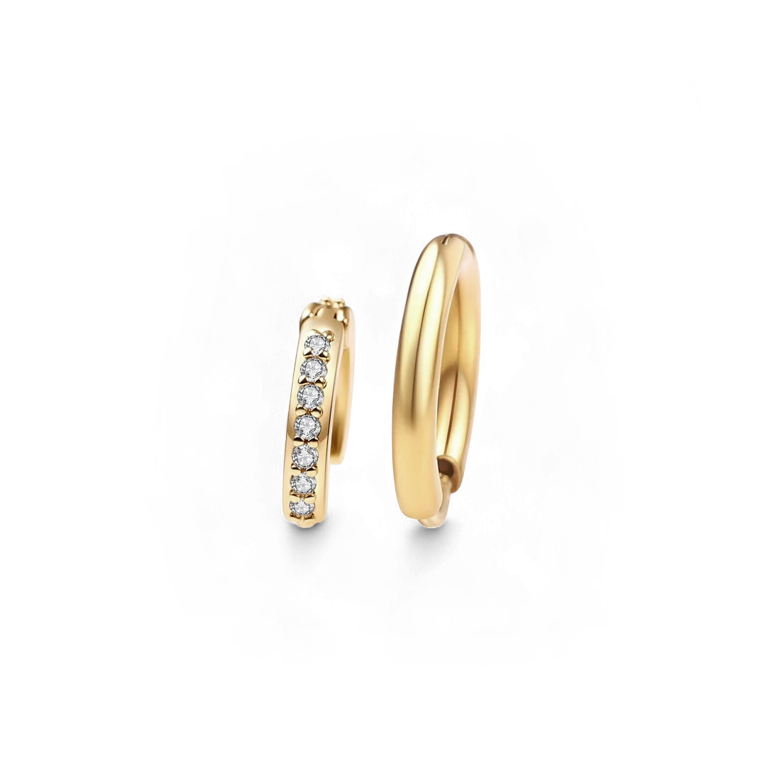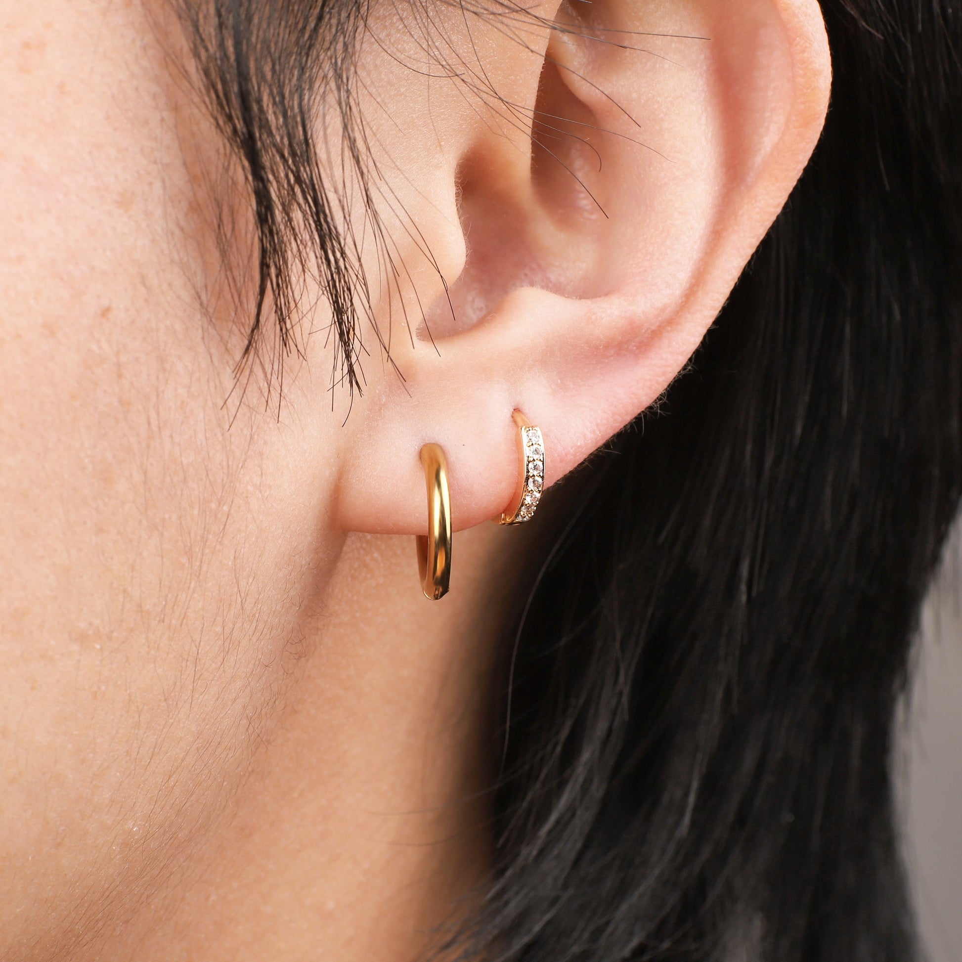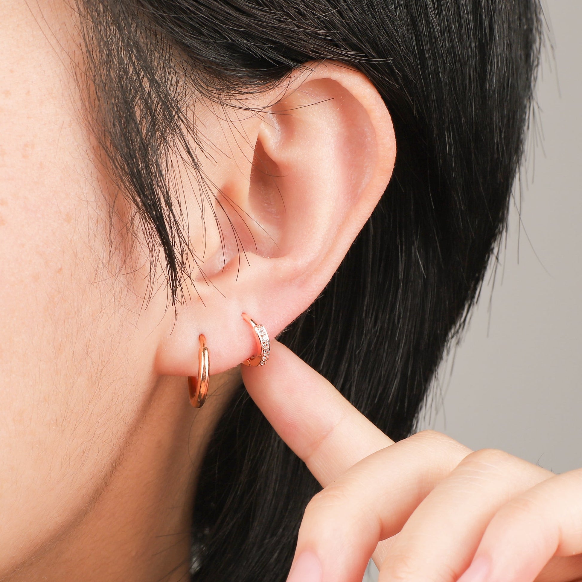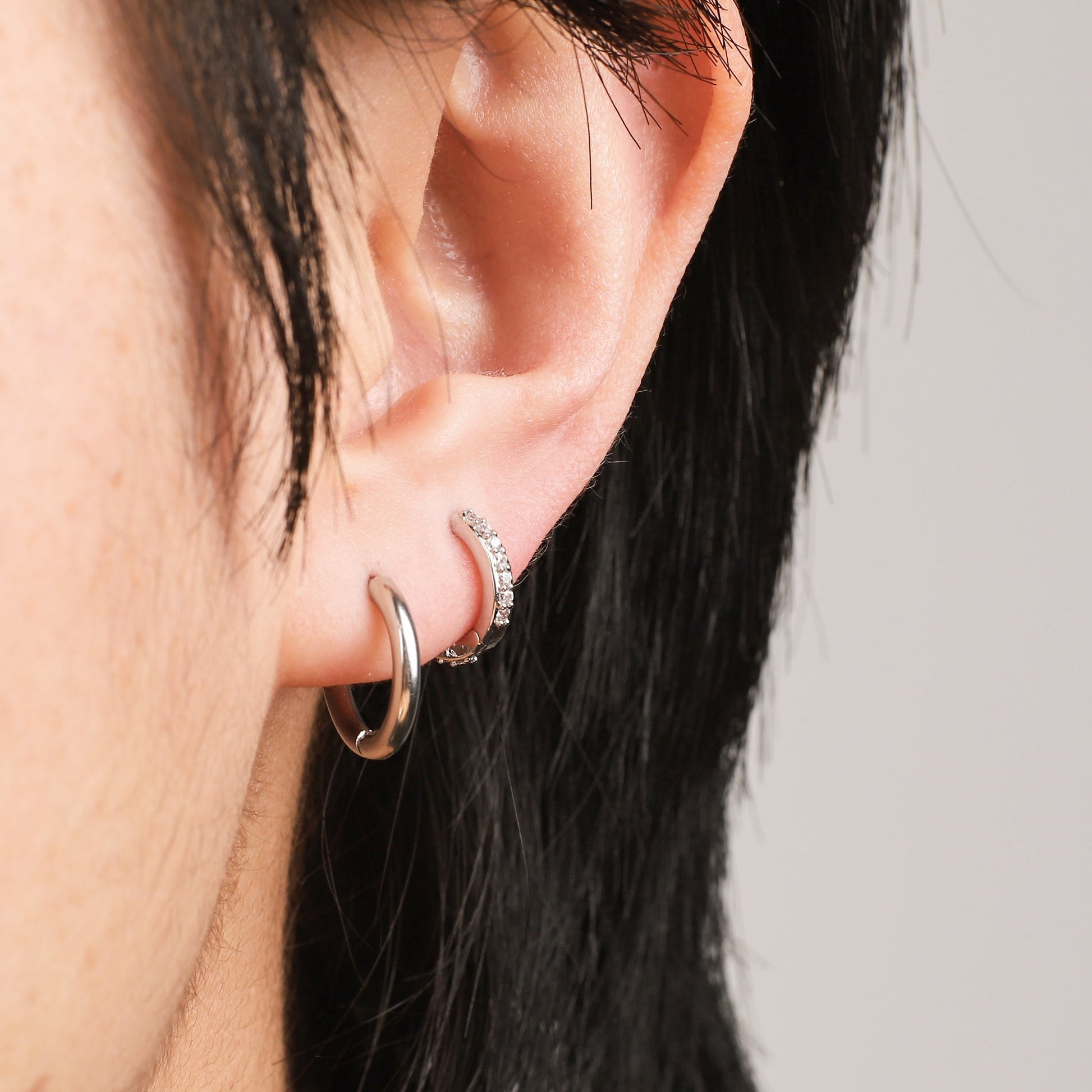 Fancy up your ear party with this dazzling set of Huggies! Elevate your huggies with the 8mm pave huggie hoop and 10mm dainty huggie. Make a statement with sparkles galore! Let your ears do the talking!