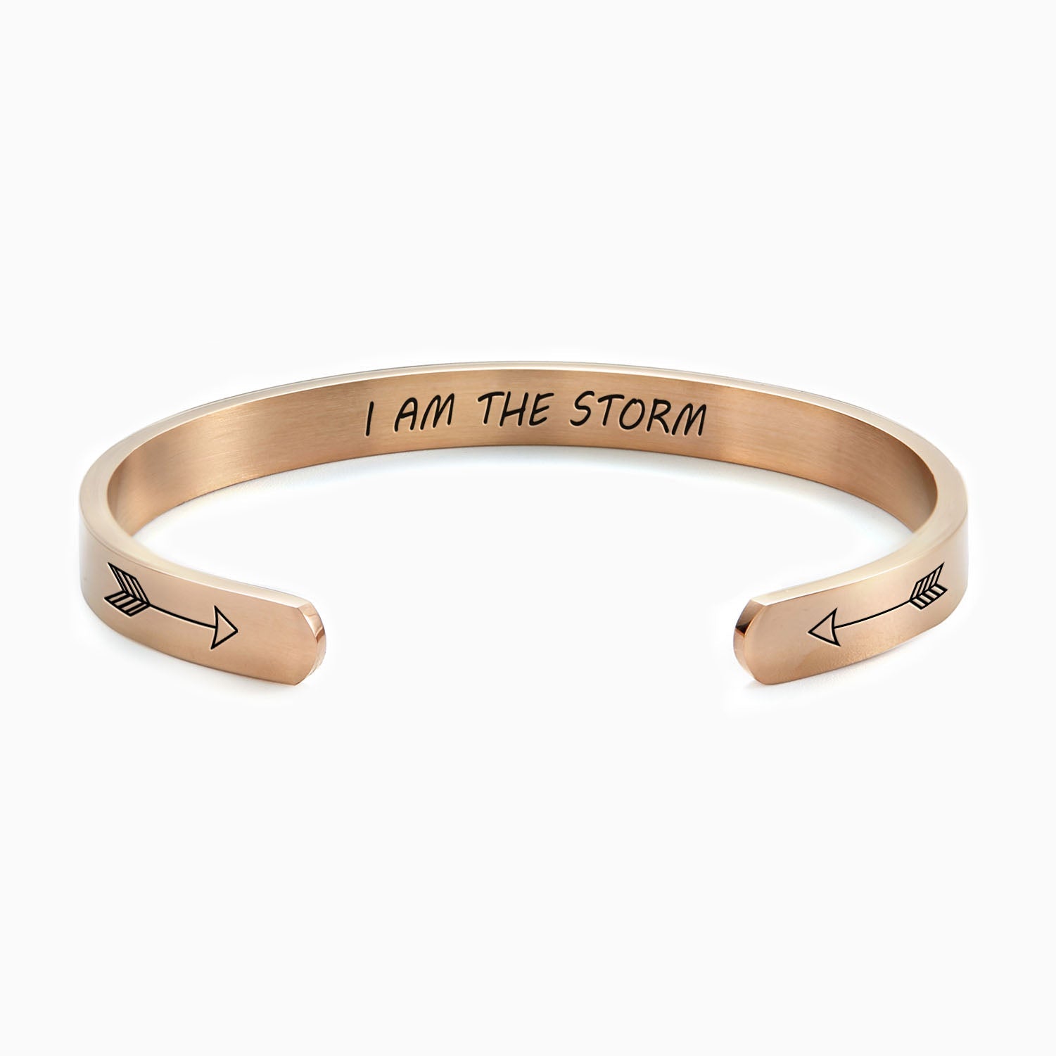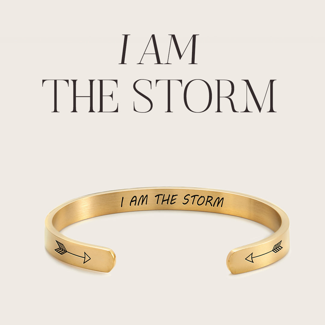 I am the storm. Gift this mantra on a bracelet that inspires and empowers. Carry this daily inspiration everywhere. Silver, gold, and rose gold bracelets suitable for any occasion. Mix and match stackable bangles for a unique style.