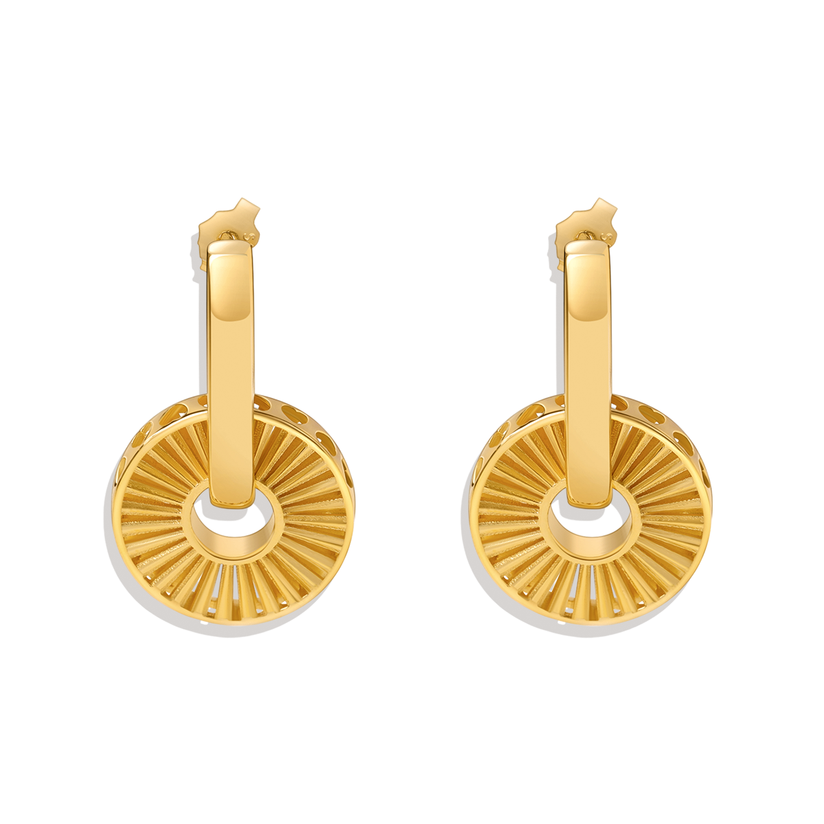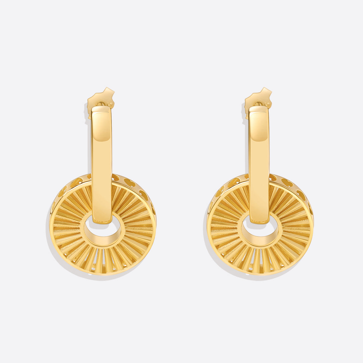Add a touch of elegance to your ensemble with our Burst Drop Earrings, crafted from luxurious gold vermeil. These earrings showcase a radiant design that effortlessly blends classic sophistication with a modern twist, perfect for any occasion.