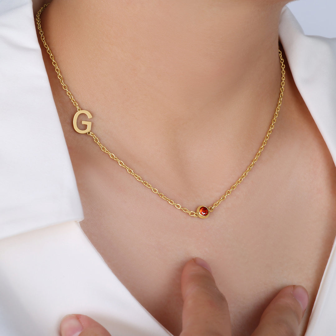 Celebrate your story with this personalized necklace. A dainty initial pairs with a sparkling birthstone, adding a touch of meaning to your everyday look. Perfectly timeless, effortlessly chic, uniquely yours.
