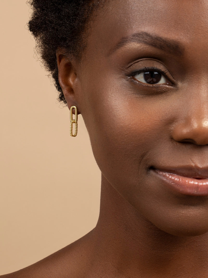 With a mix of smooth and textured links, our Linked Chain Earrings cover all your bases. To really put the focus on these gold chain link earrings, stack them with a pair of simple stud earrings.