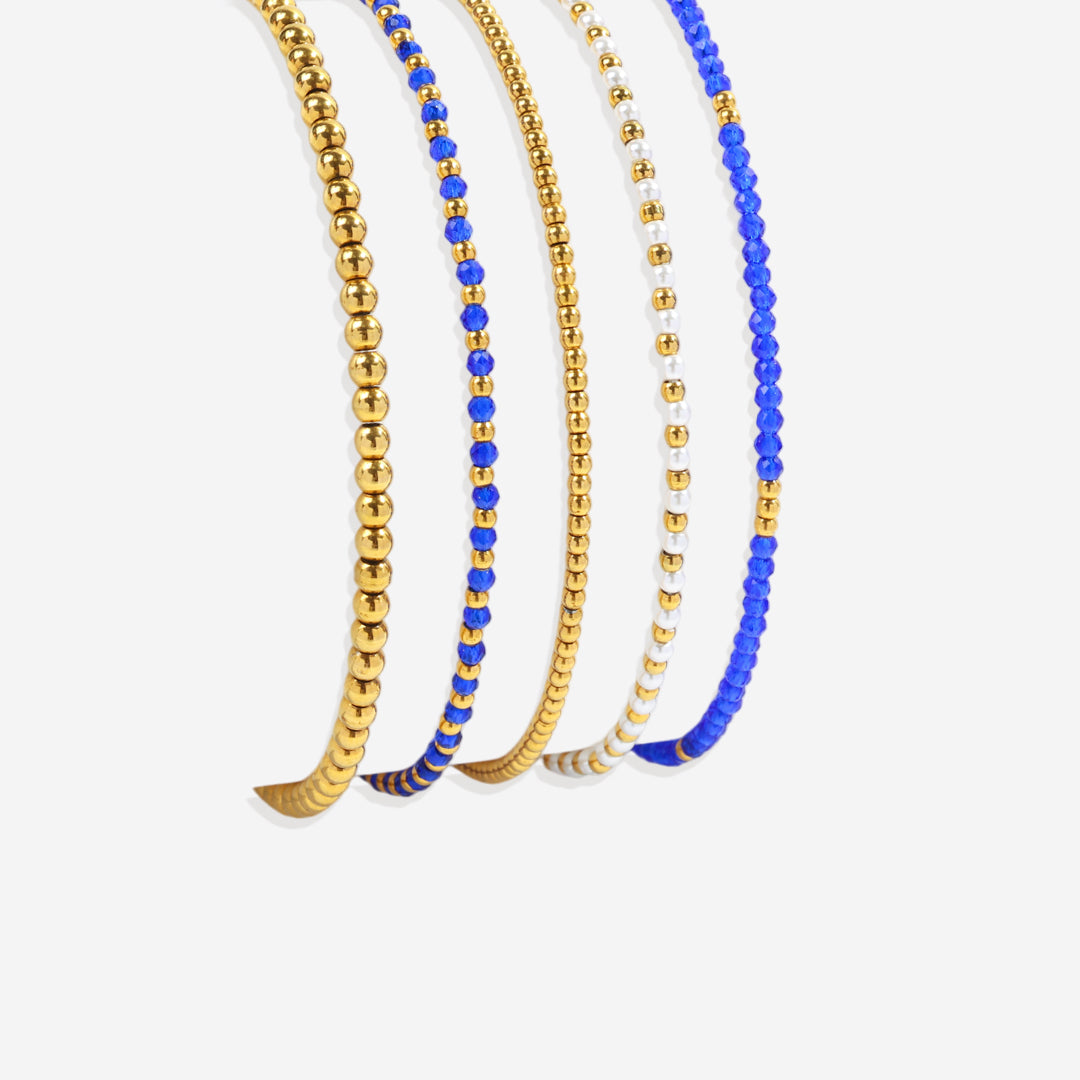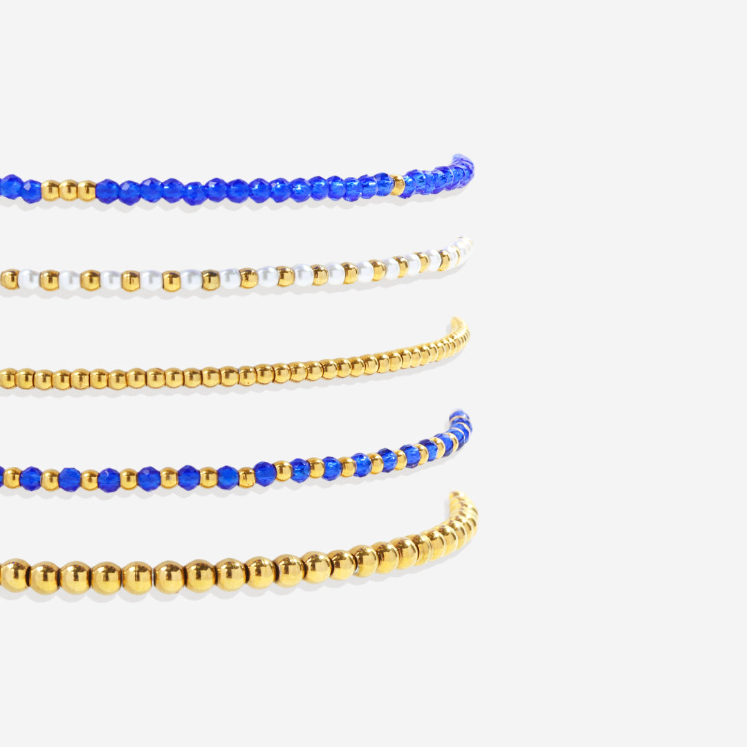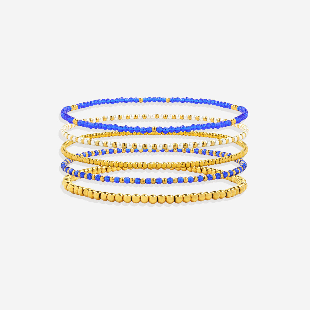 Elevate your wrist game with this London Blue Bracelet Stacking Set. A blend of deep blue hues and sleek design, it adds a sophisticated pop of color. Perfect for stacking or wearing solo. Effortlessly stylish.