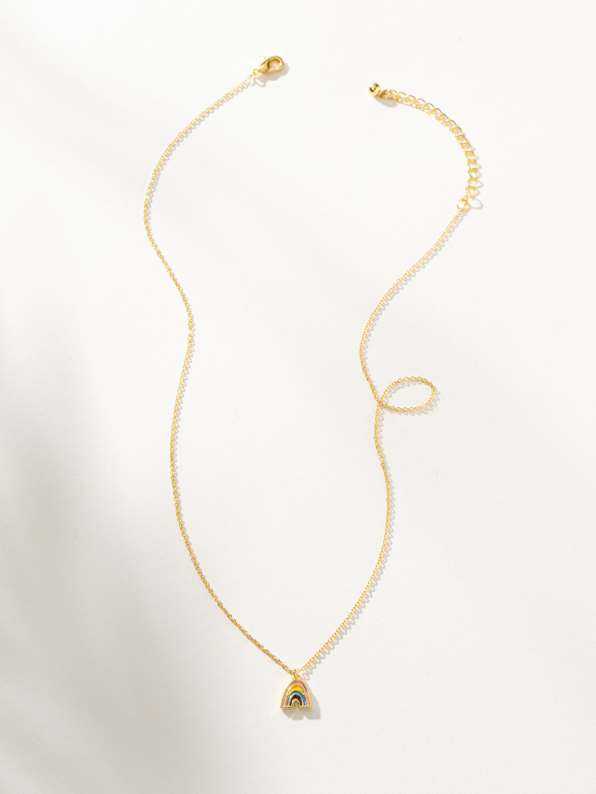 Add a little pop of color to your look with our Mini Rainbow Pendant Necklace. Crafted from a dainty gold chain and a colorful rainbow pendant, this will be the perfect addition to your stack. Did we mention it’ll also pull together your other go-to colorful jewelry styles?