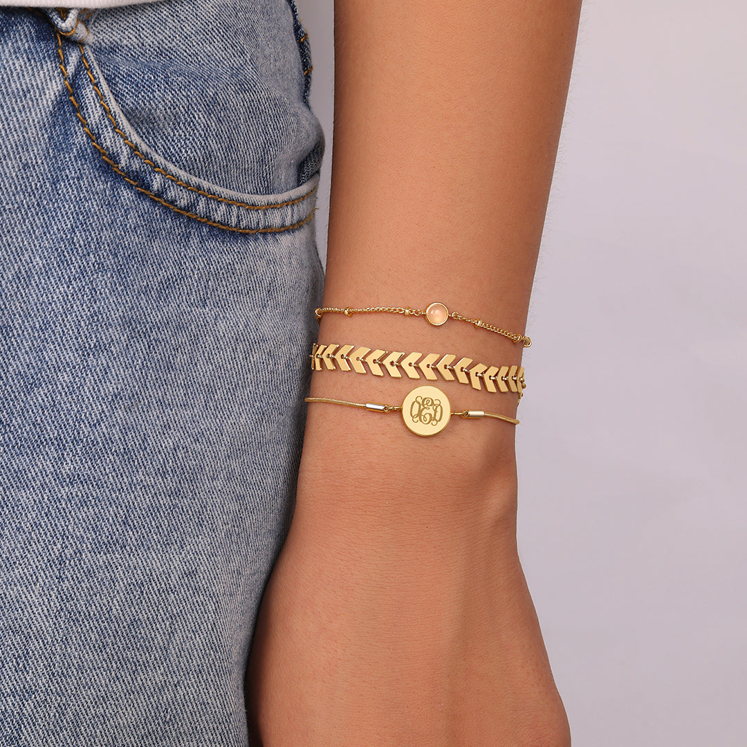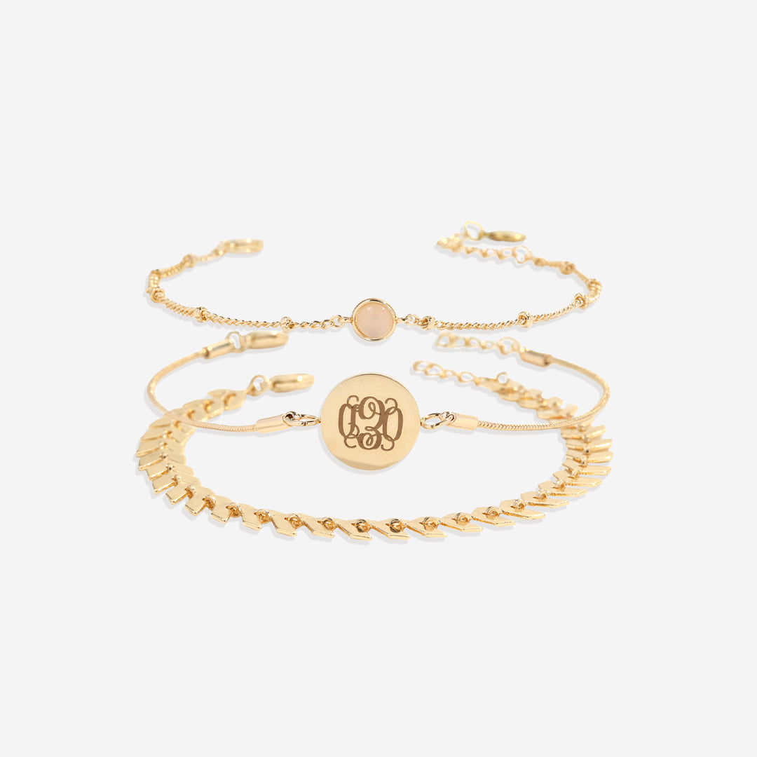 Effortlessly stylish, the Monogram Bracelet Set features sleek, stackable designs personalized with your initials. Perfect for layering or wearing alone, this set adds a touch of timeless charm to any look.