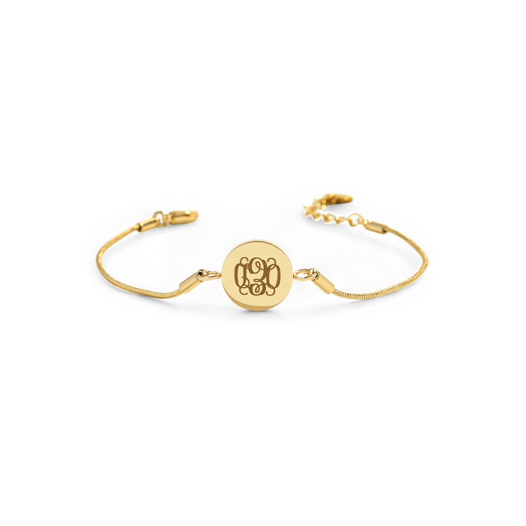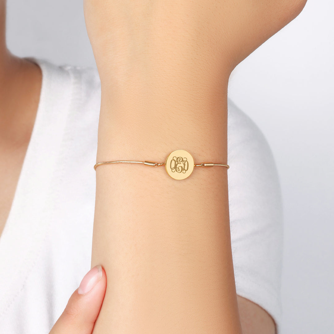 Simple yet elegant, the Monogram Initial Disc Bracelet features a sleek disc engraved with your initial. Perfect for everyday wear, it’s a timeless piece that adds a personal touch to any outfit.