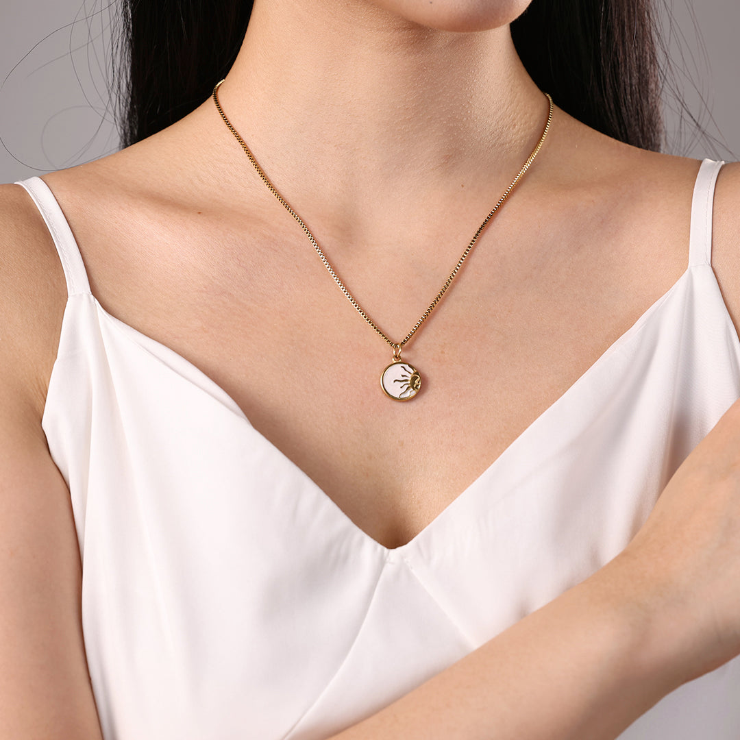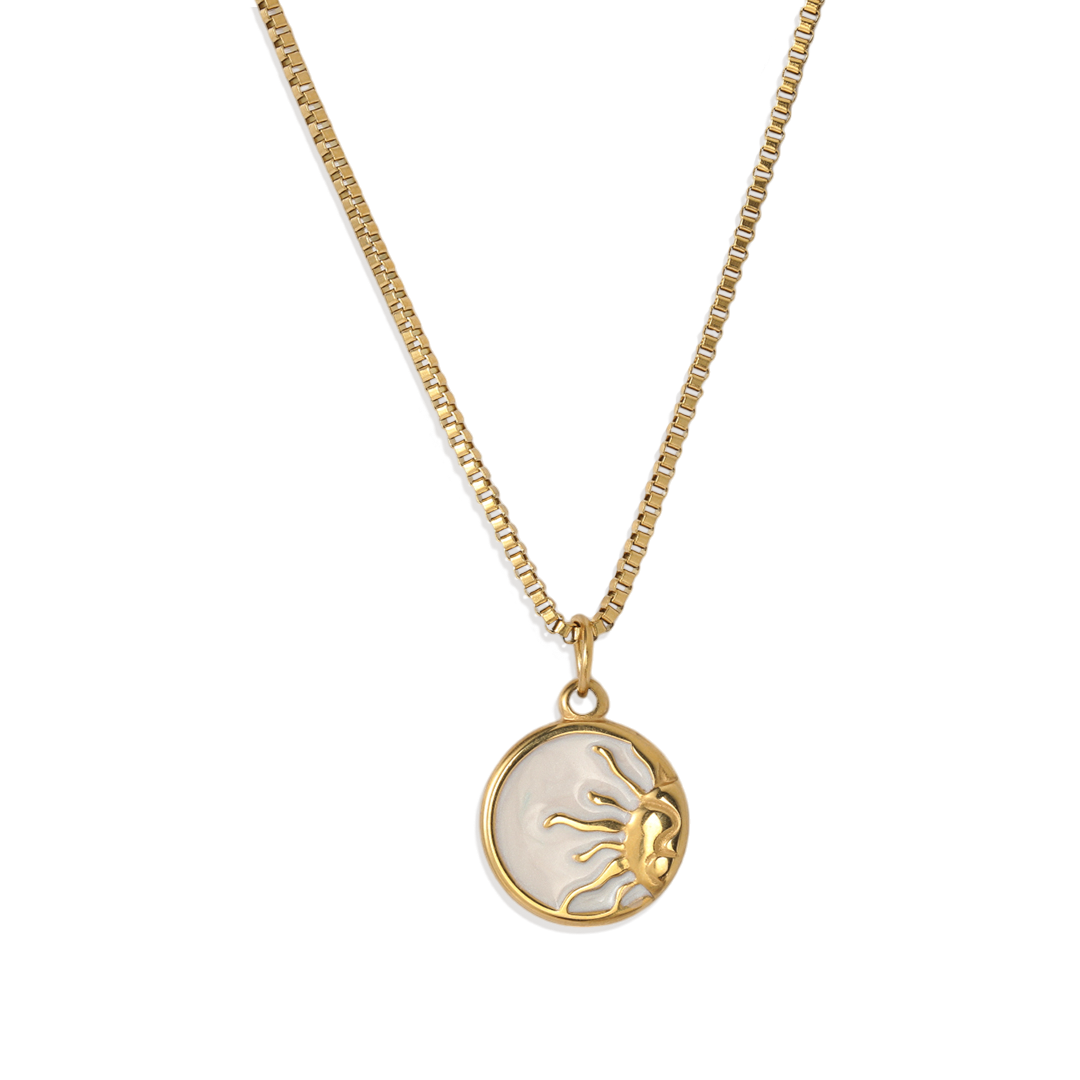 Suspended from a delicate chain, this necklace is perfect for layering or wearing alone as a statement piece. Ideal for everyday wear or special occasions, the Enamel Sun Pendant Necklace beautifully combines natural beauty with timeless design, making it a cherished addition to your jewelry collection.