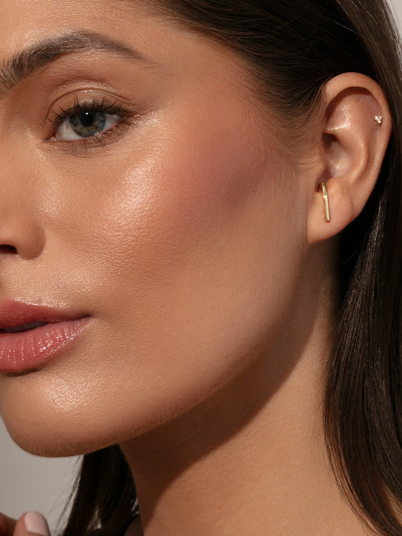 Our Open Bar Ear Climber is a simple, post-back stud earring that hooks your inner ear for an edgy touch. These unique suspenders are the perfect earrings for all your late night plans that may include a drink or two.
