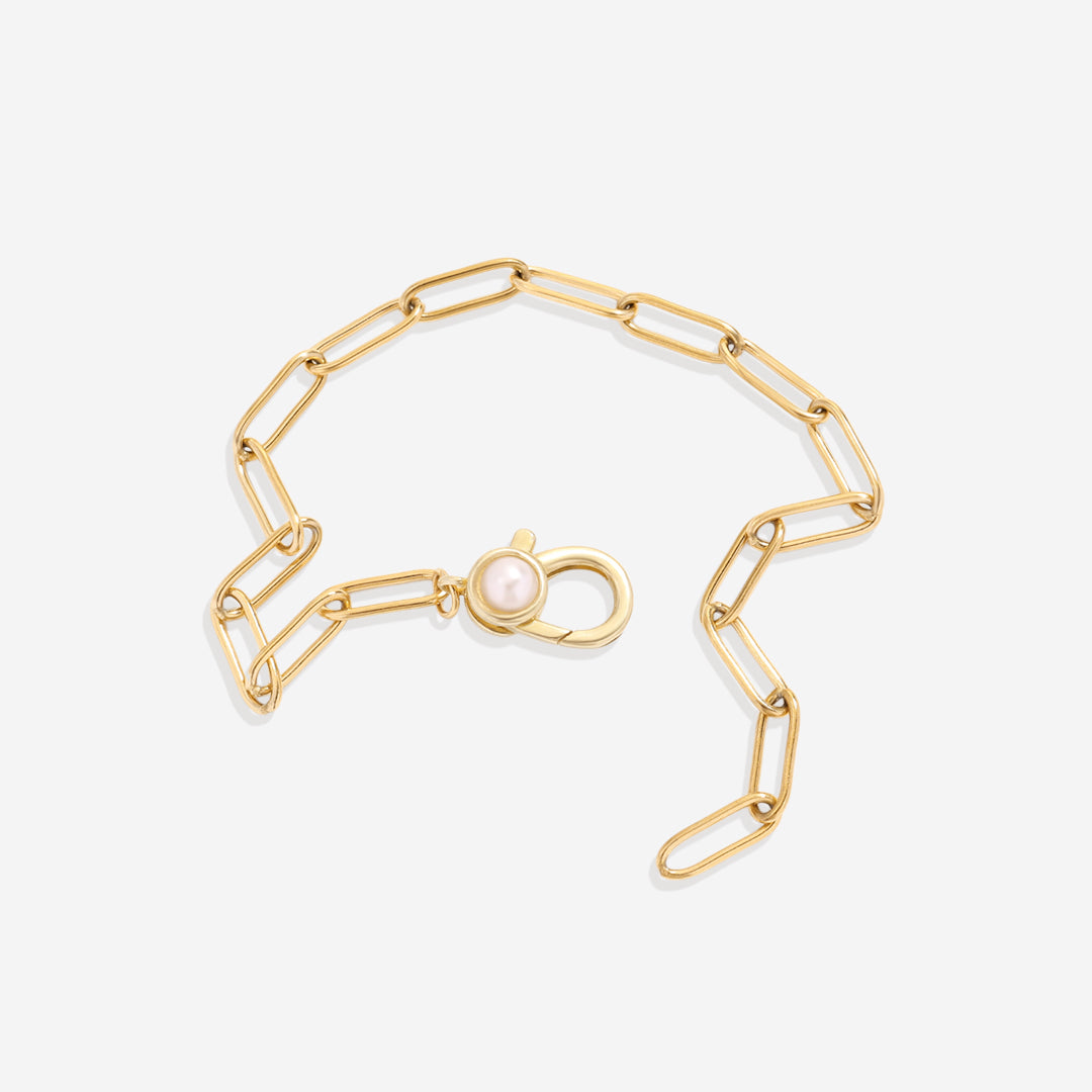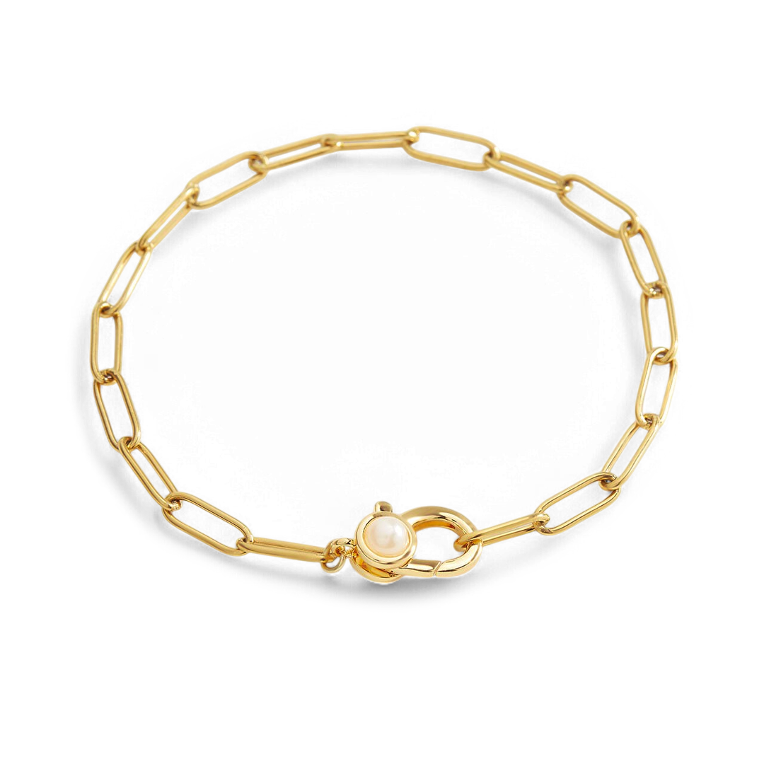 Modern meets timeless. The Paperclip Bracelet with Pearl Accent combines sleek links with a touch of elegance, perfect for elevating any outfit. Sophisticated alone or stacked for extra style.