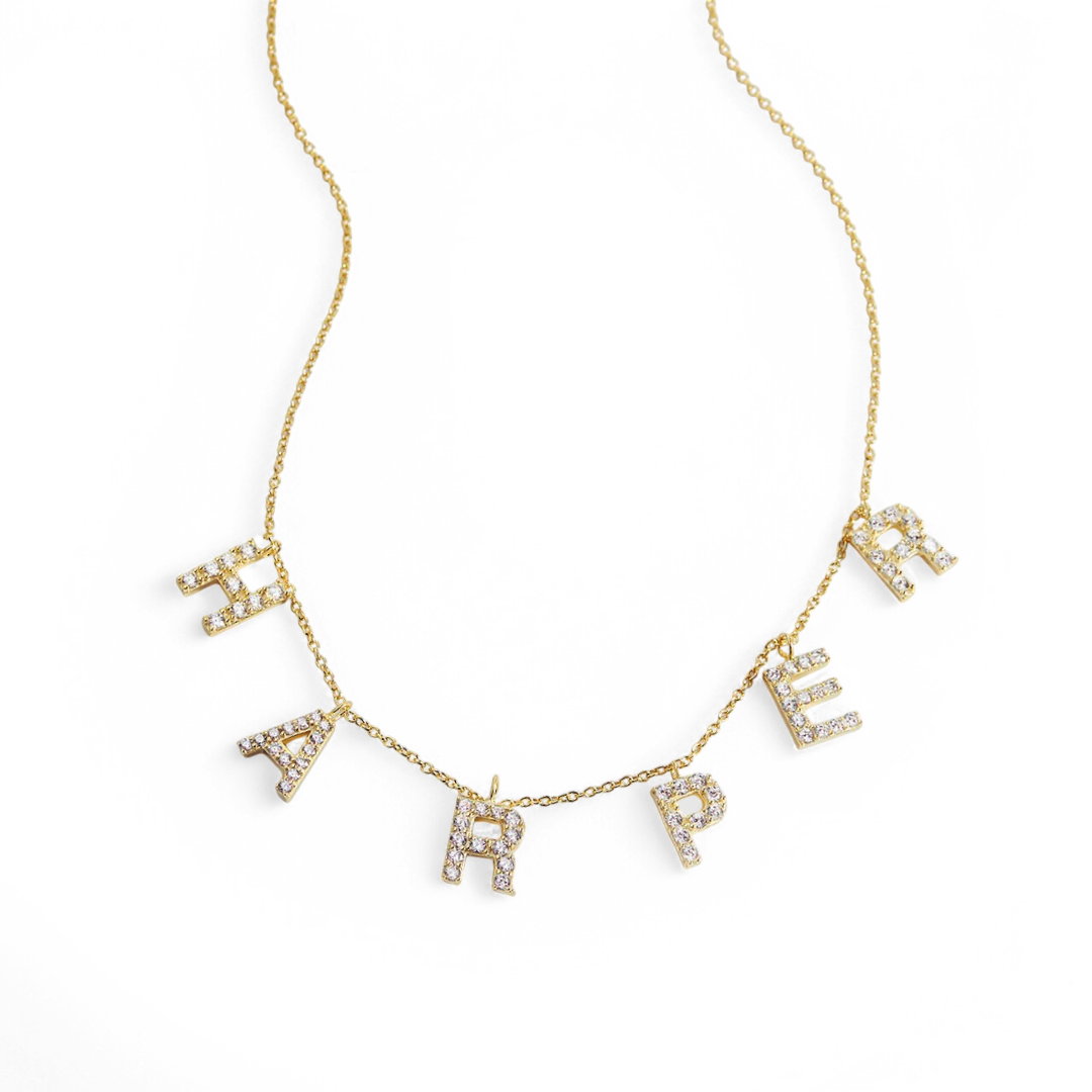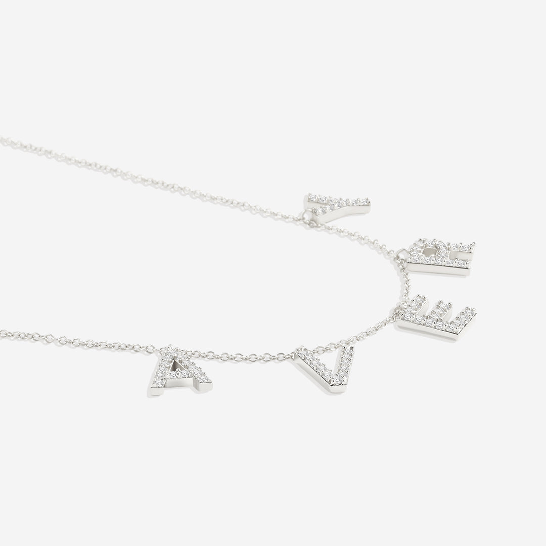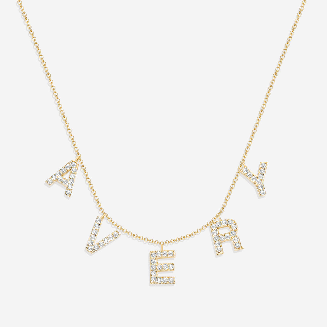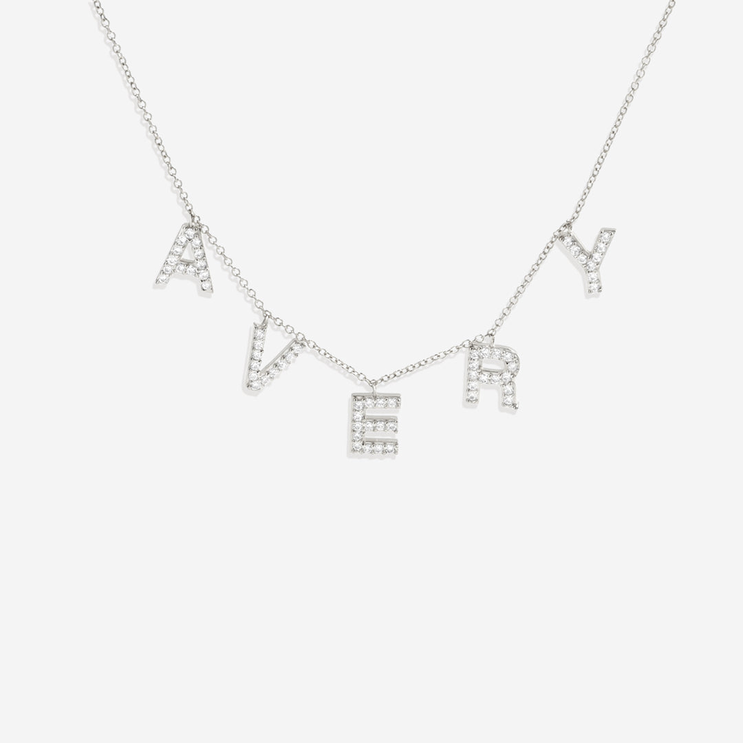 Make it personal with the Pave Block Letter Name Necklace. Sparkling and chic, this piece adds a touch of glamour to your everyday style. A bold way to wear your name with pride.