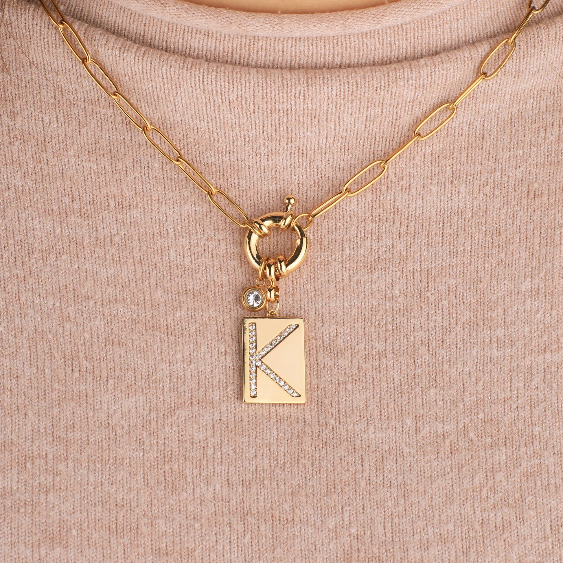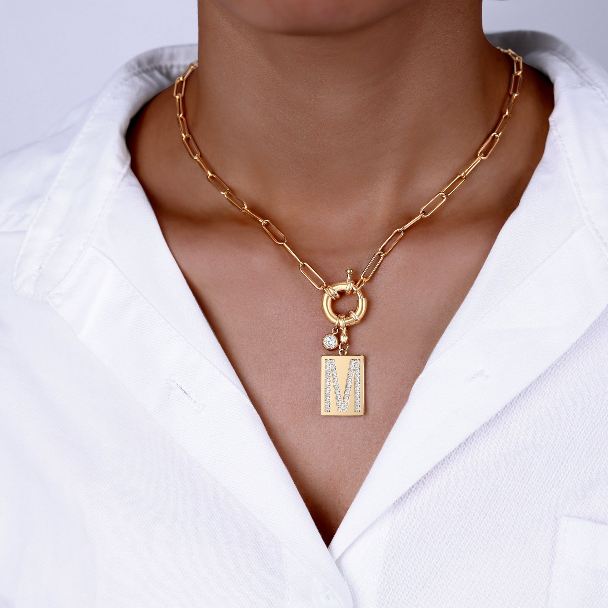 A personalized touch with a modern edge. This pave initial pendant sparkles against a sleek paperclip chain, creating a perfect blend of elegance and trend. Layer it or wear solo for standout style.