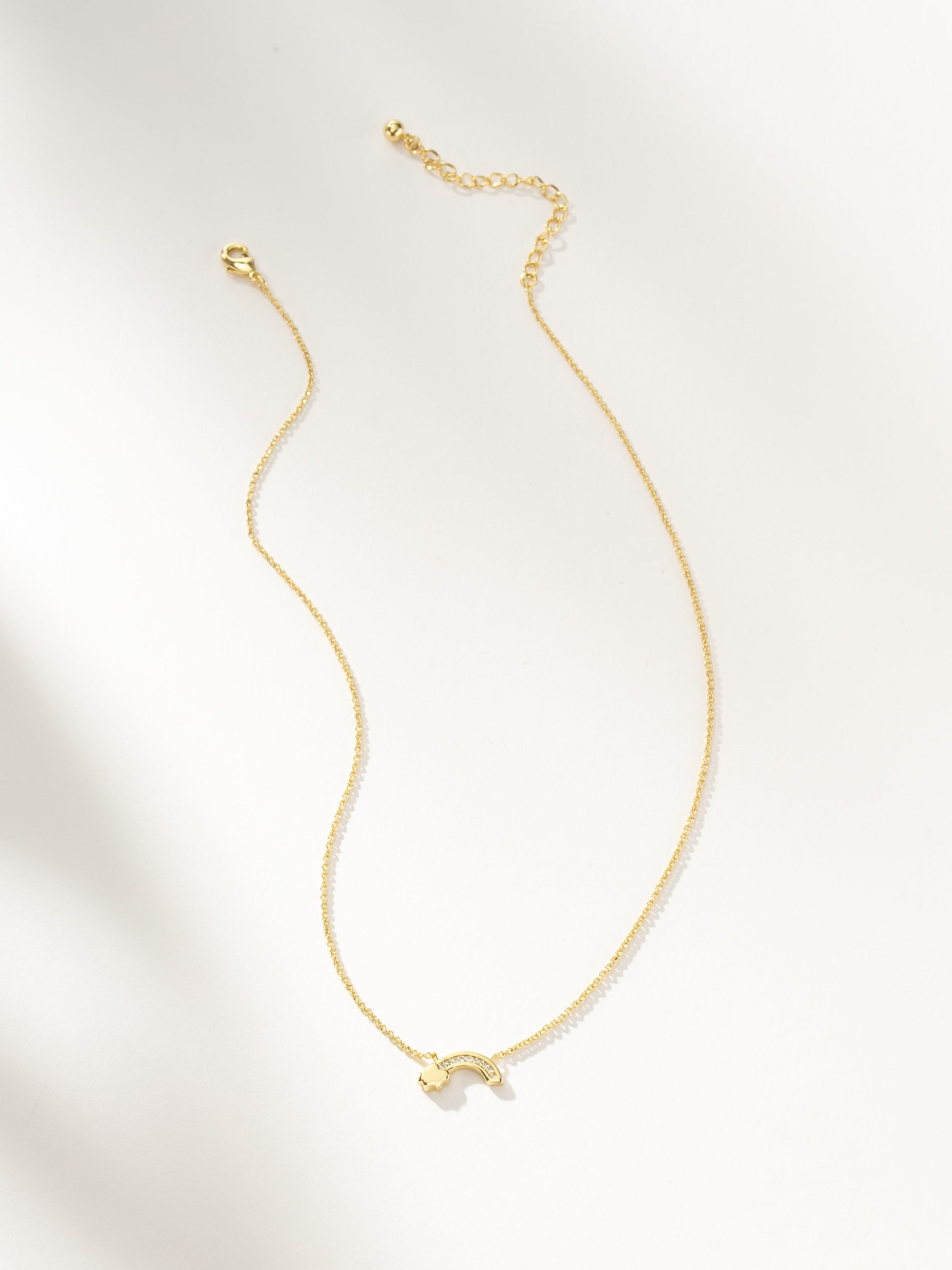 Our Rainbow Necklace is your next stacking essential. This gold necklace features a shimmery rainbow pendant, making it the perfect addition to your everyday look. It pairs perfectly with every chain necklace in your collection, but don’t just take our word for it —find out for yourself.