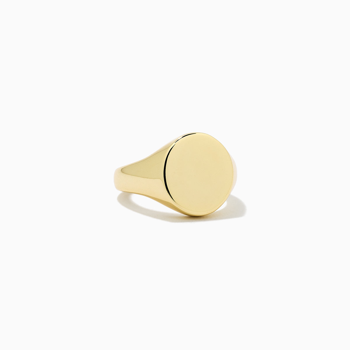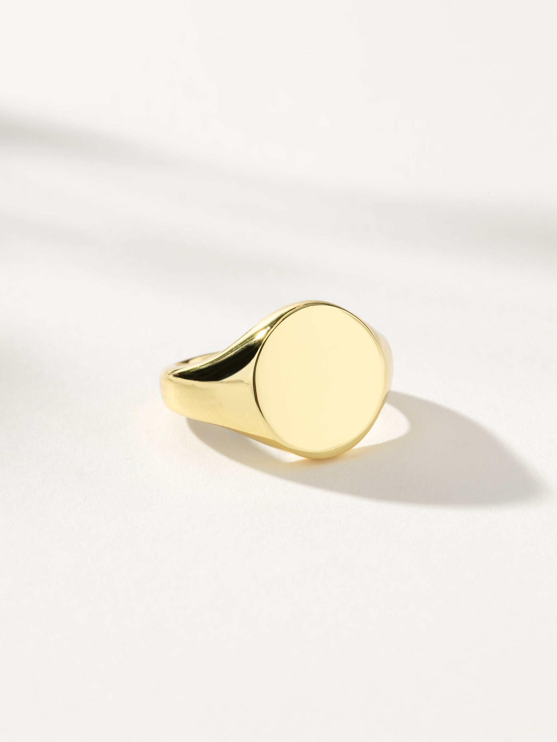 Make this classic gold Signet Ring your own when you have it engraved. This timeless design will mean even more to you when you add a personalized engraving on the center. This engravable ring can fit up to one character or a three letter monogram.