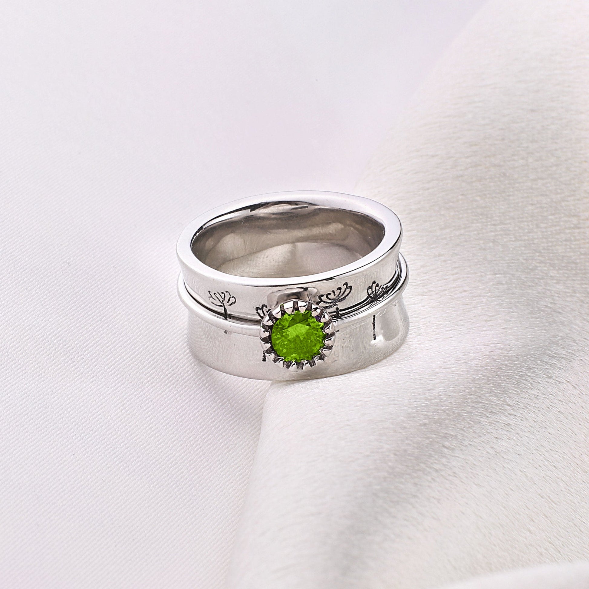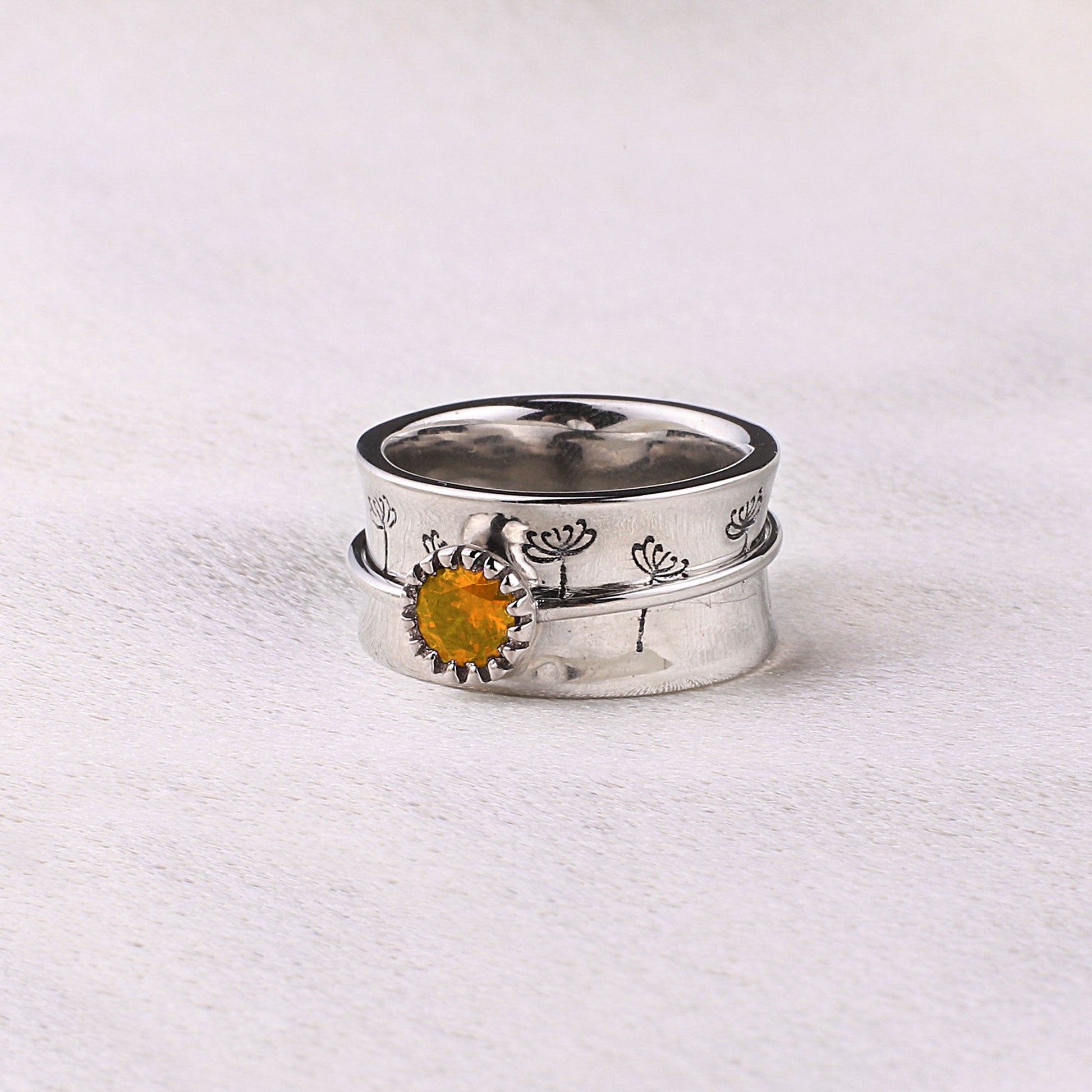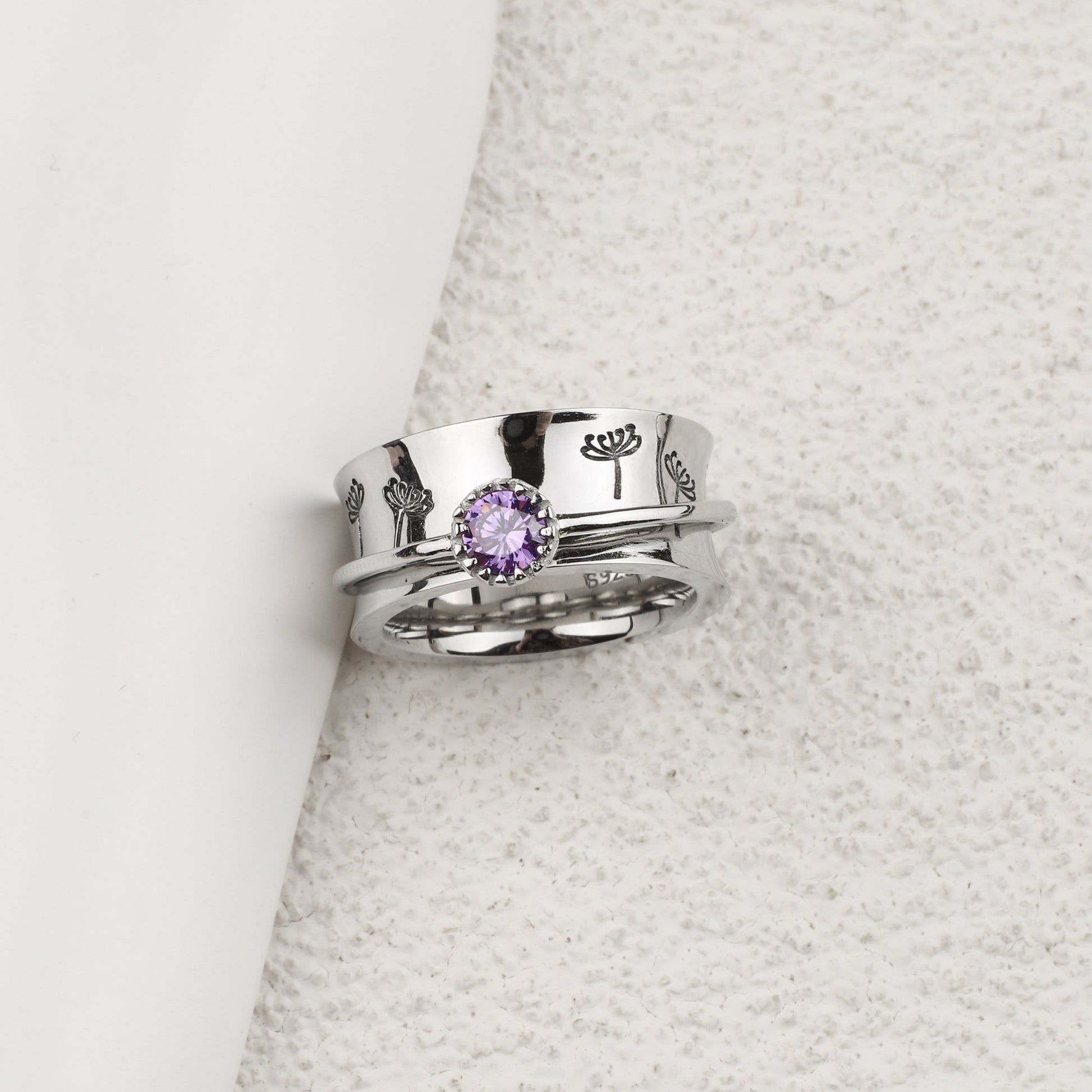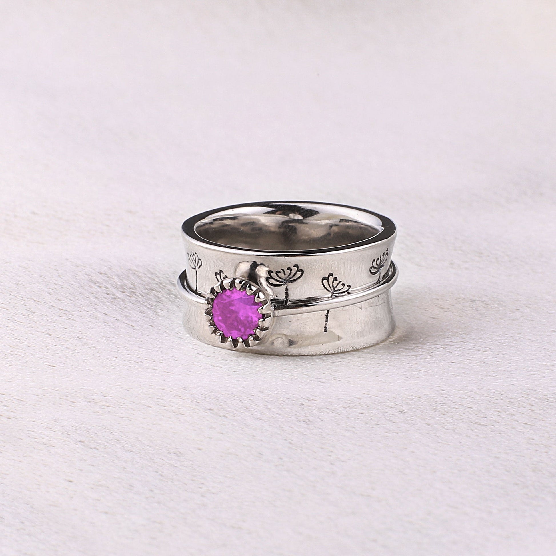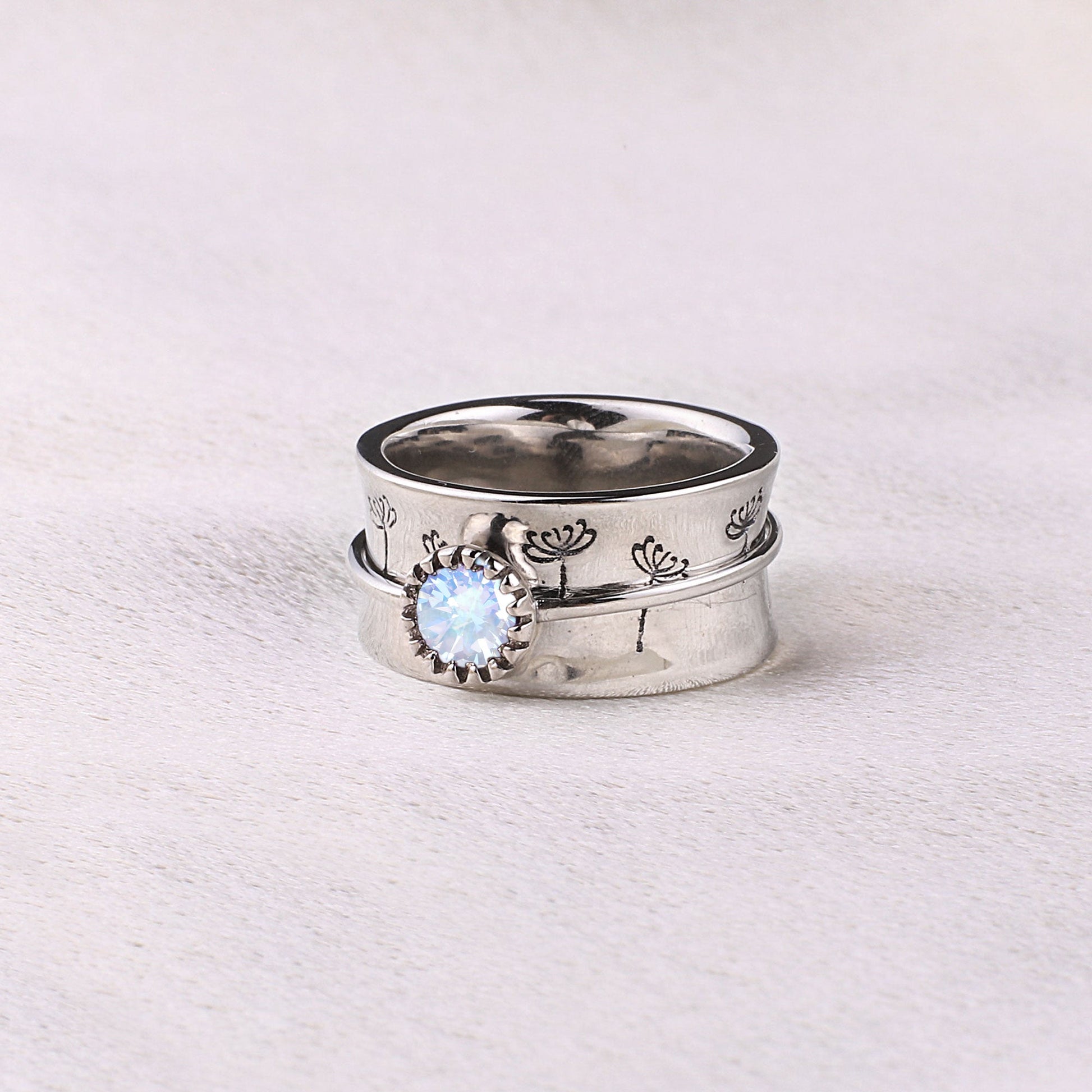 Silver Dandelion Birthstone Spinning Fidget Ring