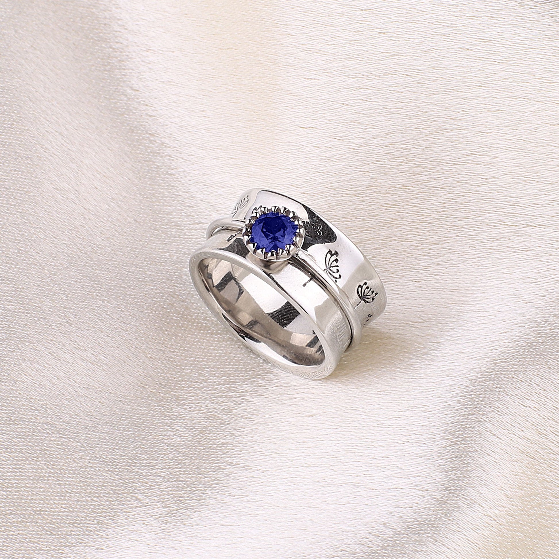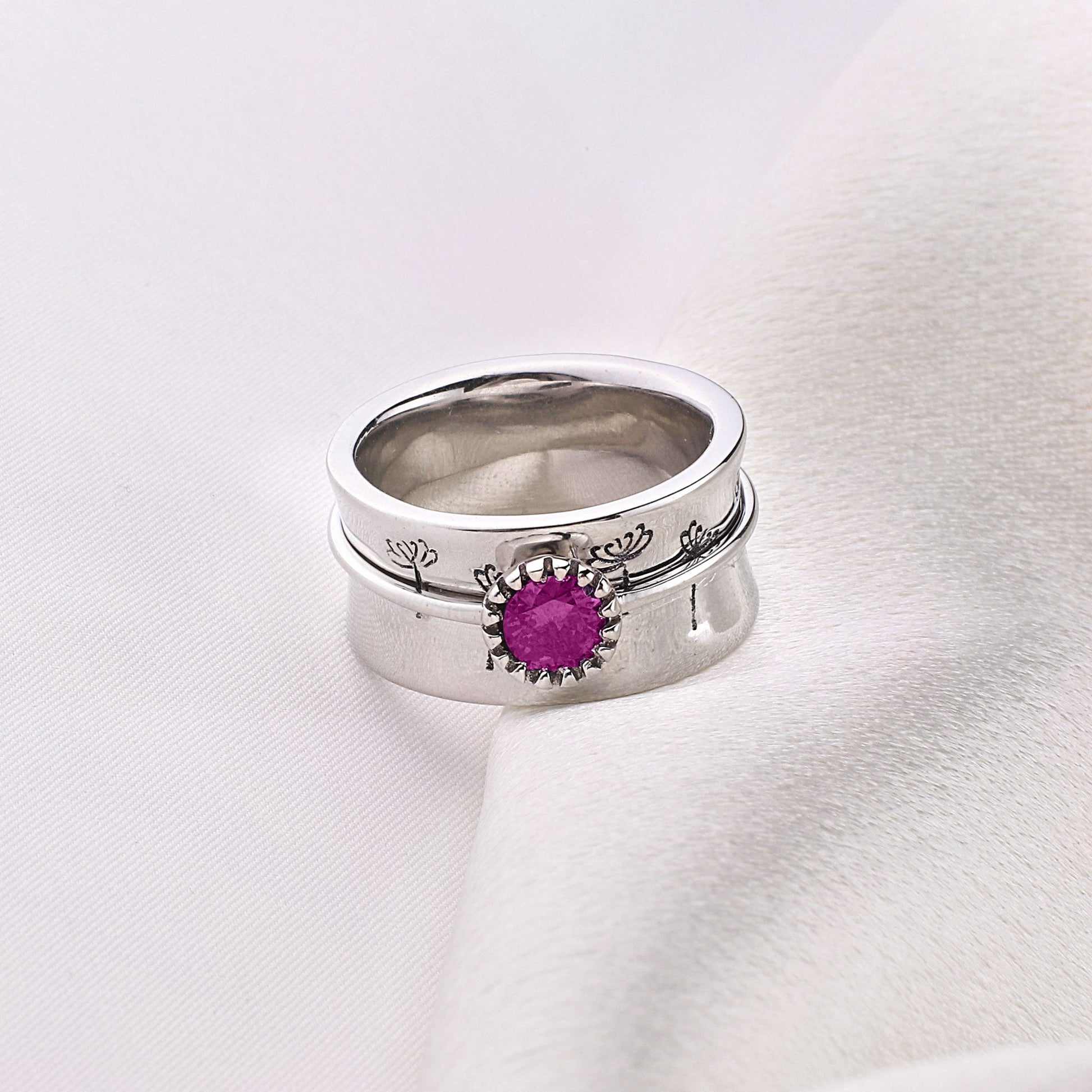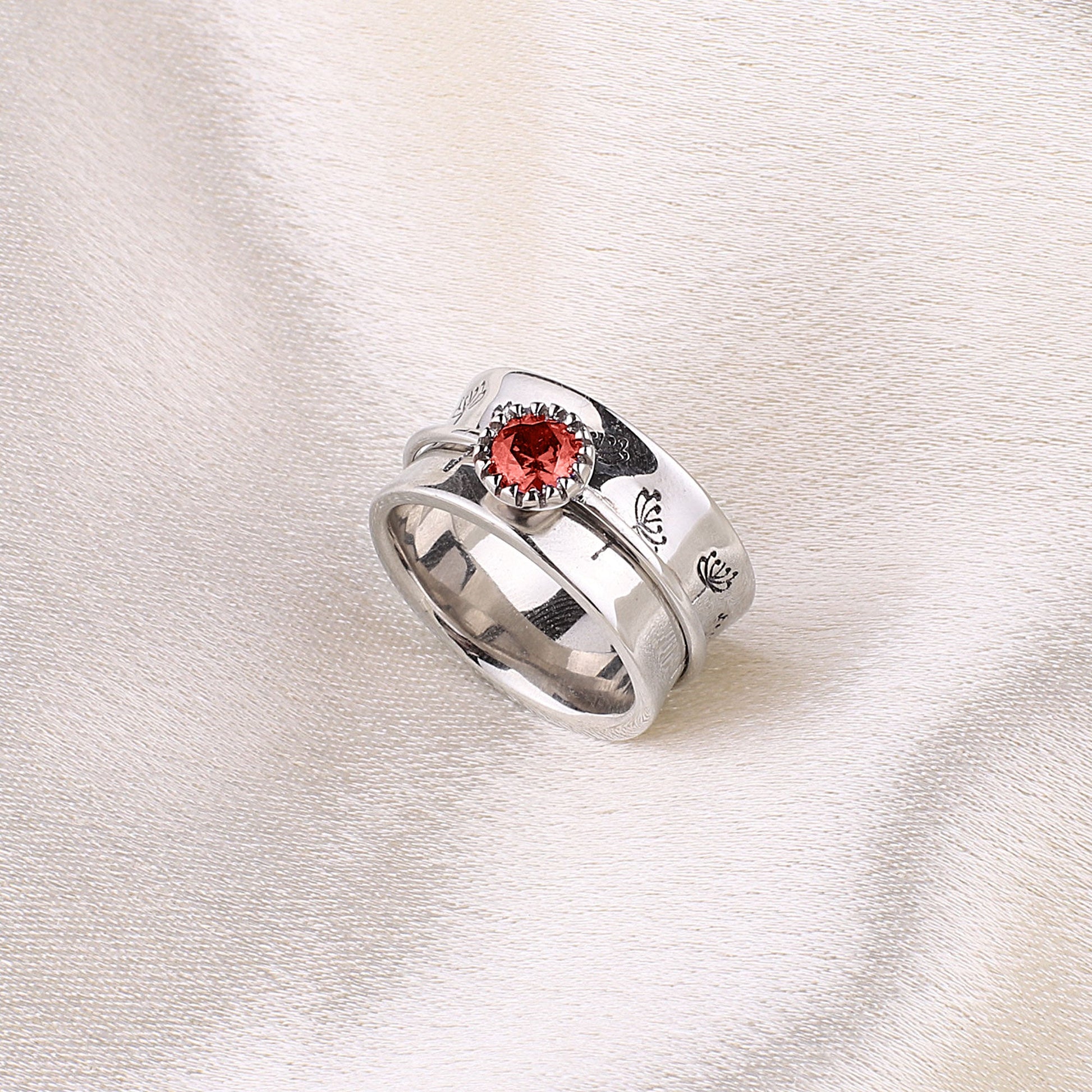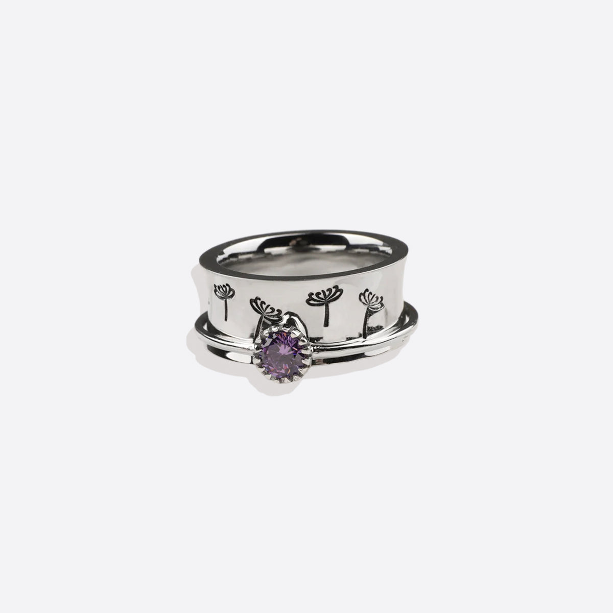 Silver Dandelion Birthstone Spinning Fidget Ring