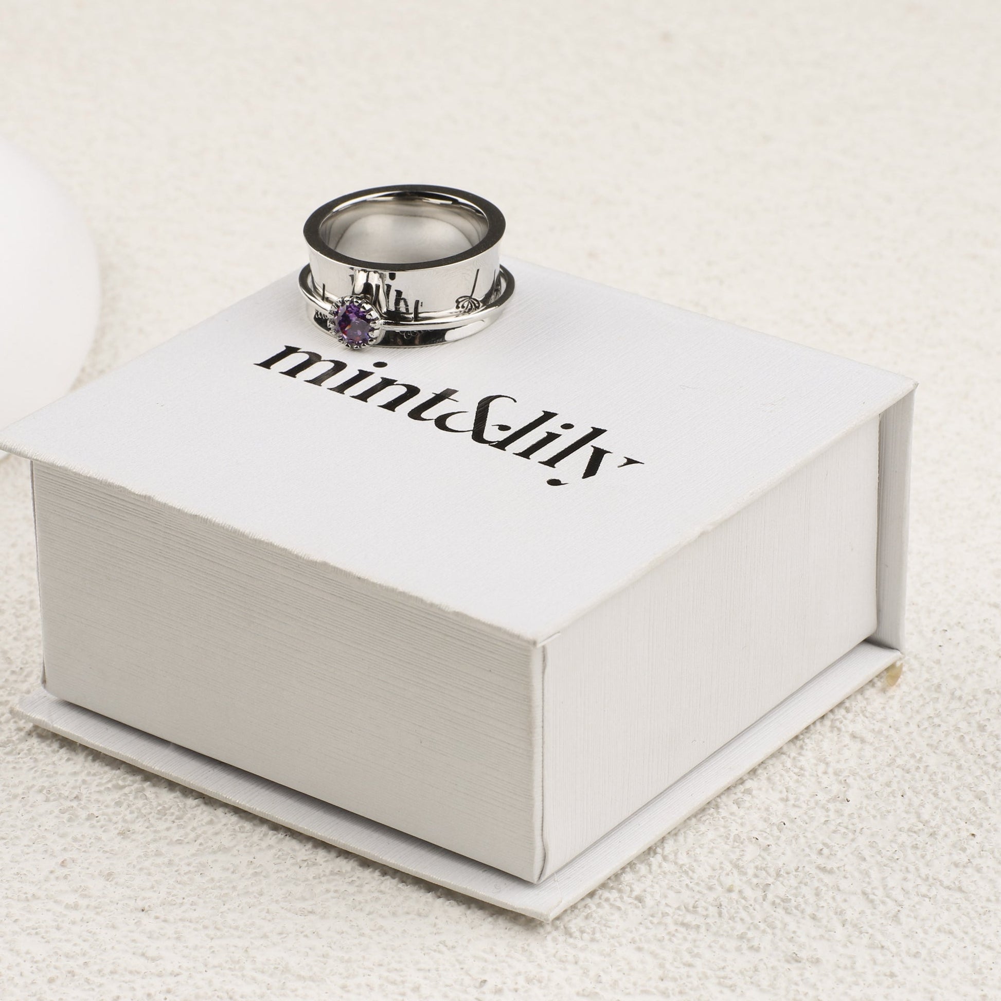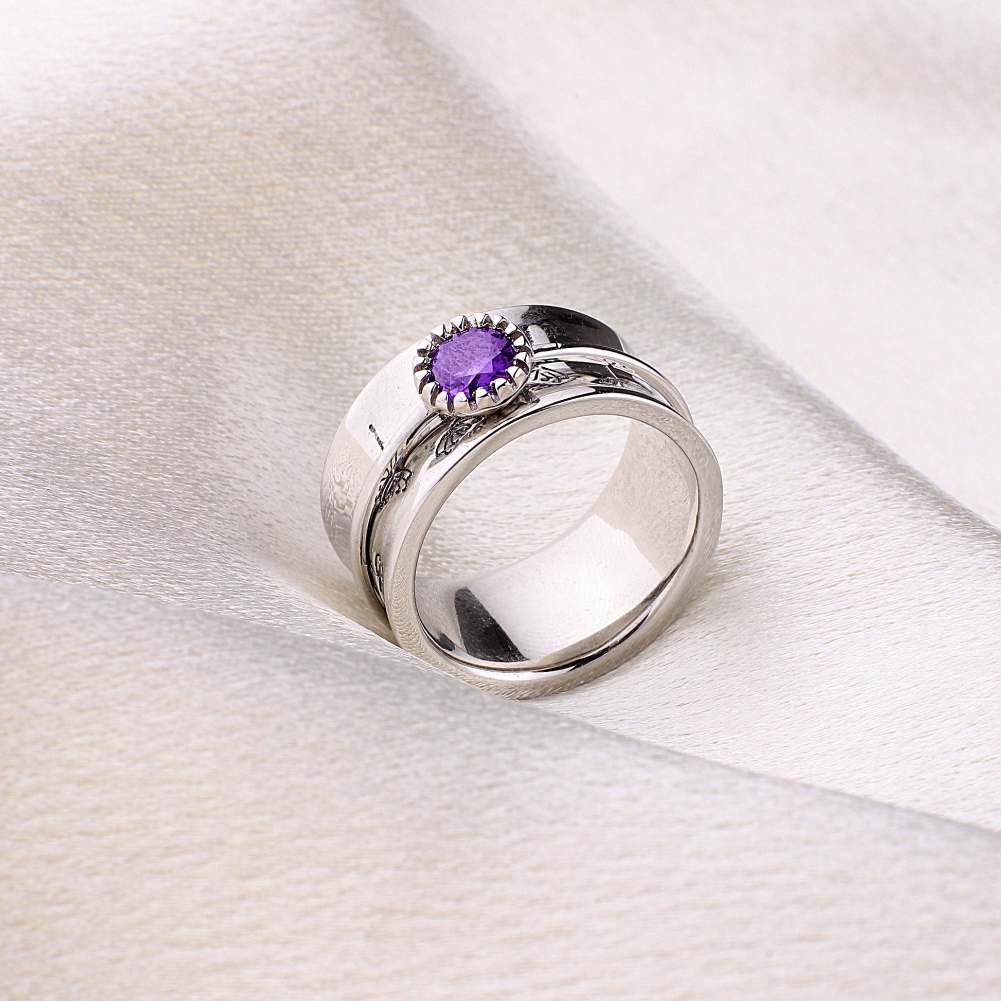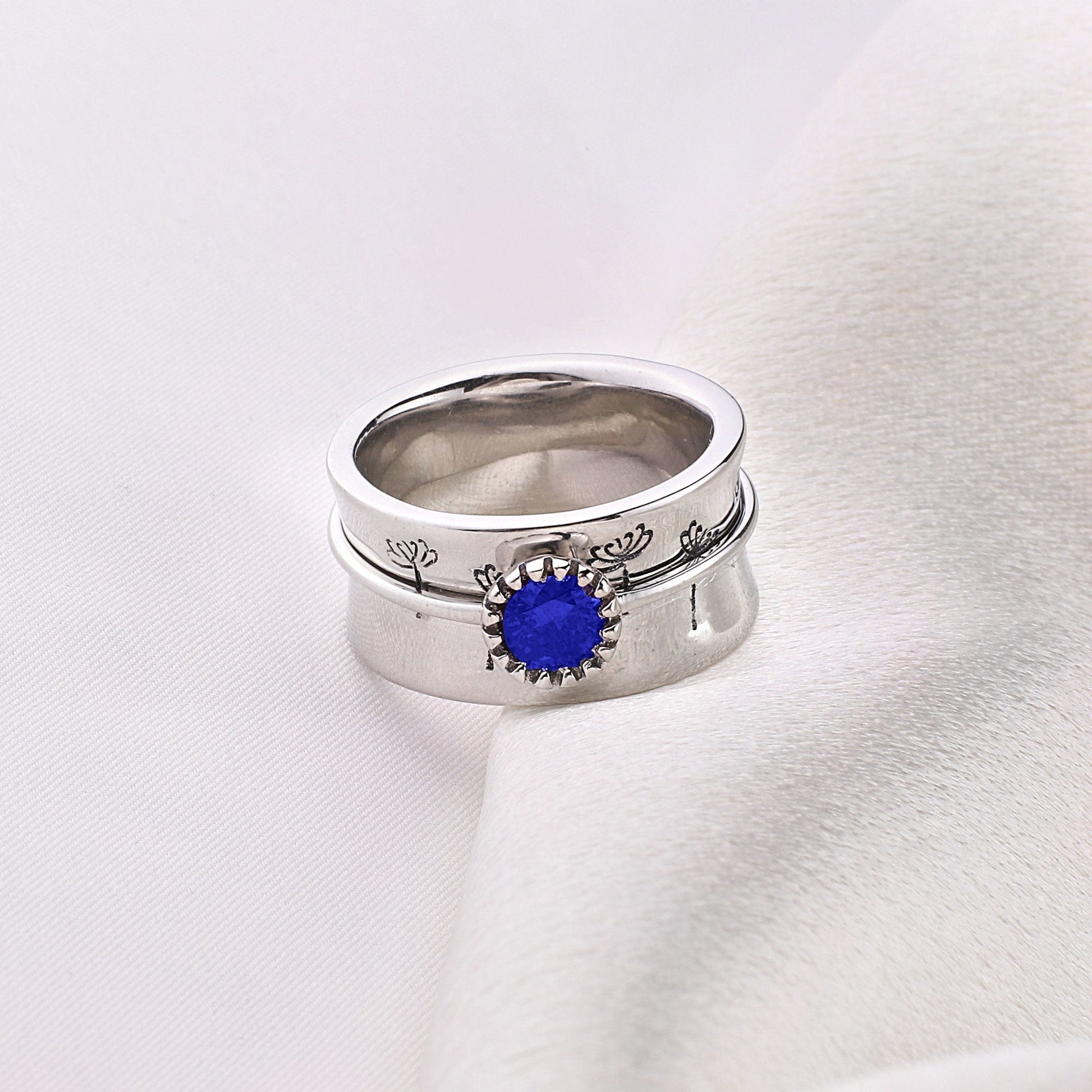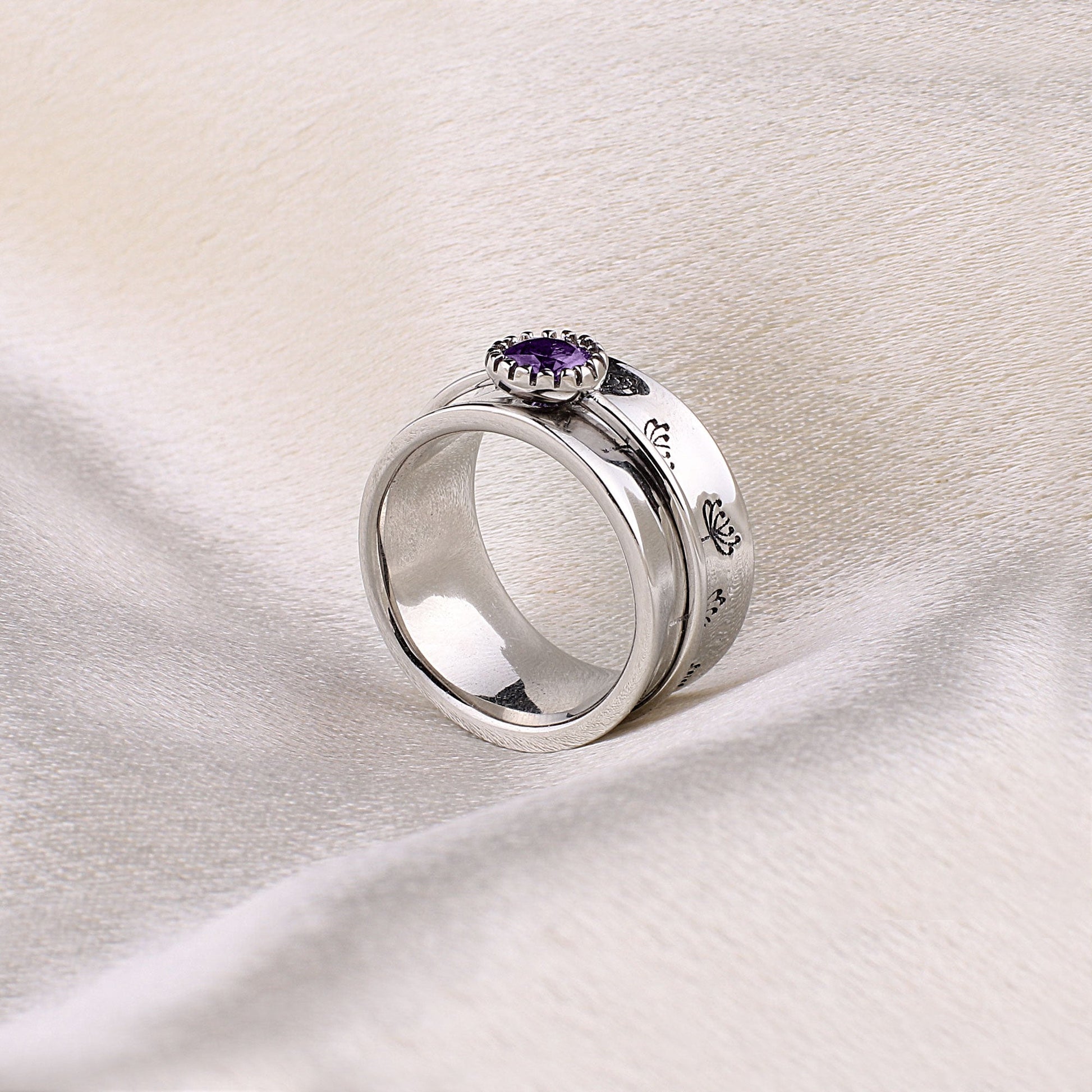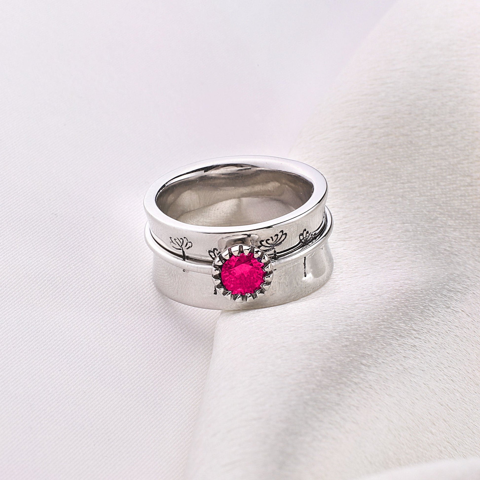Silver Dandelion Birthstone Spinning Fidget Ring