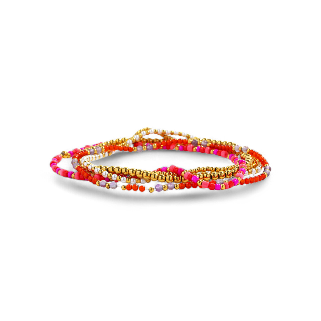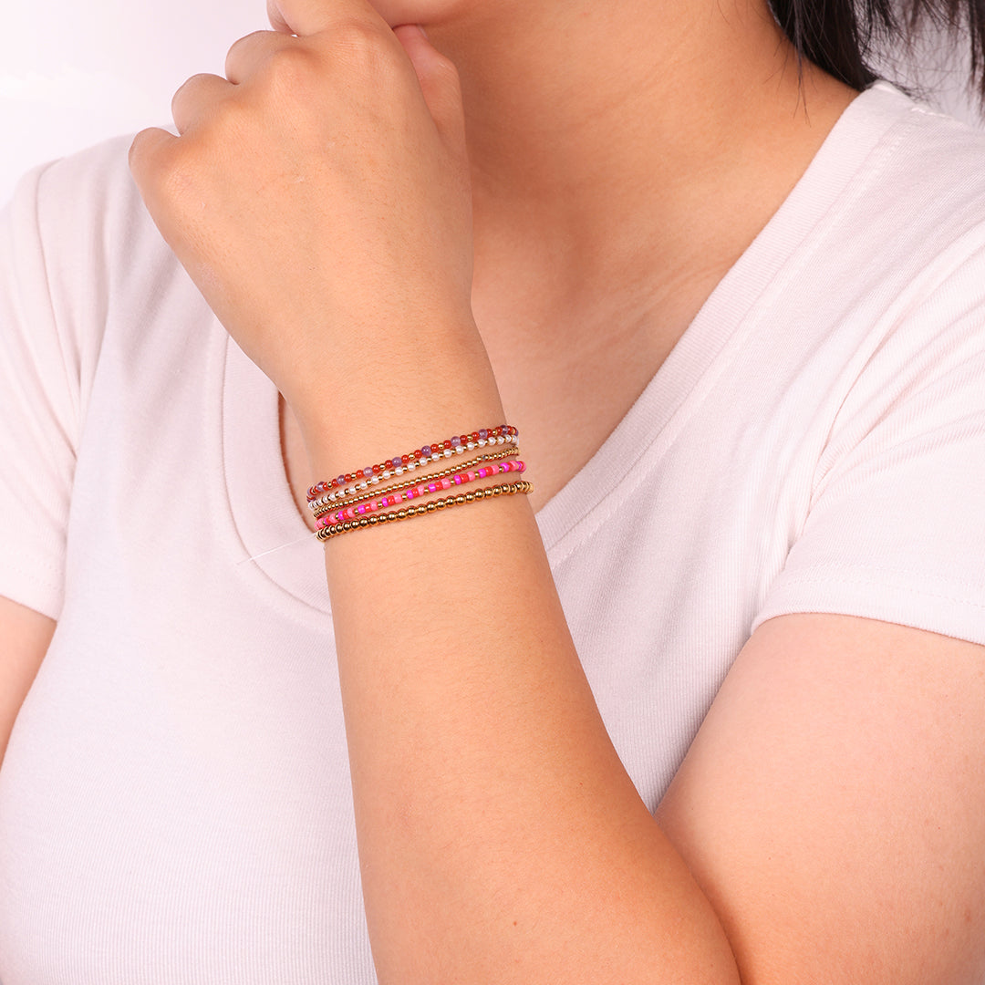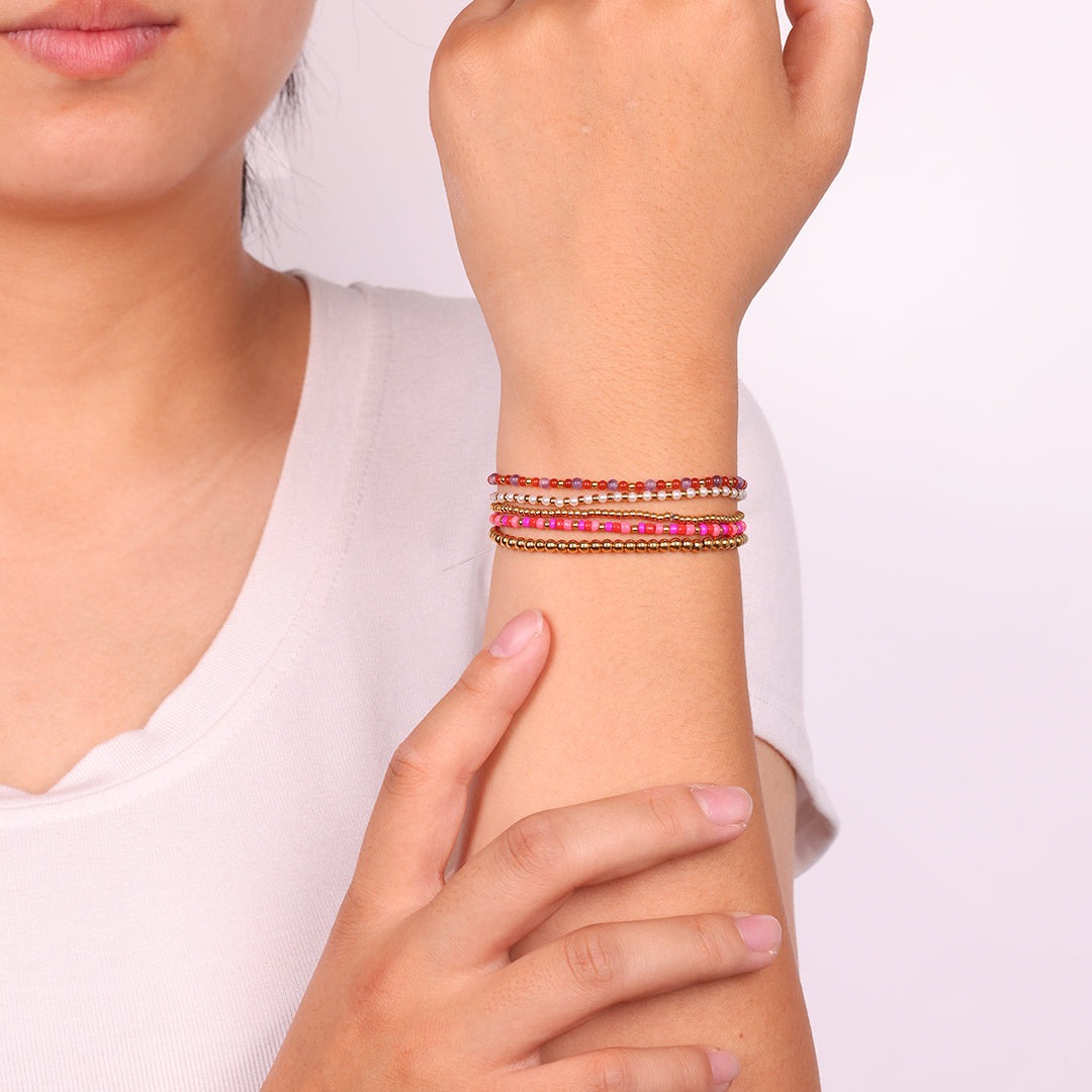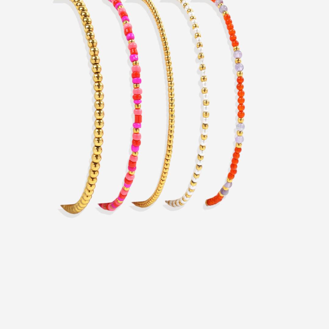 Materials: Real 18k Gold Over Waterproof Surgical Grade 316L Stainless Steel, Jewelry-Grade Elastic, Ceramic and Natural Stone Beads (Read More)