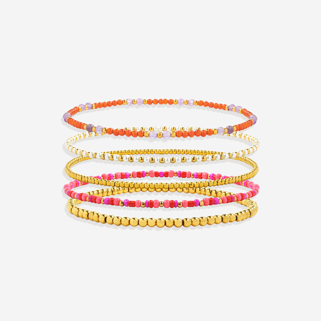 Channel your inner siren with this stunning bracelet stacking set. A mix of bold and delicate designs, it adds a touch of allure to any outfit. Perfect for layering or wearing solo. Effortlessly captivating.