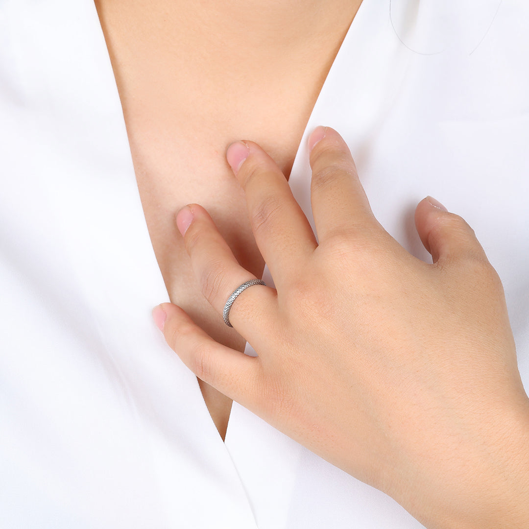 Edgy meets elegant with this snakeskin-inspired stacking ring. Its textured design adds bold flair to your stack or shines solo. A statement piece that’s equal parts fierce and fashionable.