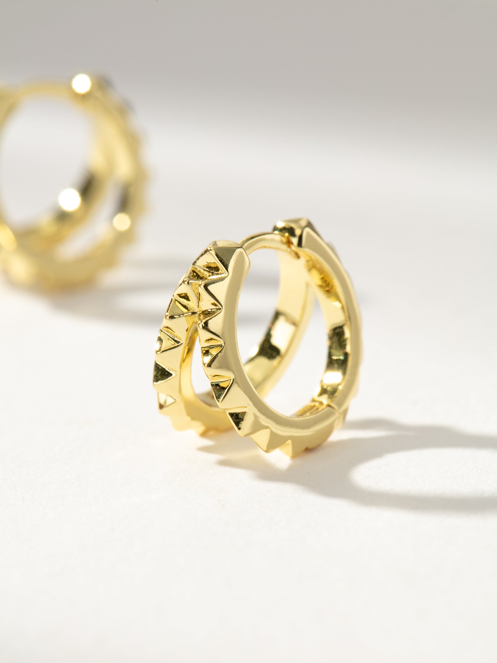 Our Textured Huggies will bring some edge to your ear stack with their double hoop studded details. For an irresistible ear stack, pair these gold huggie earrings with your favorite hoops and huggies.