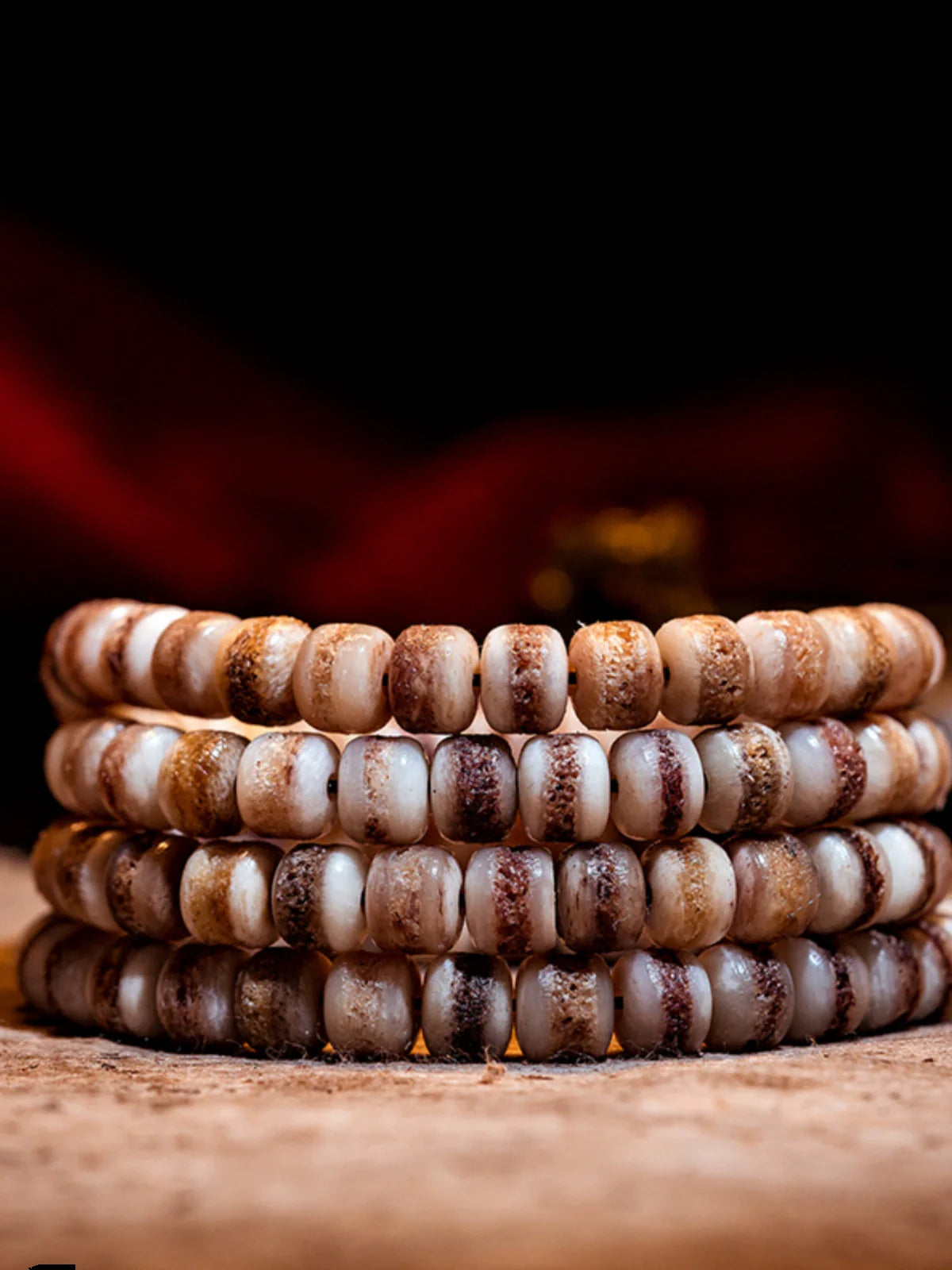 Tibetan Gabala Yak Bone 108 Beads Mala Bracelet for Meditation 10*8mm