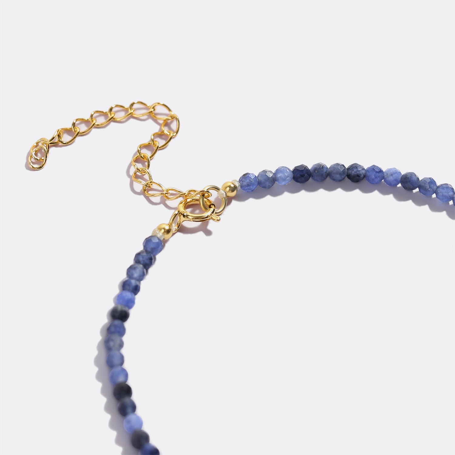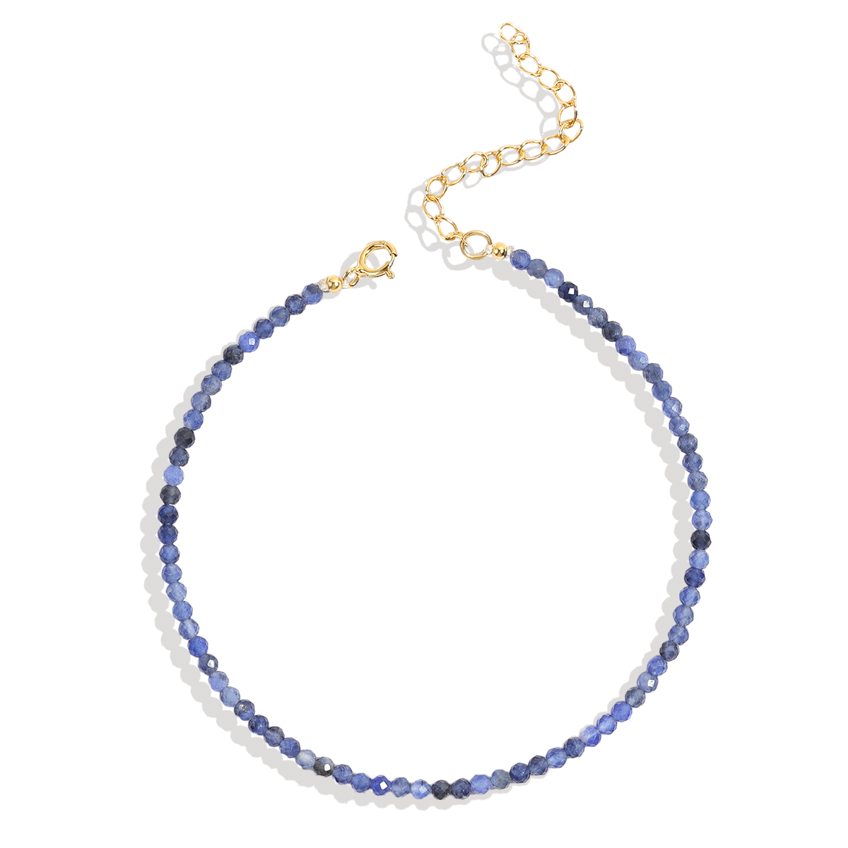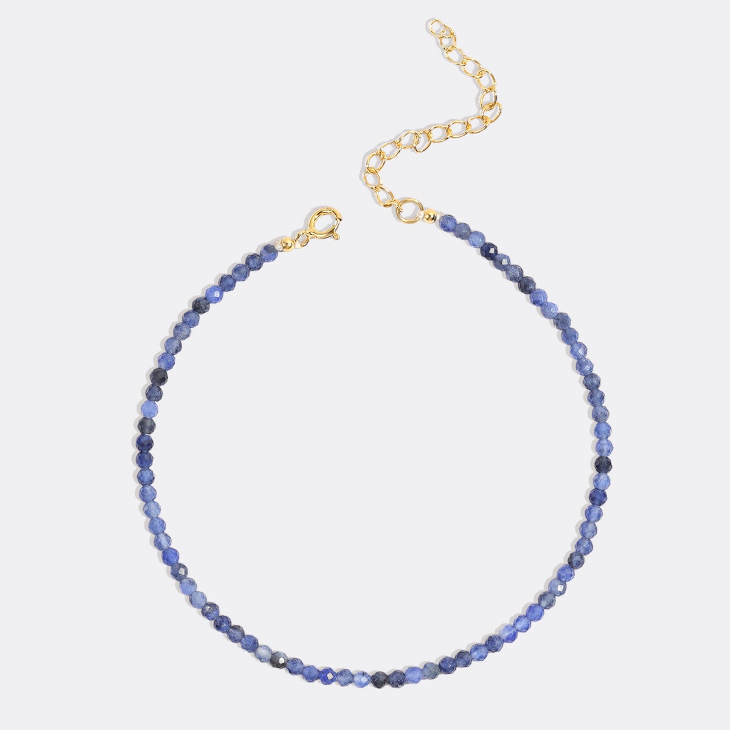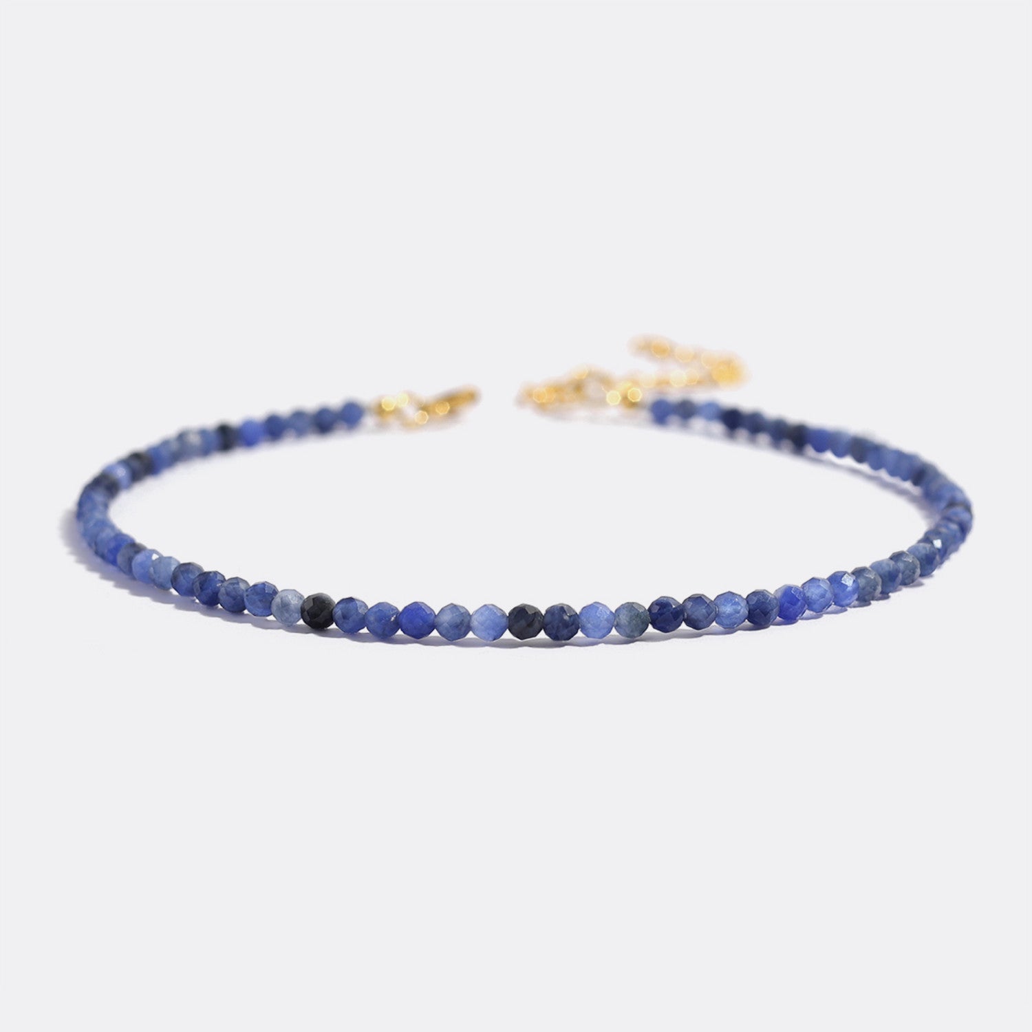 This dainty bracelet is strung with rich, deep blue lapis lazuli beads, offering a touch of elegance and a pop of color. Perfect for stacking or wearing solo, it adds a subtle, sophisticated charm to any outfit, and the natural properties of lapis lazuli are thought to promote wisdom and truth.